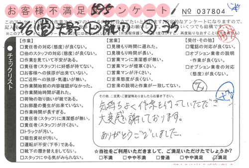 引越一番でお引越しをしていただいたお客様のうち、コメントいただいたアンケートを全て掲載しています。