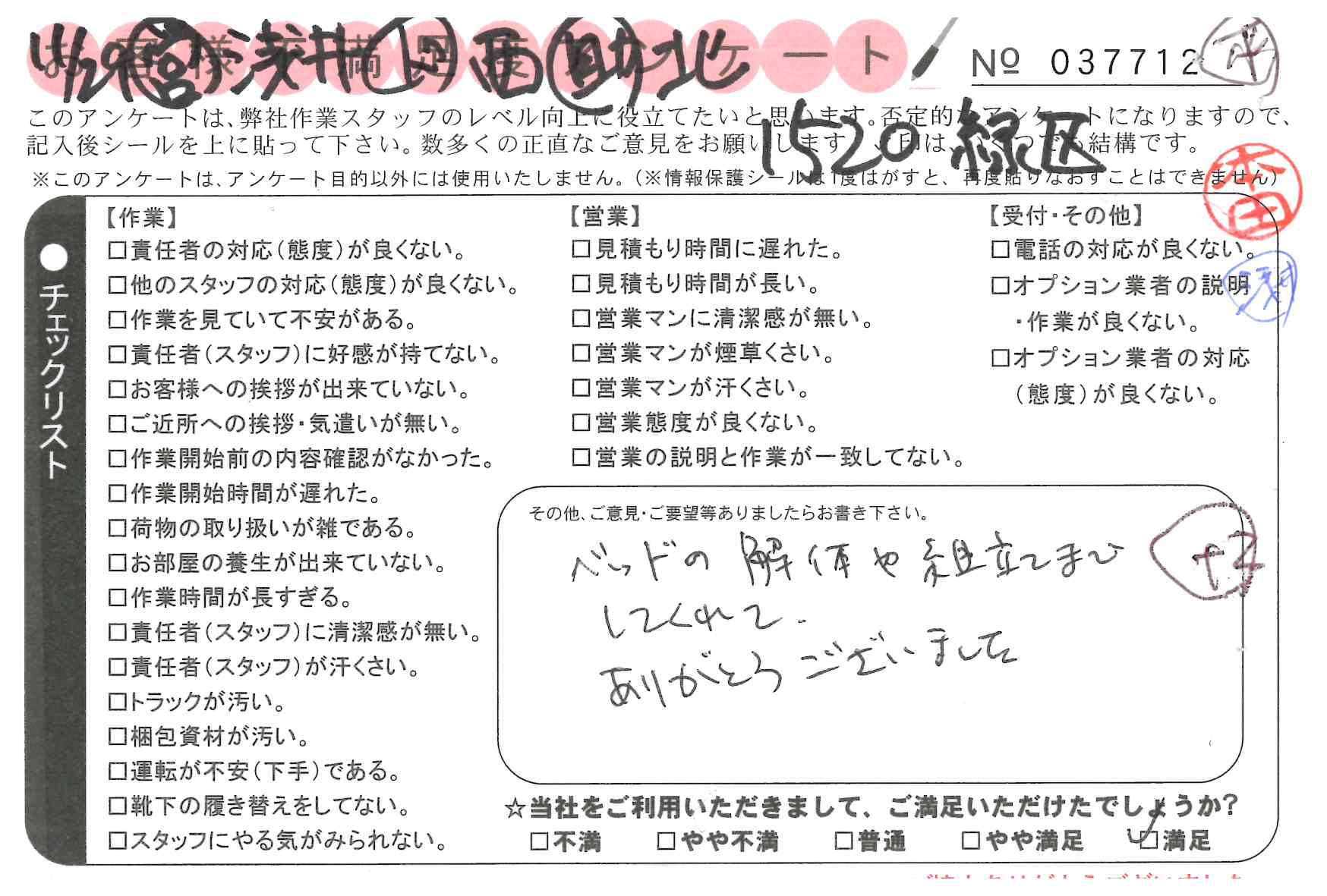 不満足度アンケートを行っている引越一番では、不評なアンケートも、好評なアンケートも全て掲載しています。
