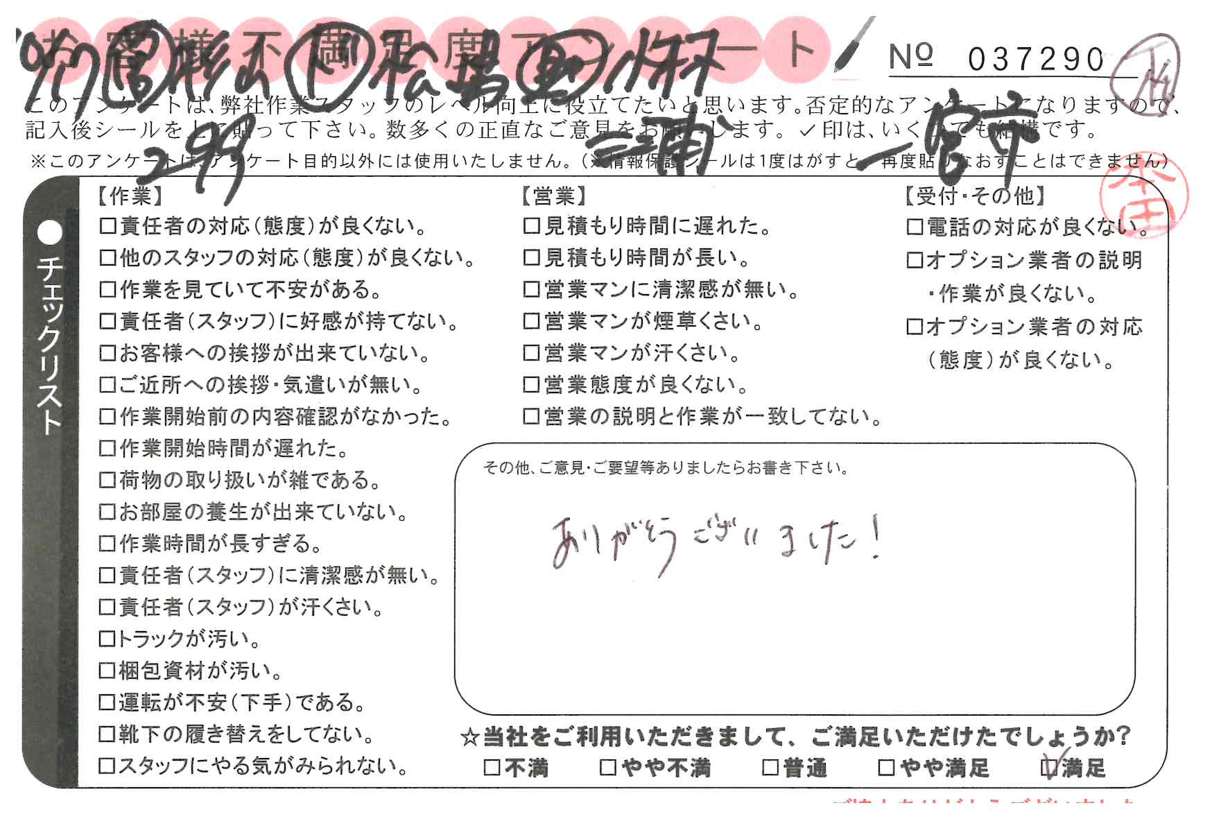 引越一番でお引越しをしていただいたお客様のうち、コメントいただいたアンケートを全て掲載しています。