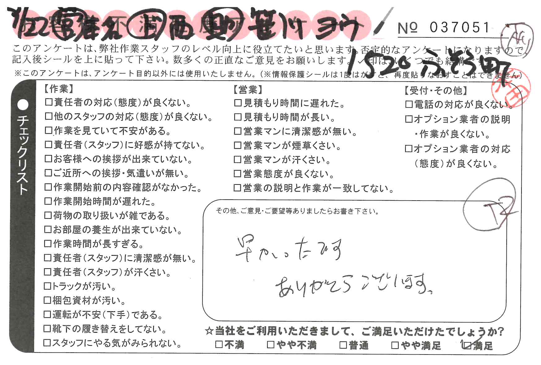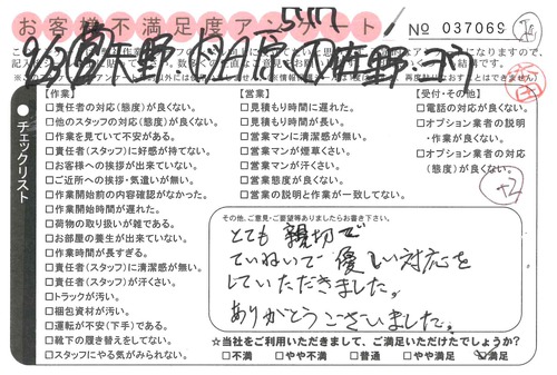 引越一番でお引越しをしていただいたお客様のうち、コメントいただいたアンケートを全て掲載しています。