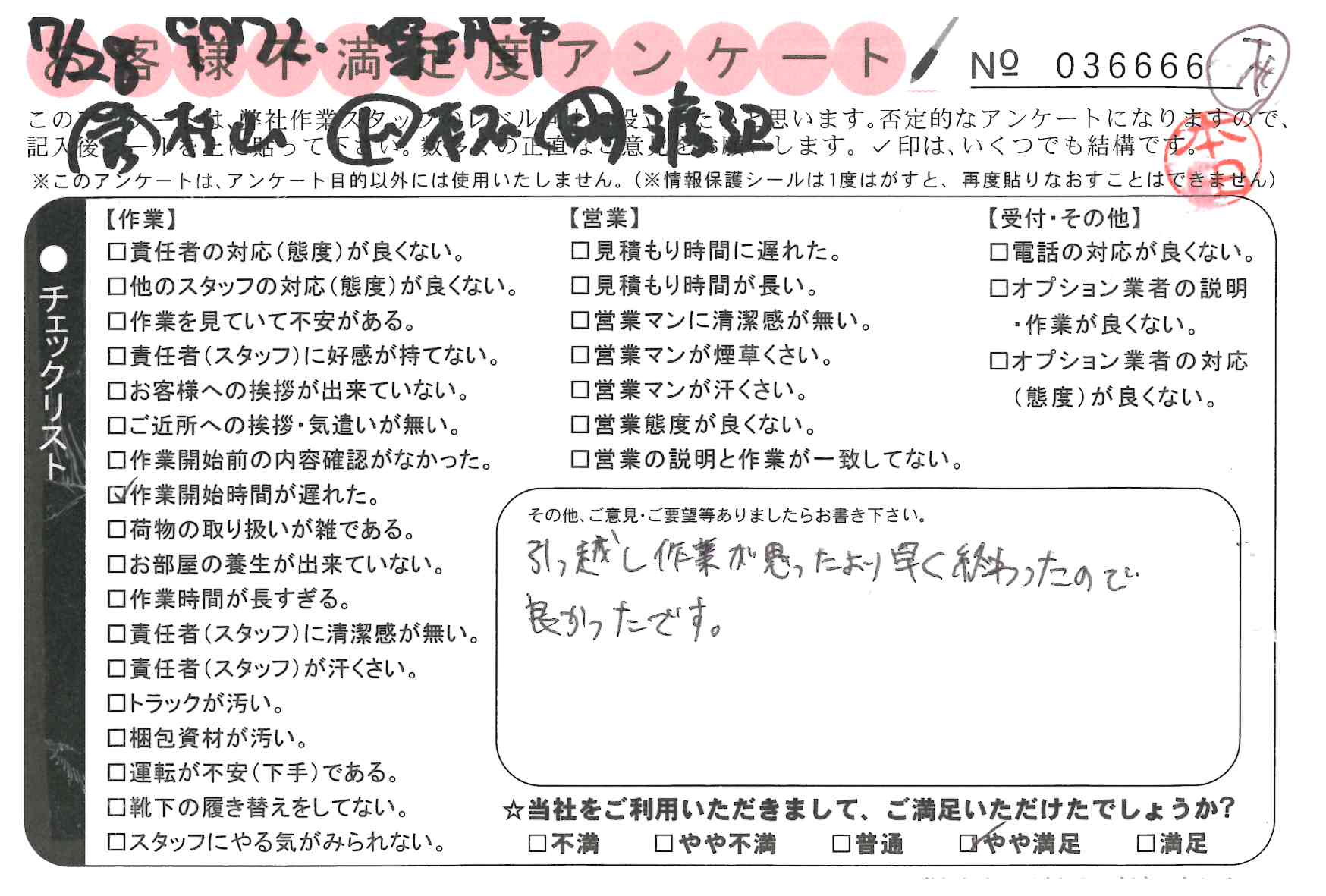 引越一番でお引越しをしていただいたお客様のうち、コメントいただいたアンケートを全て掲載しています。