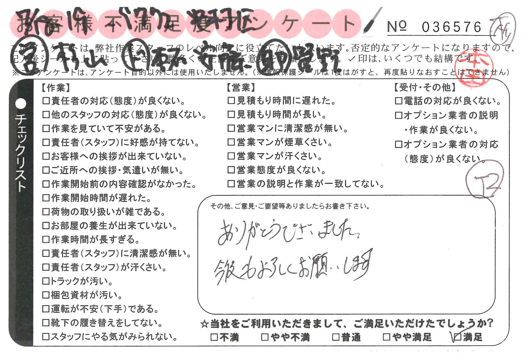 引越一番でお引越しをしていただいたお客様のうち、コメントいただいたアンケートを全て掲載しています。