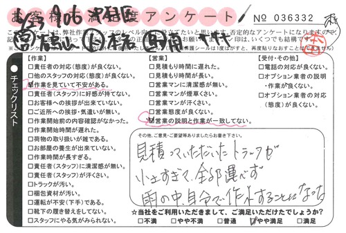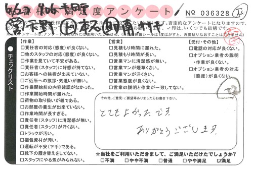 引越一番でお引越しをしていただいたお客様のうち、コメントいただいたアンケートを全て掲載しています。