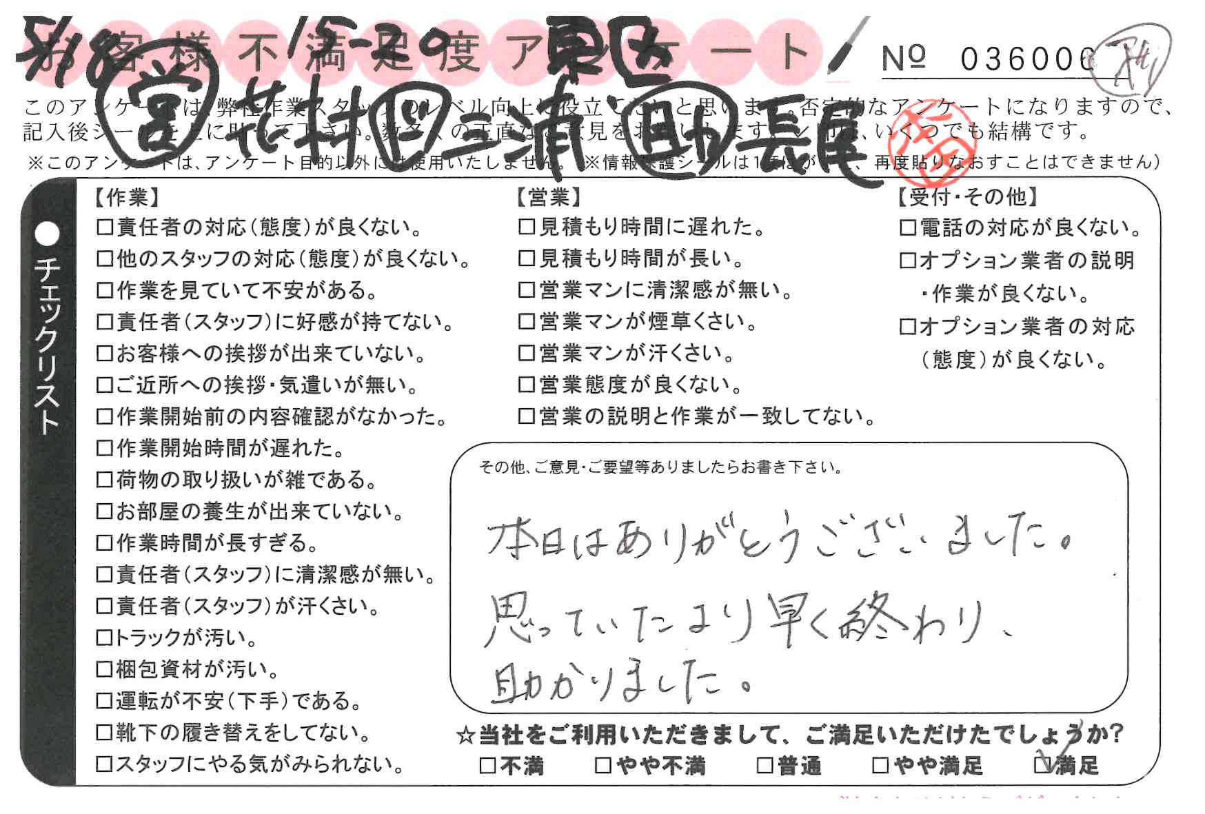 不満足度アンケートを行っている引越一番では、不評なアンケートも、好評なアンケートも全て掲載しています。