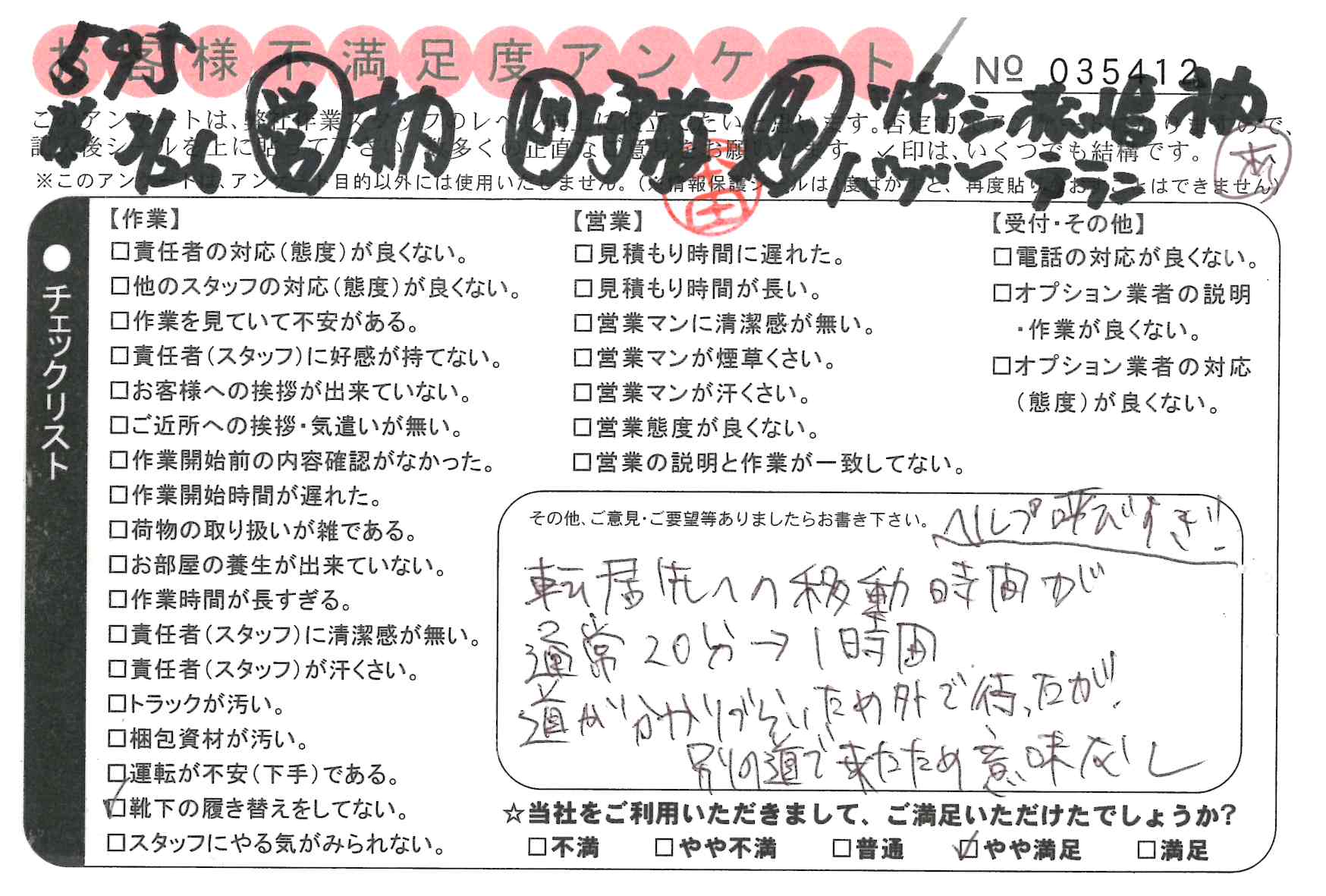 3/25 引越 営業:鶴山 ドライバー:木内 スタッフ:安藤・鈴木* すべて完璧でした。