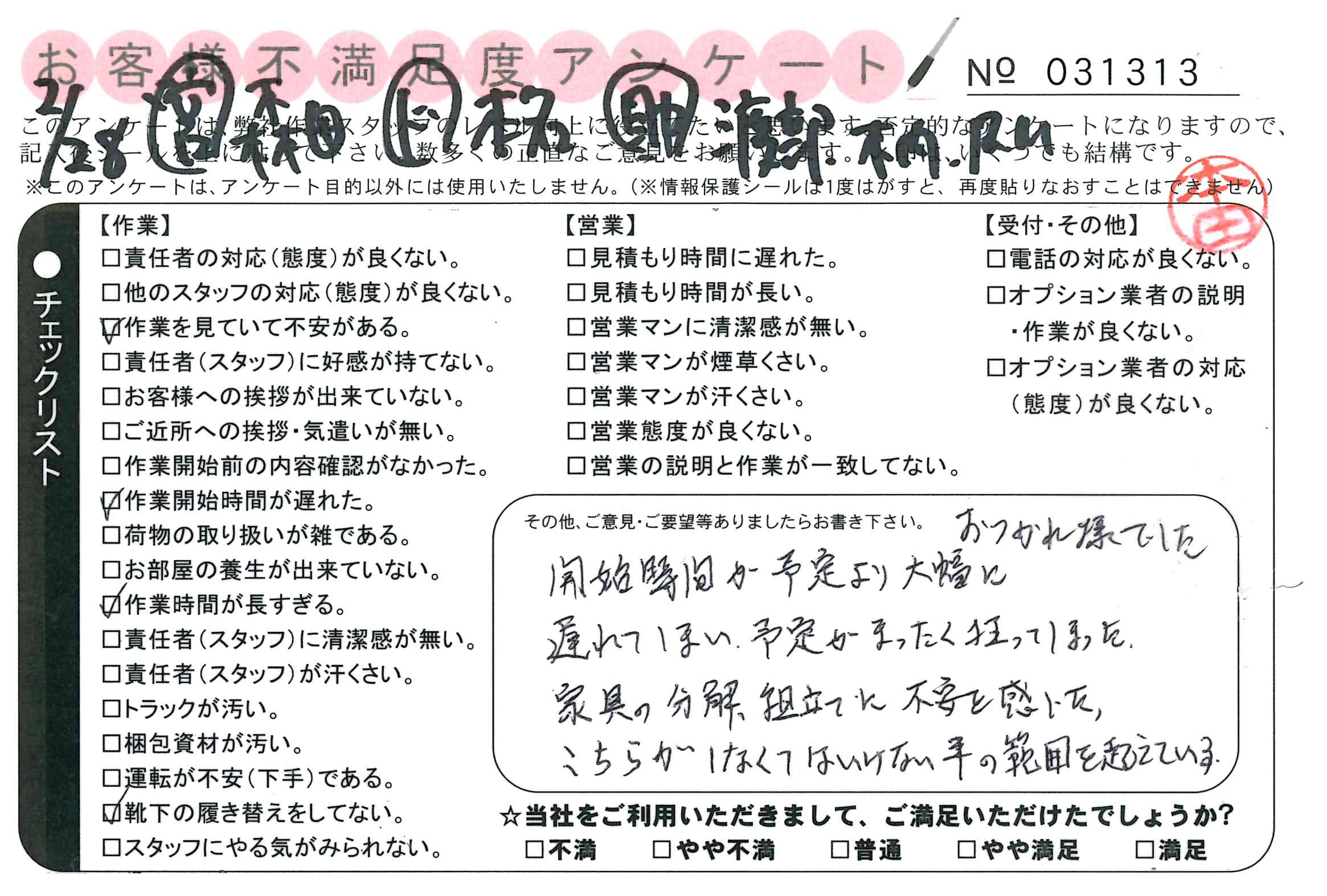 3/1・2 引越 営業:森田 ドライバー:米倉・本名・結城* 営業マンが熱心でなかった。(電話をくれると言って