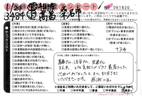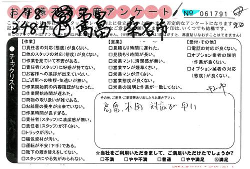 引越一番でお引越しをしていただいたお客様のうち、コメントいただいたアンケートを全て掲載しています。