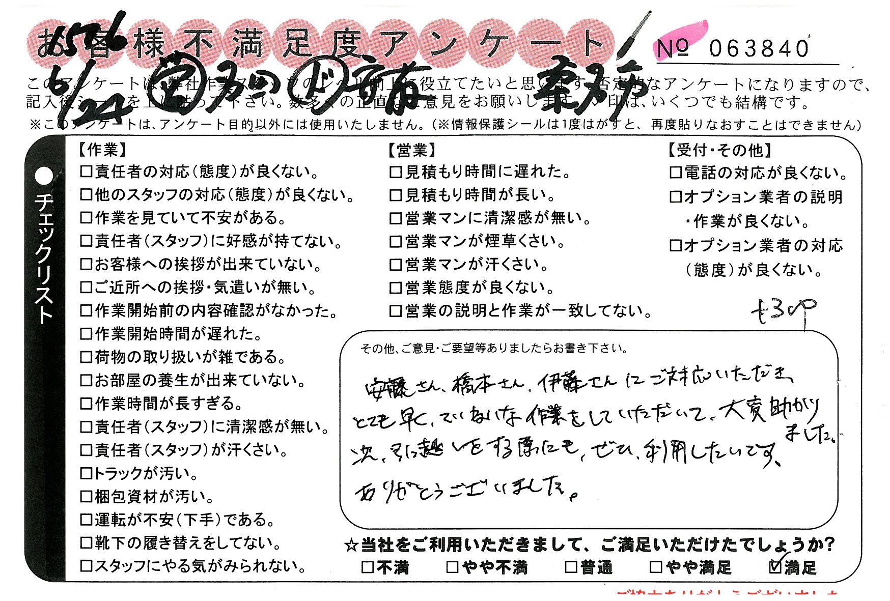 引越一番でお引越しをしていただいたお客様のうち、コメントいただいたアンケートを全て掲載しています。