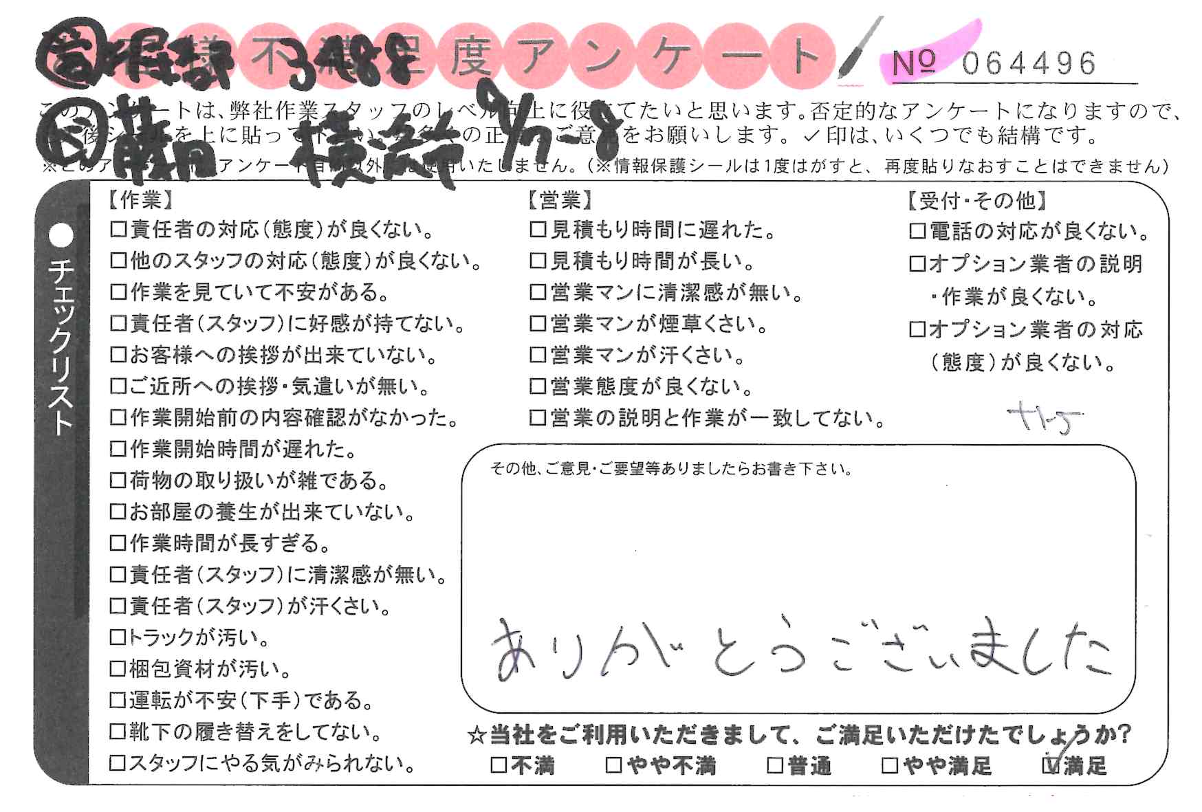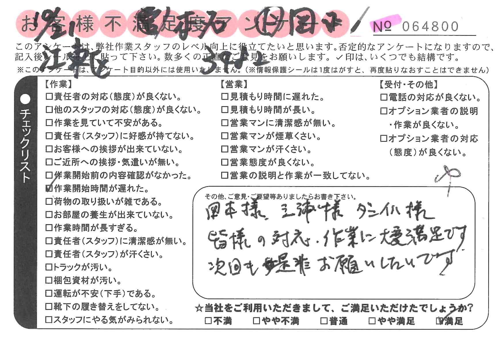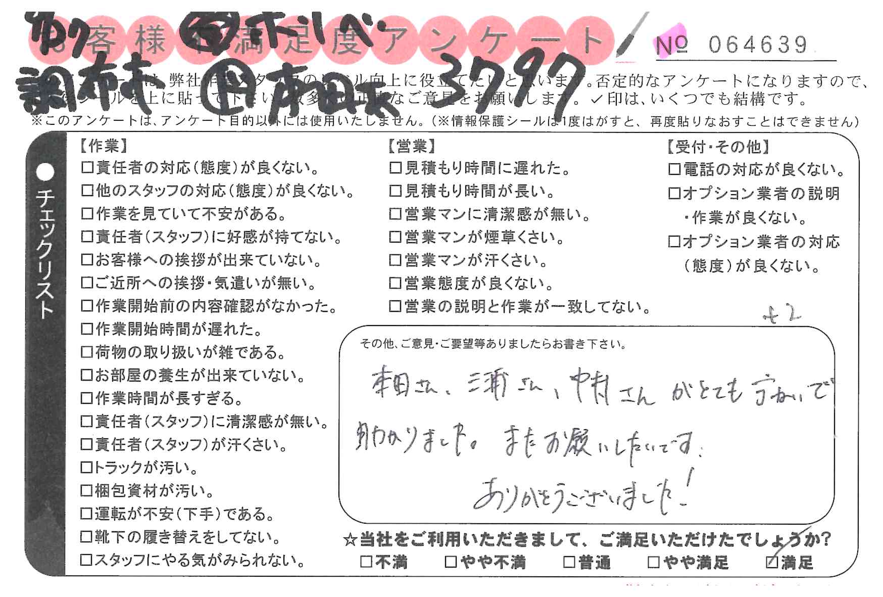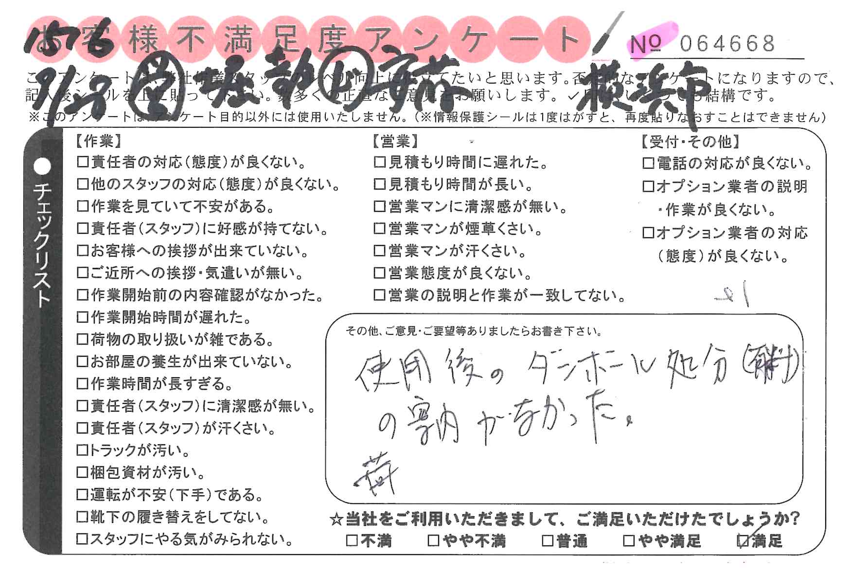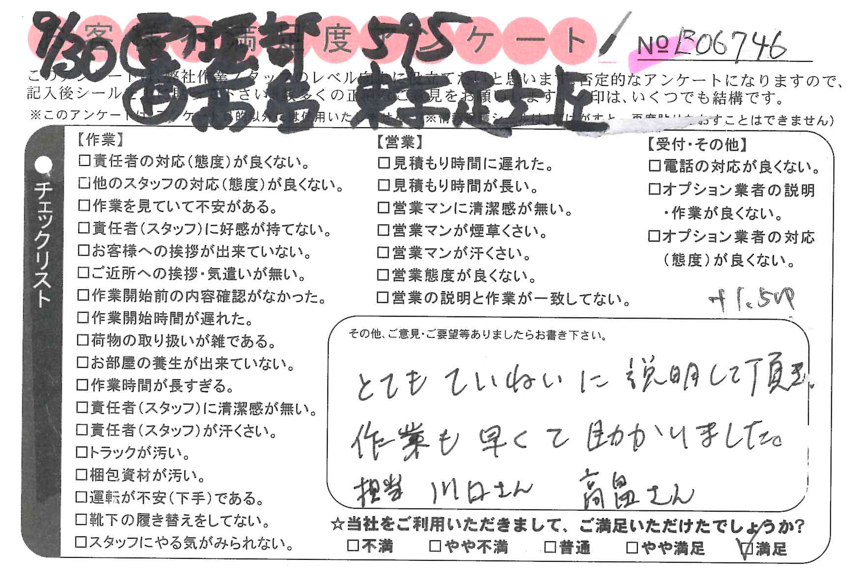 引越一番でお引越しをしていただいたお客様のうち、コメントいただいたアンケートを全て掲載しています。