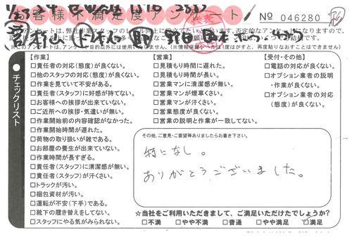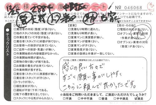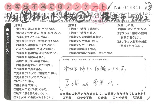 引越一番でお引越しをしていただいたお客様のうち、コメントいただいたアンケートを全て掲載しています。