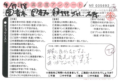 4/24 引越 営業:堀部 ドライバー:安藤 スタッフ:南・高* 大満足です。