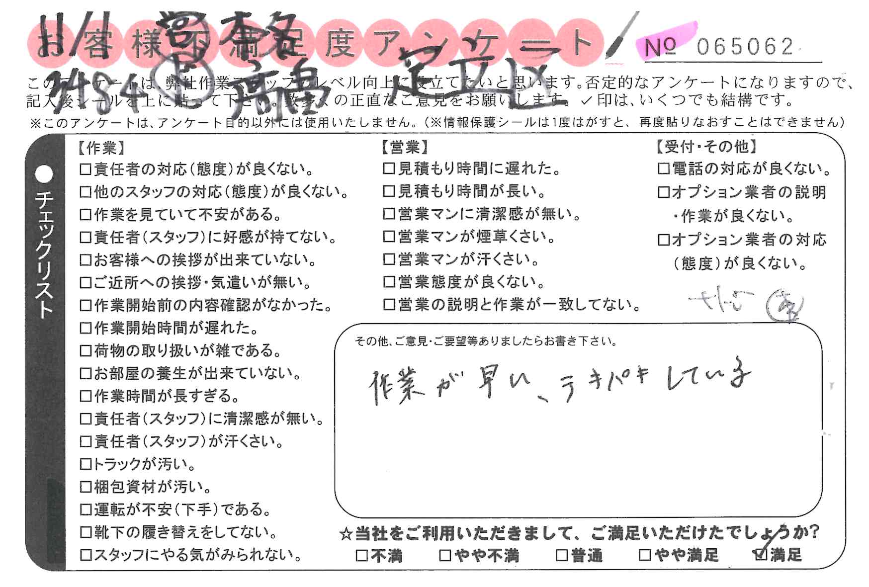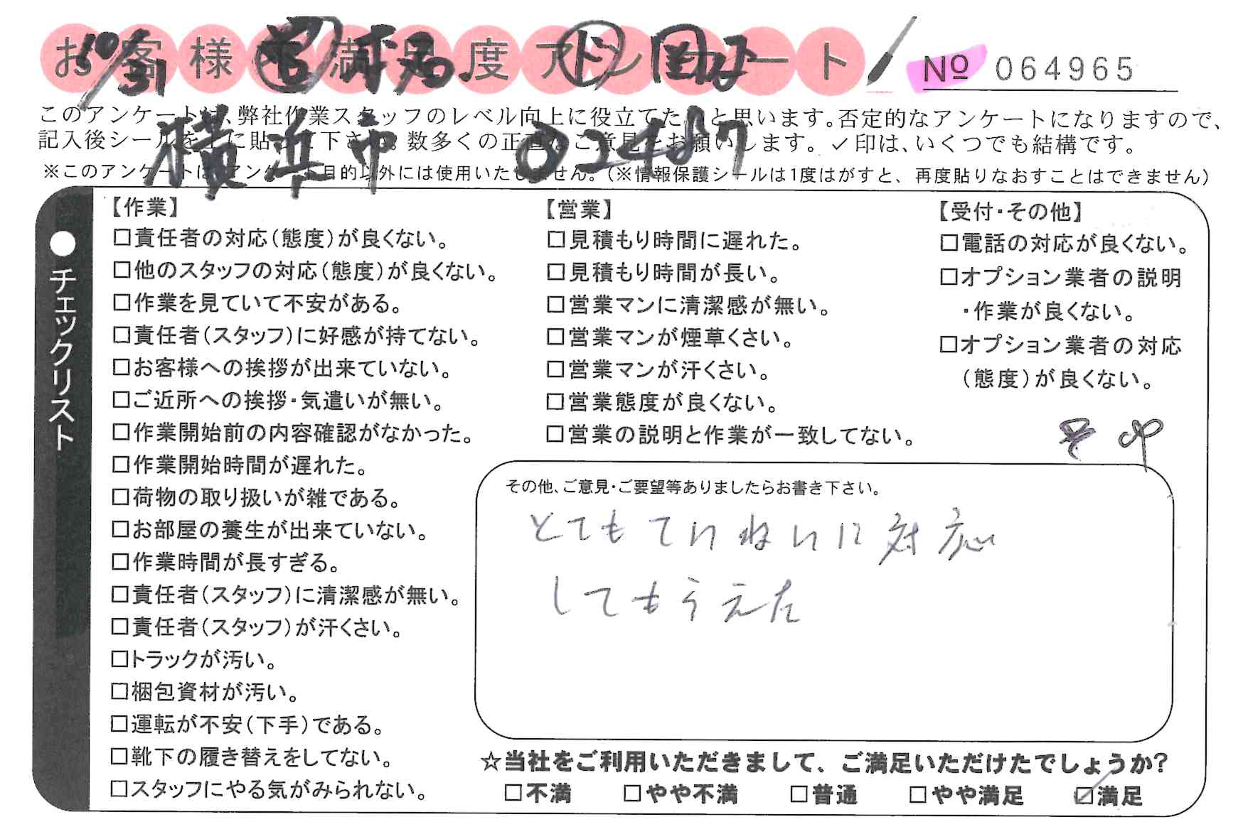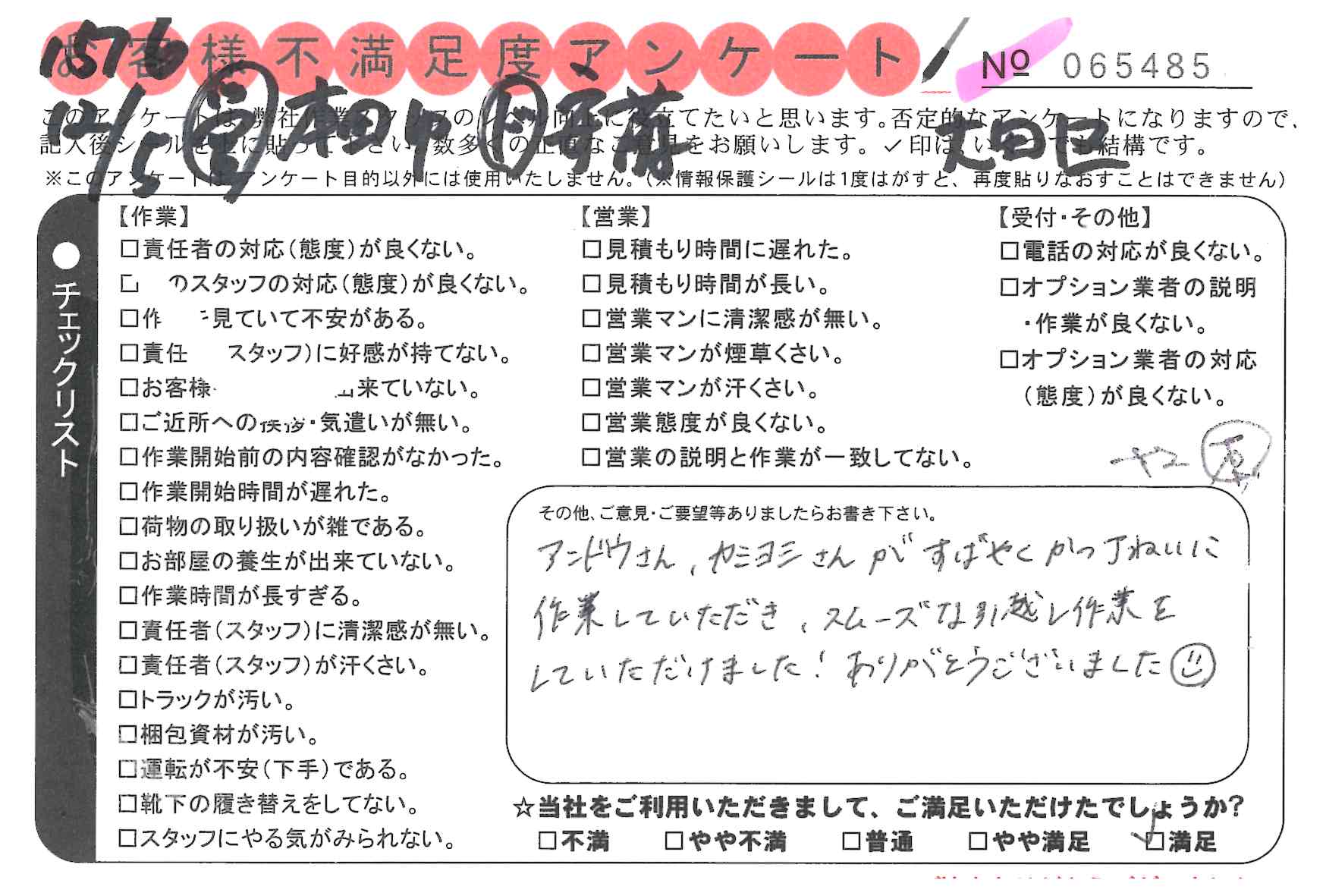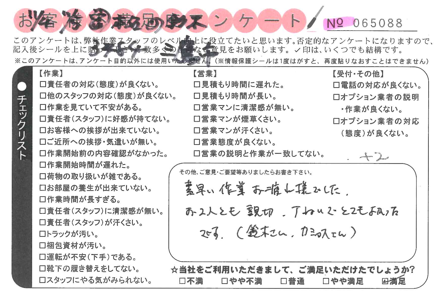 引越一番でお引越しをしていただいたお客様のうち、コメントいただいたアンケートを全て掲載しています。