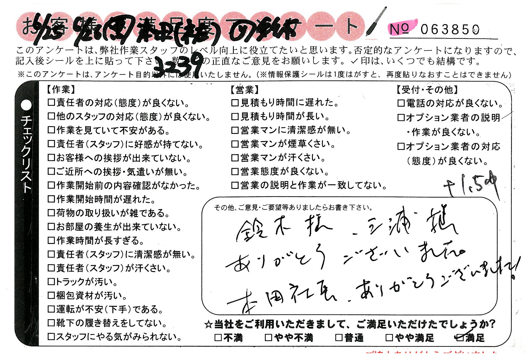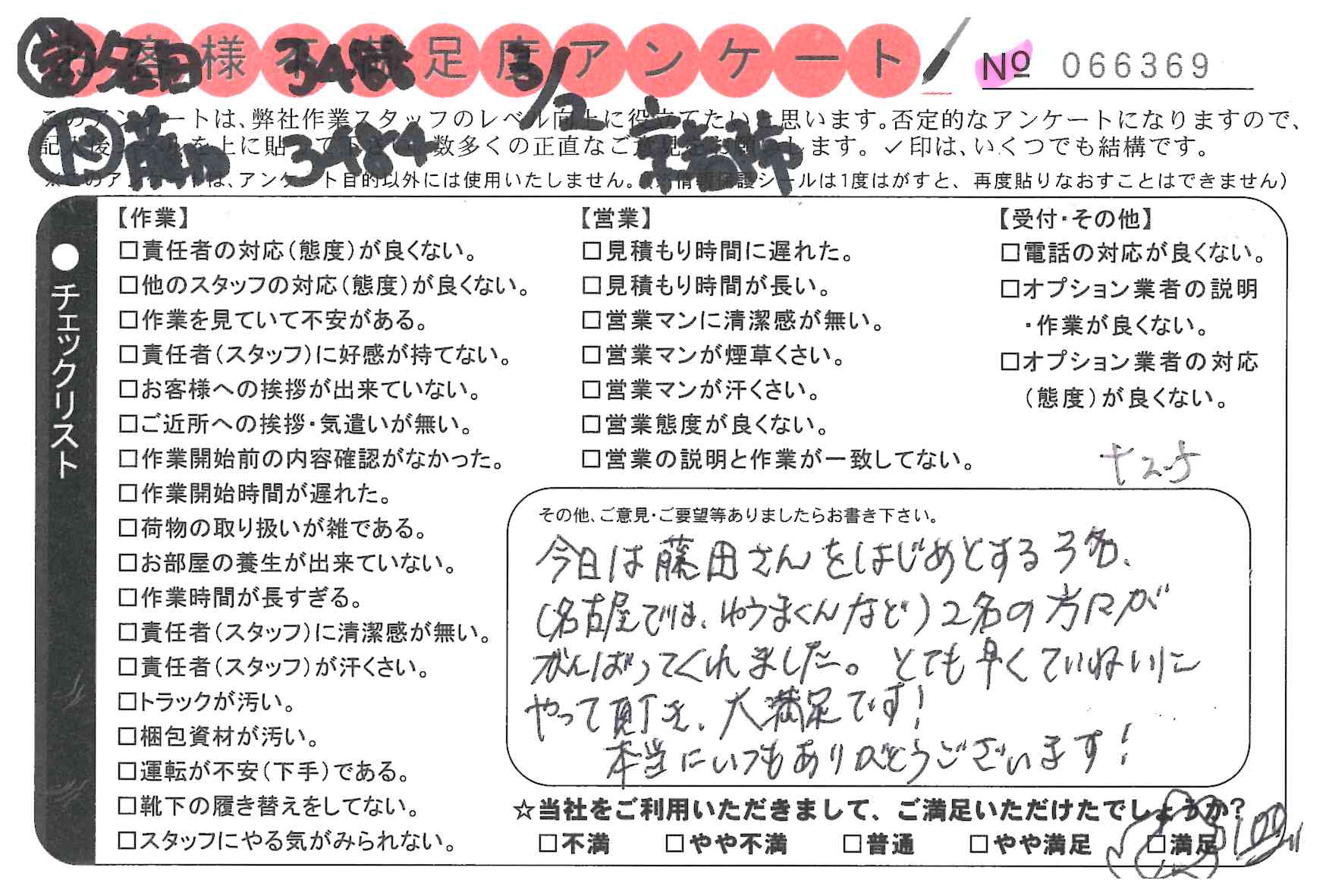 引越一番でお引越しをしていただいたお客様のうち、コメントいただいたアンケートを全て掲載しています。
