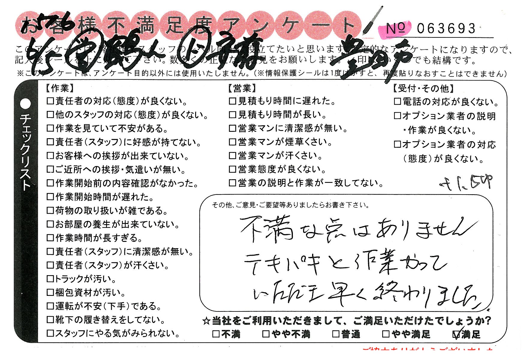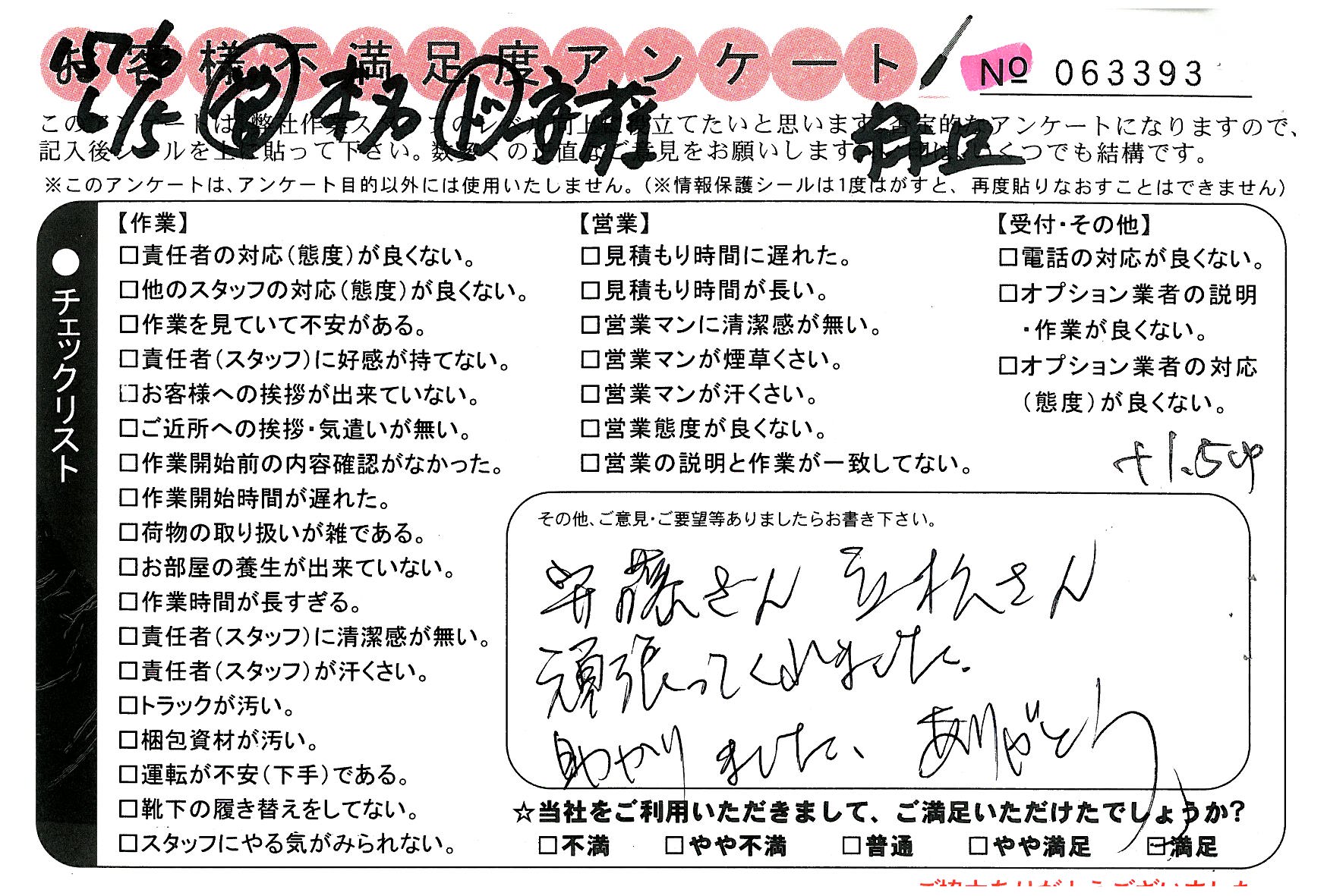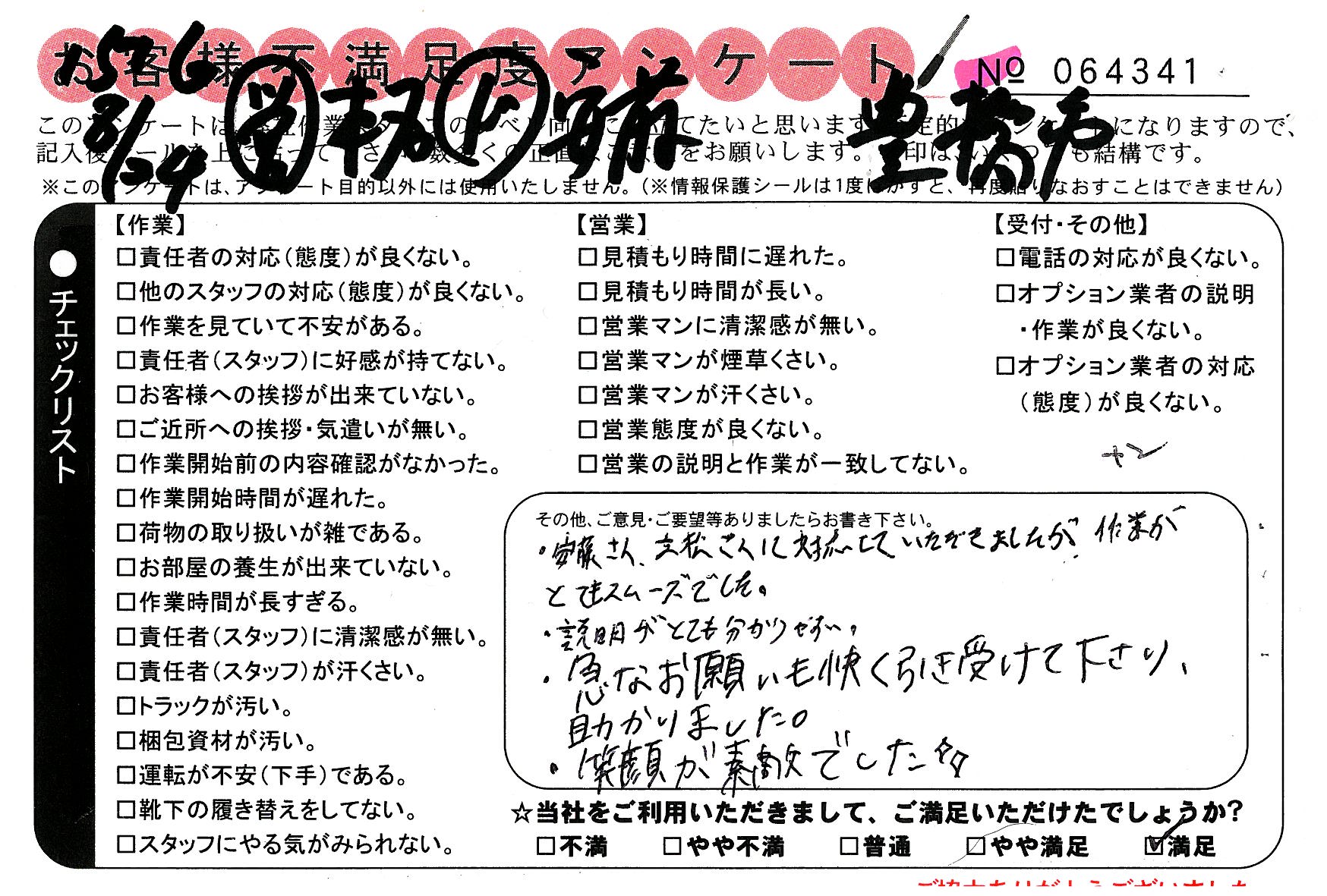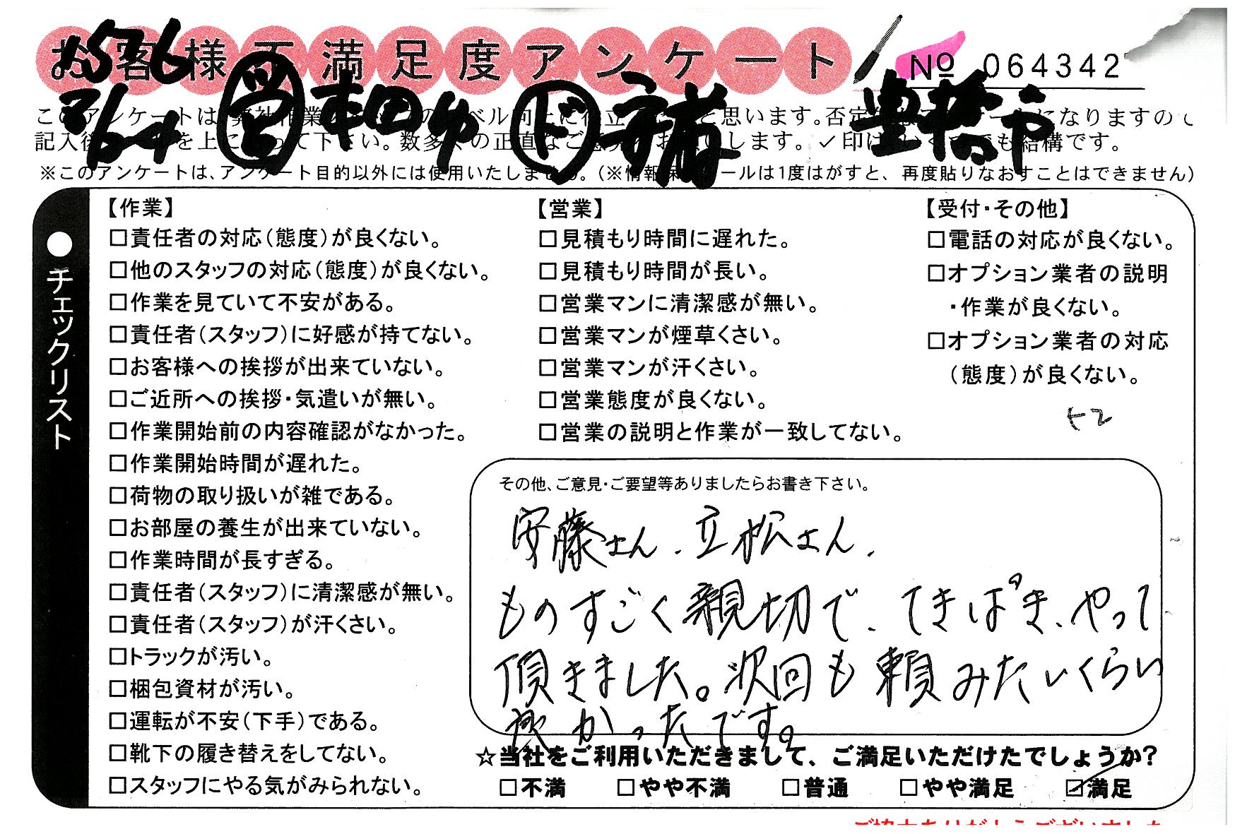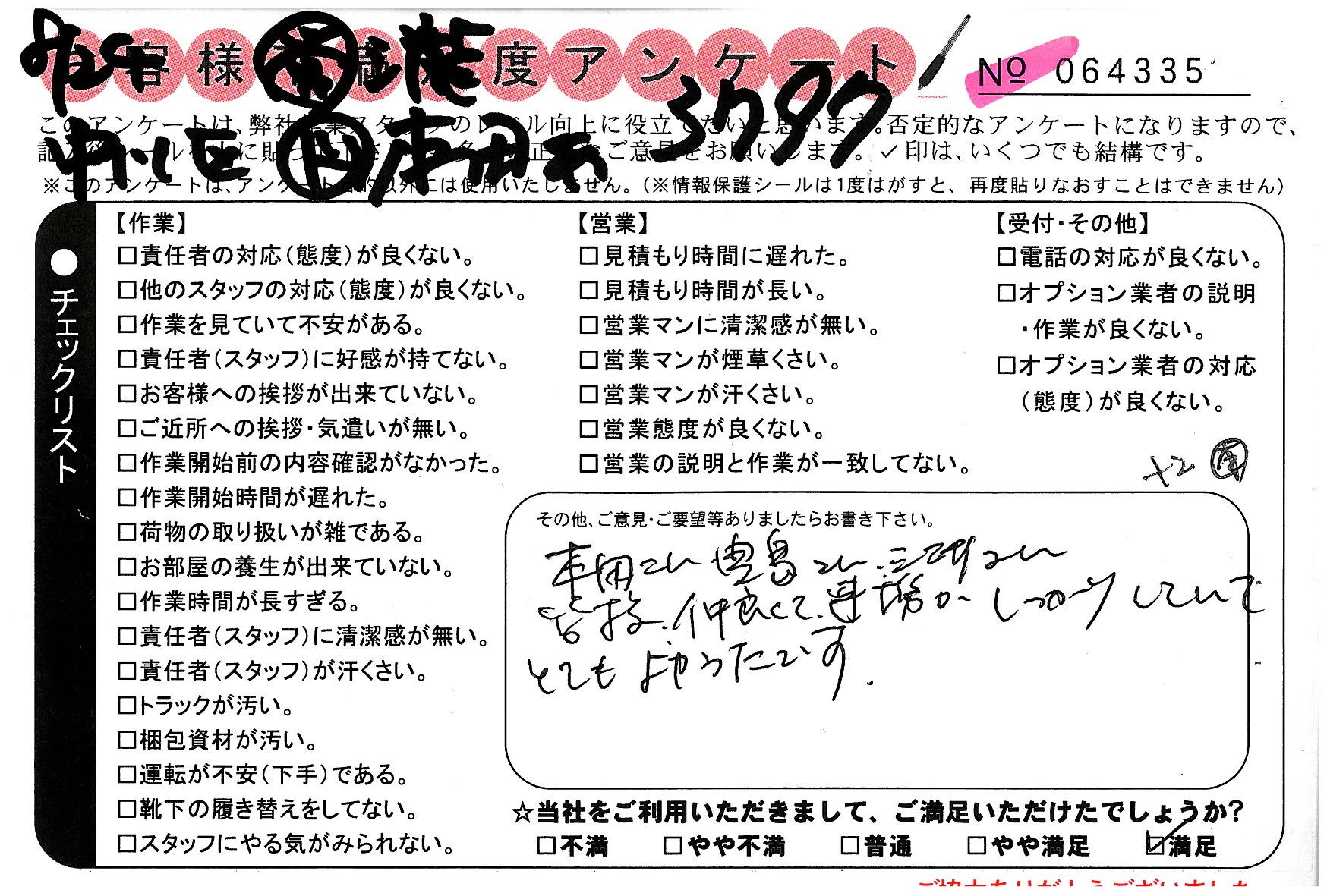 引越一番でお引越しをしていただいたお客様のうち、コメントいただいたアンケートを全て掲載しています。