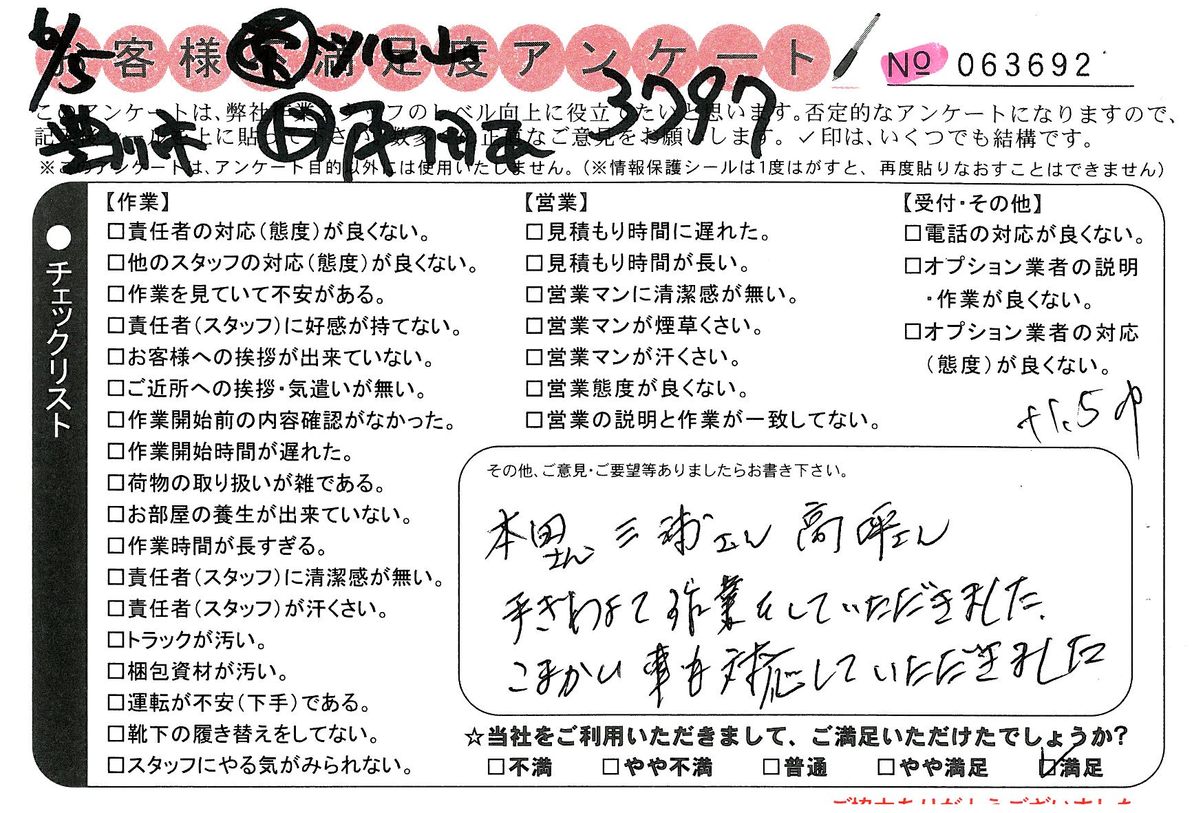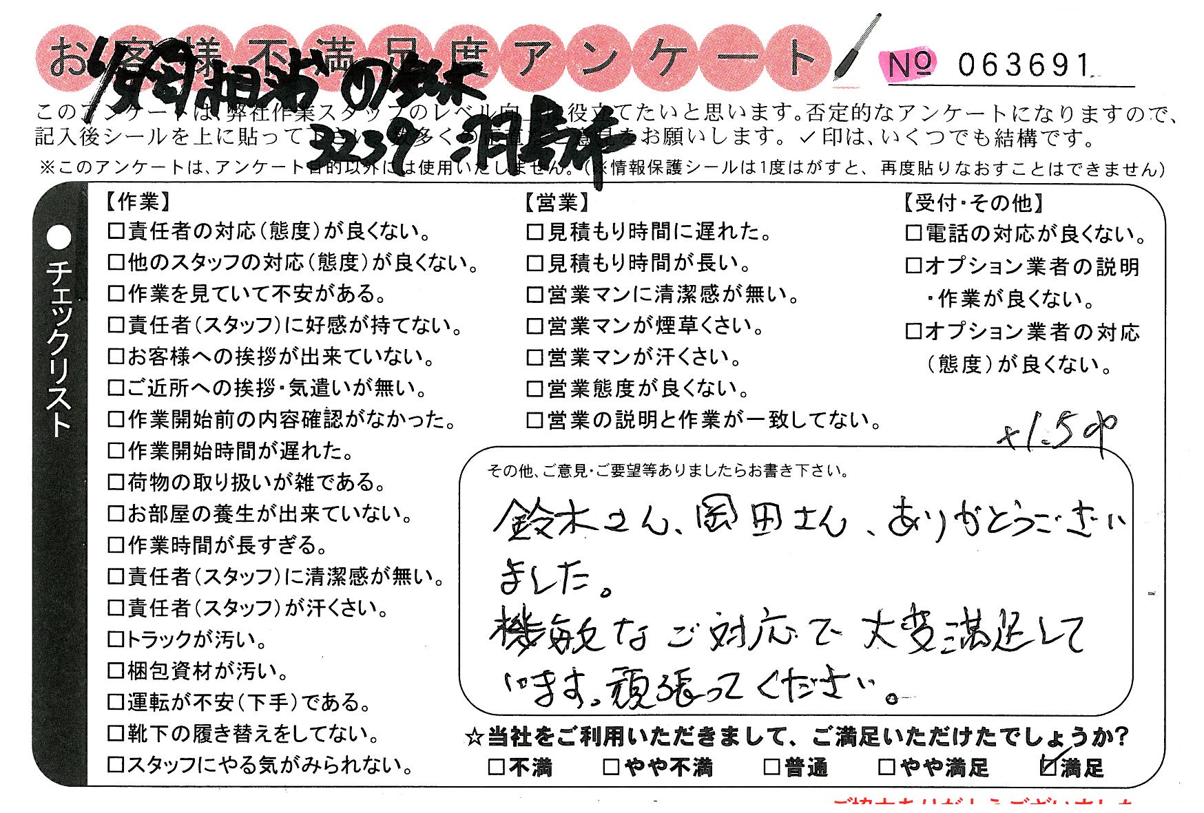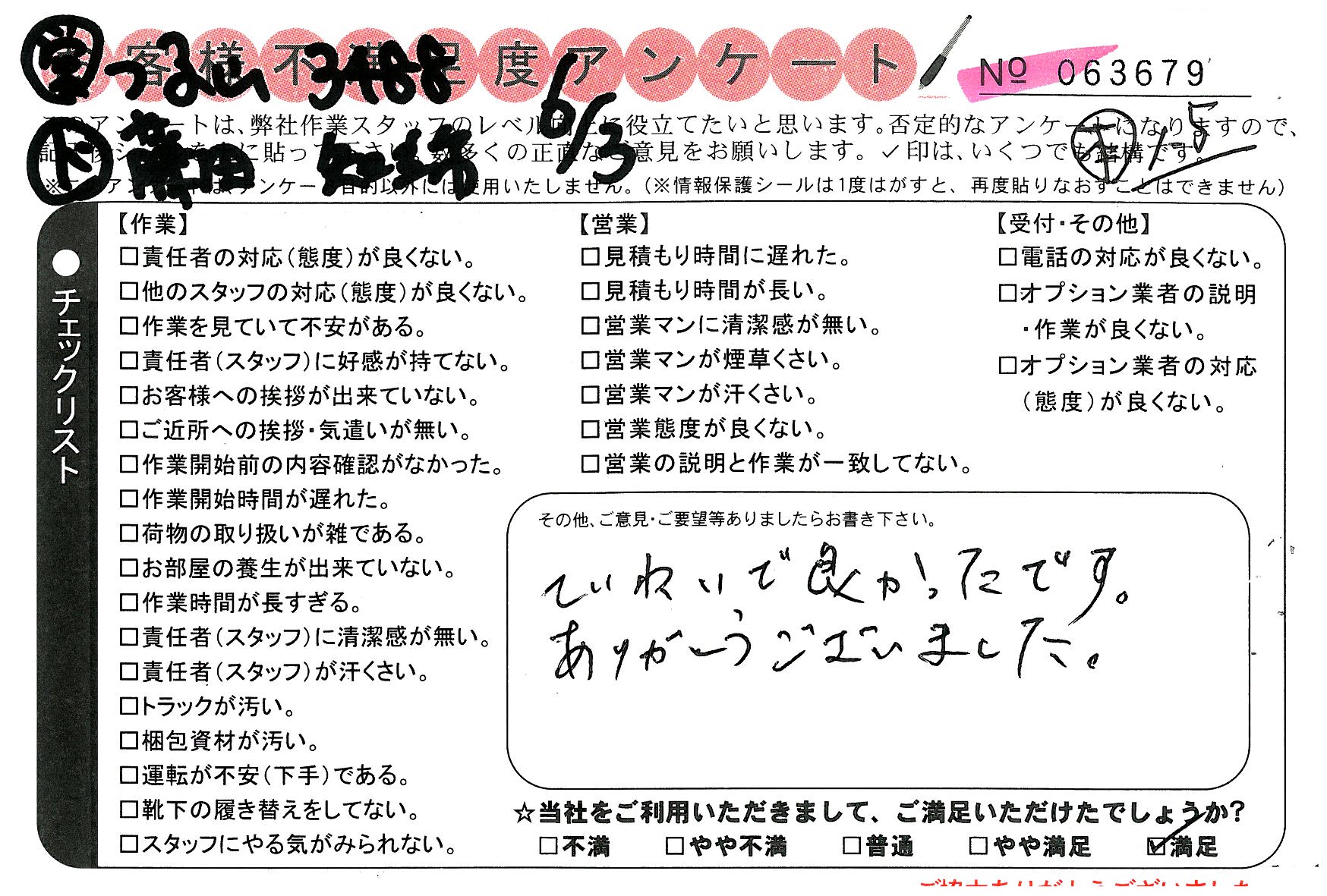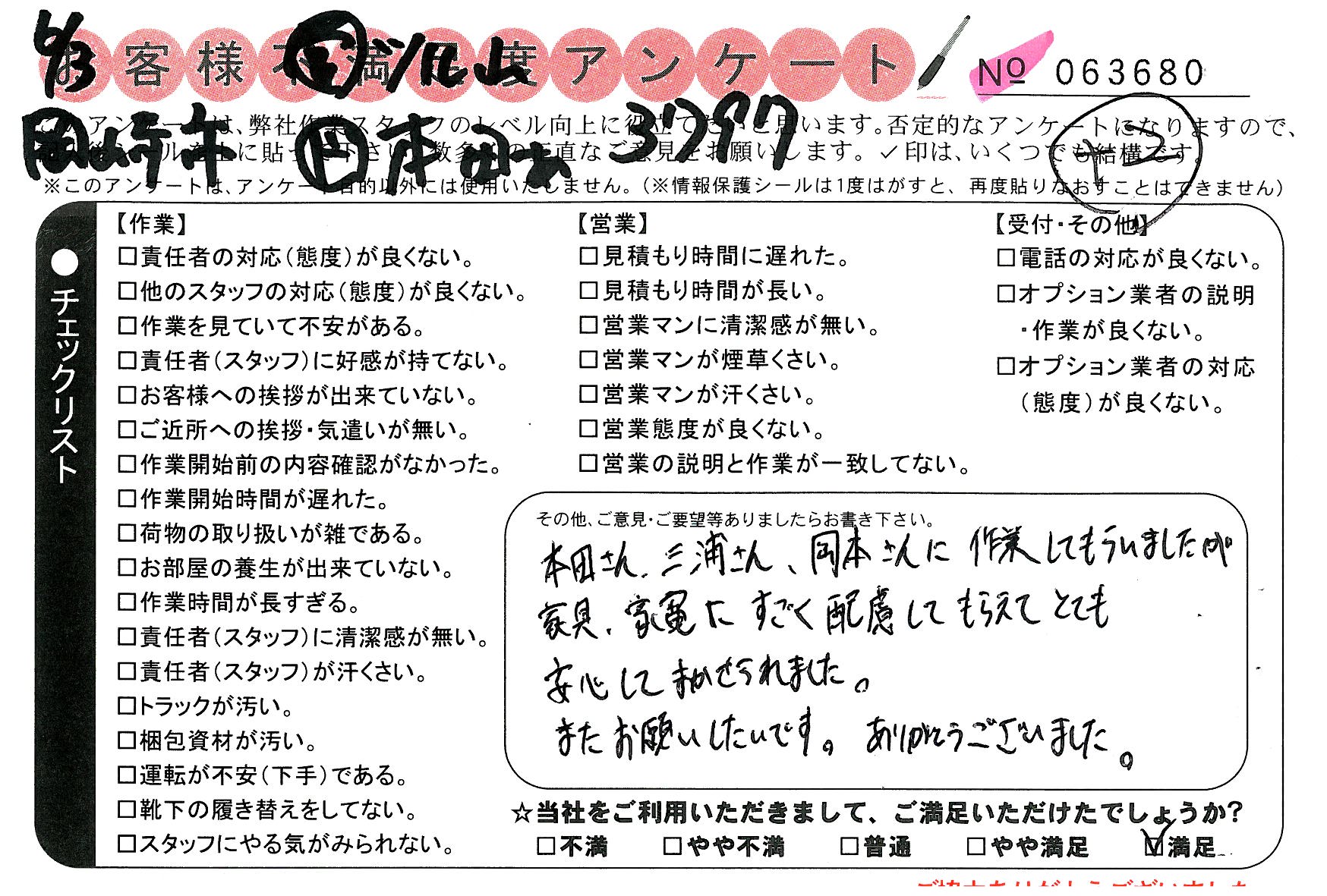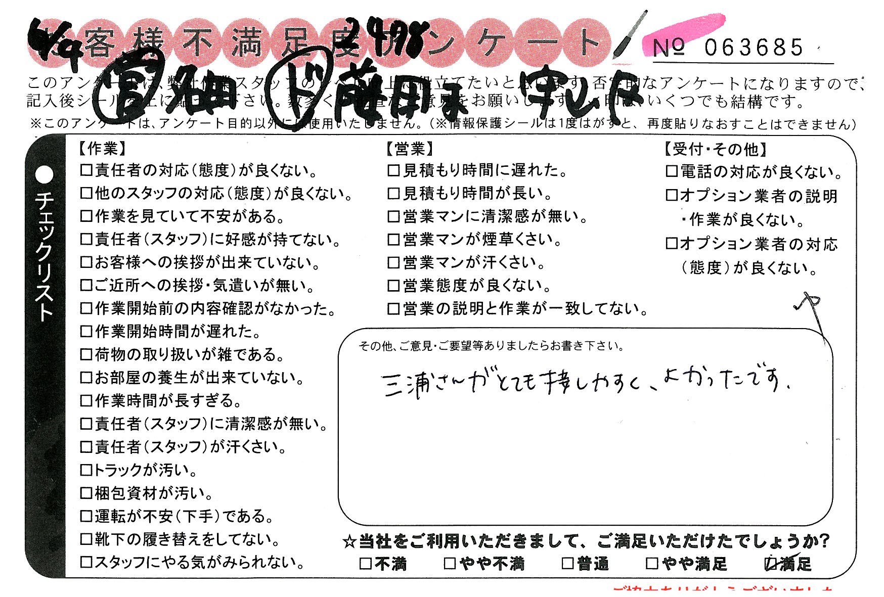 引越一番でお引越しをしていただいたお客様のうち、コメントいただいたアンケートを全て掲載しています。