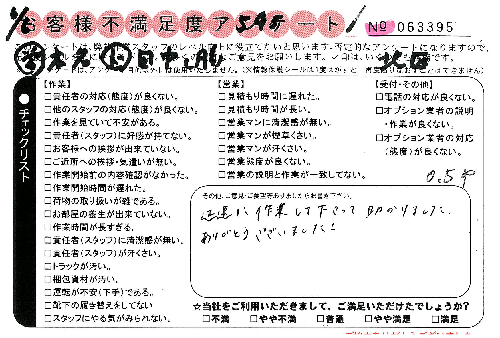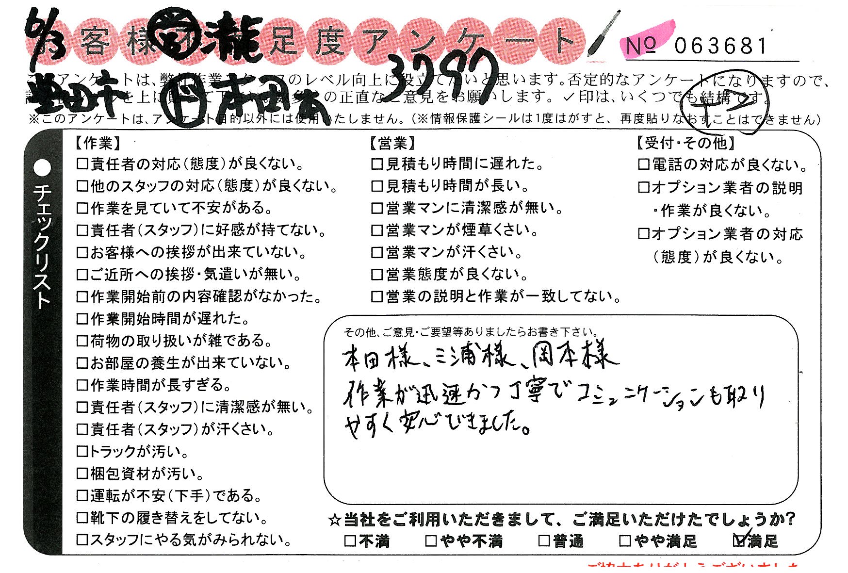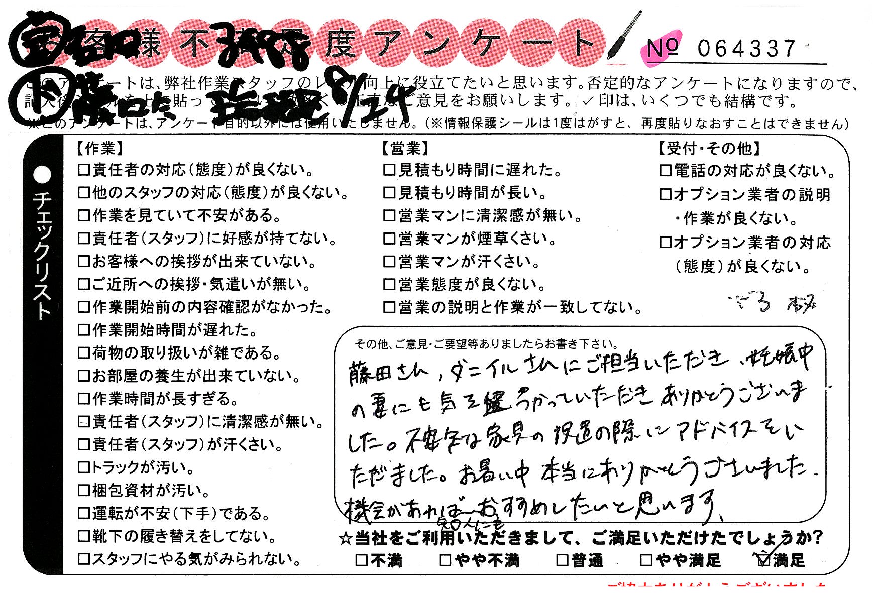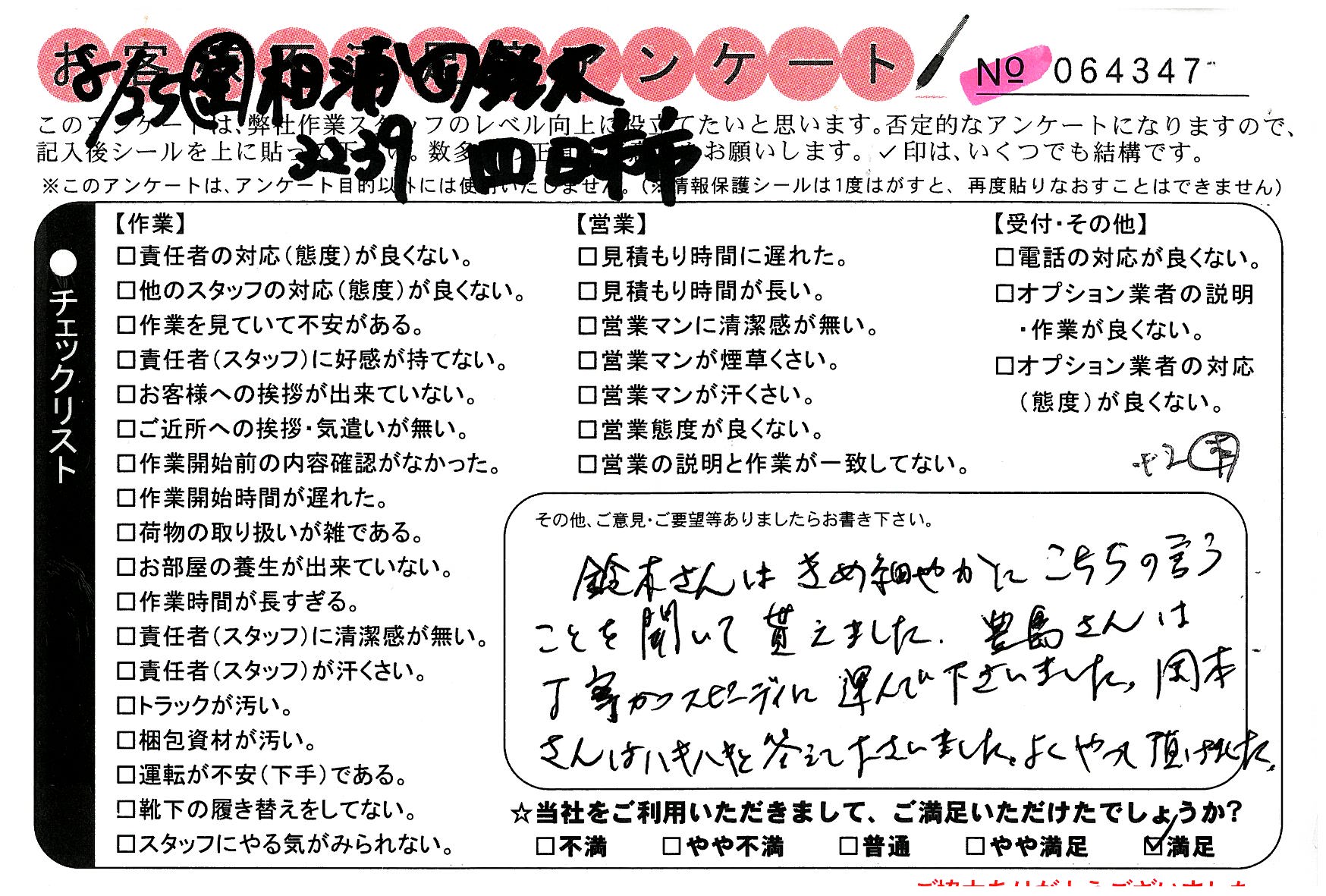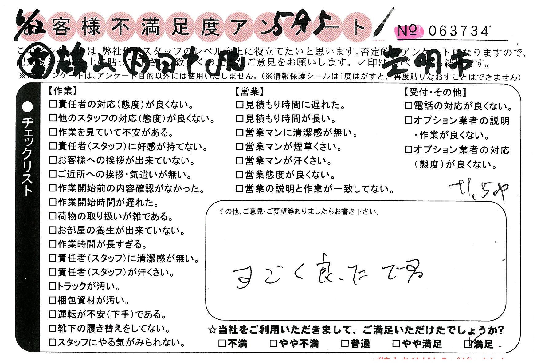 引越一番でお引越しをしていただいたお客様のうち、コメントいただいたアンケートを全て掲載しています。