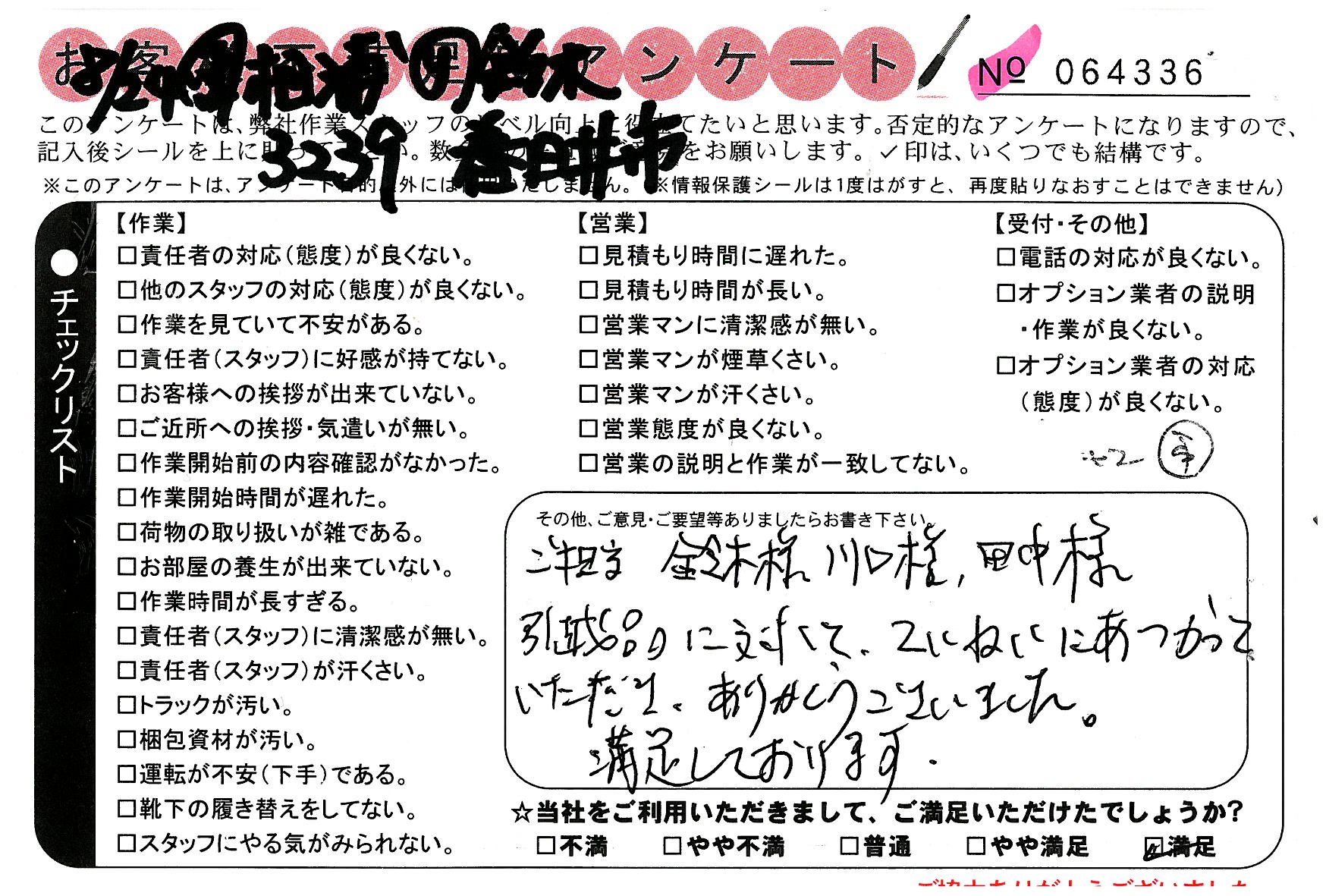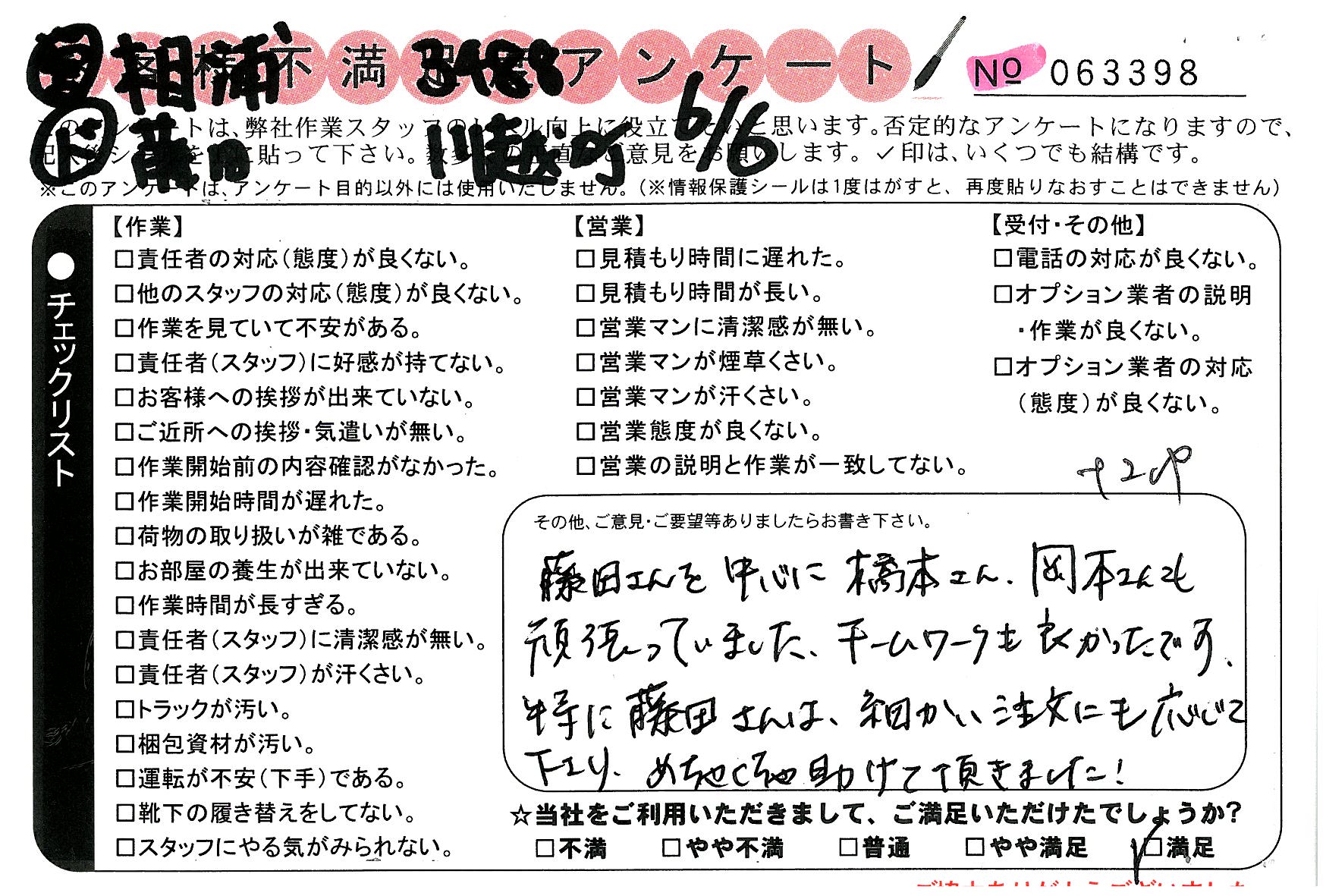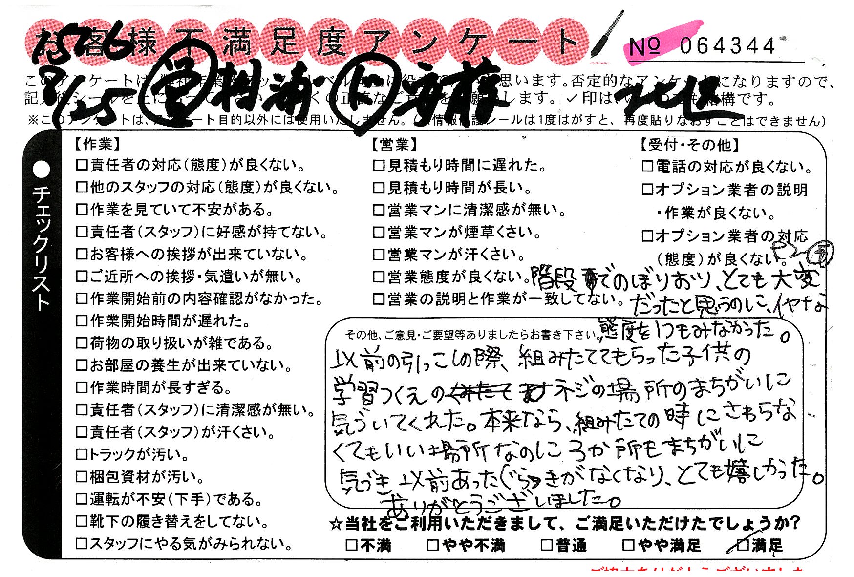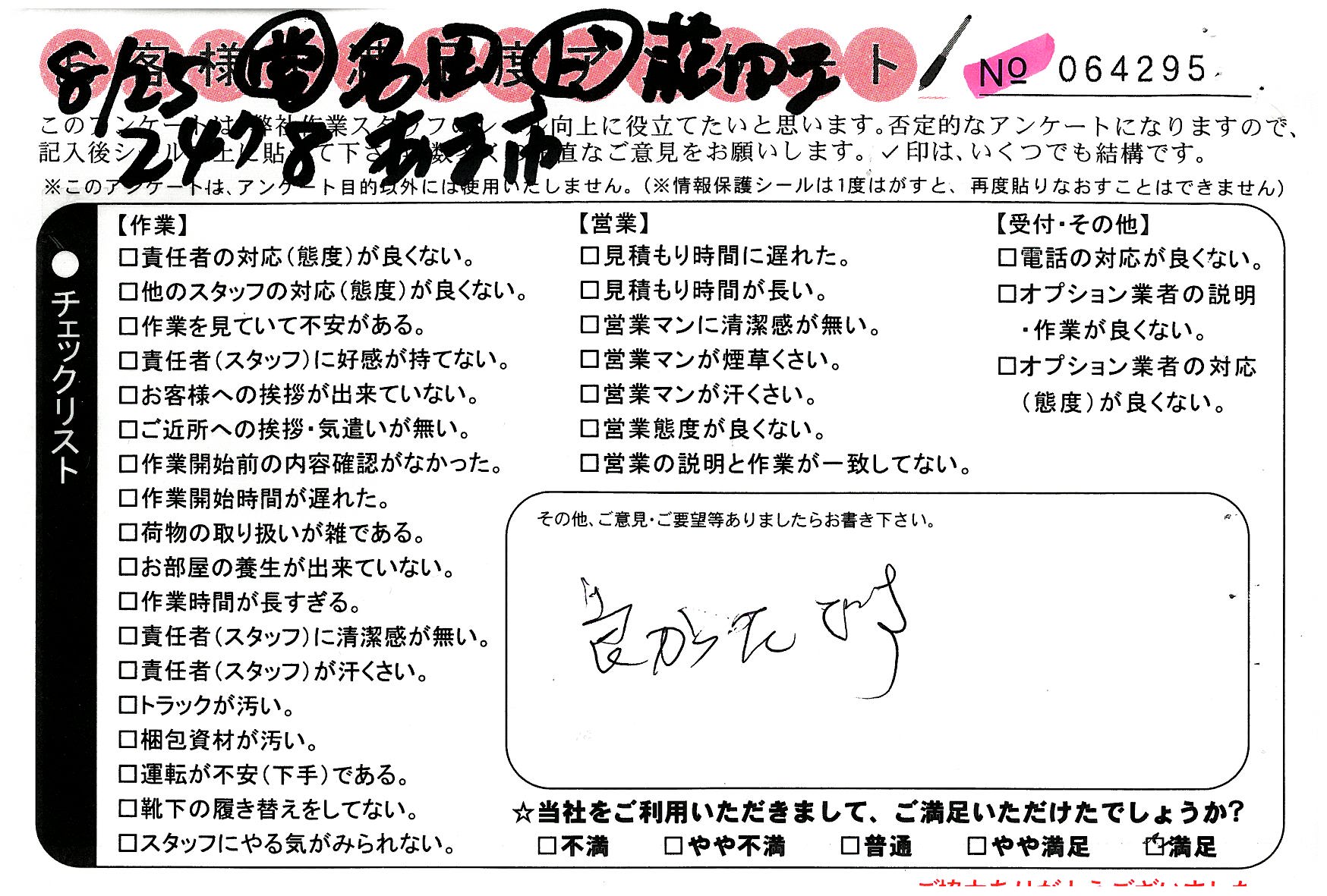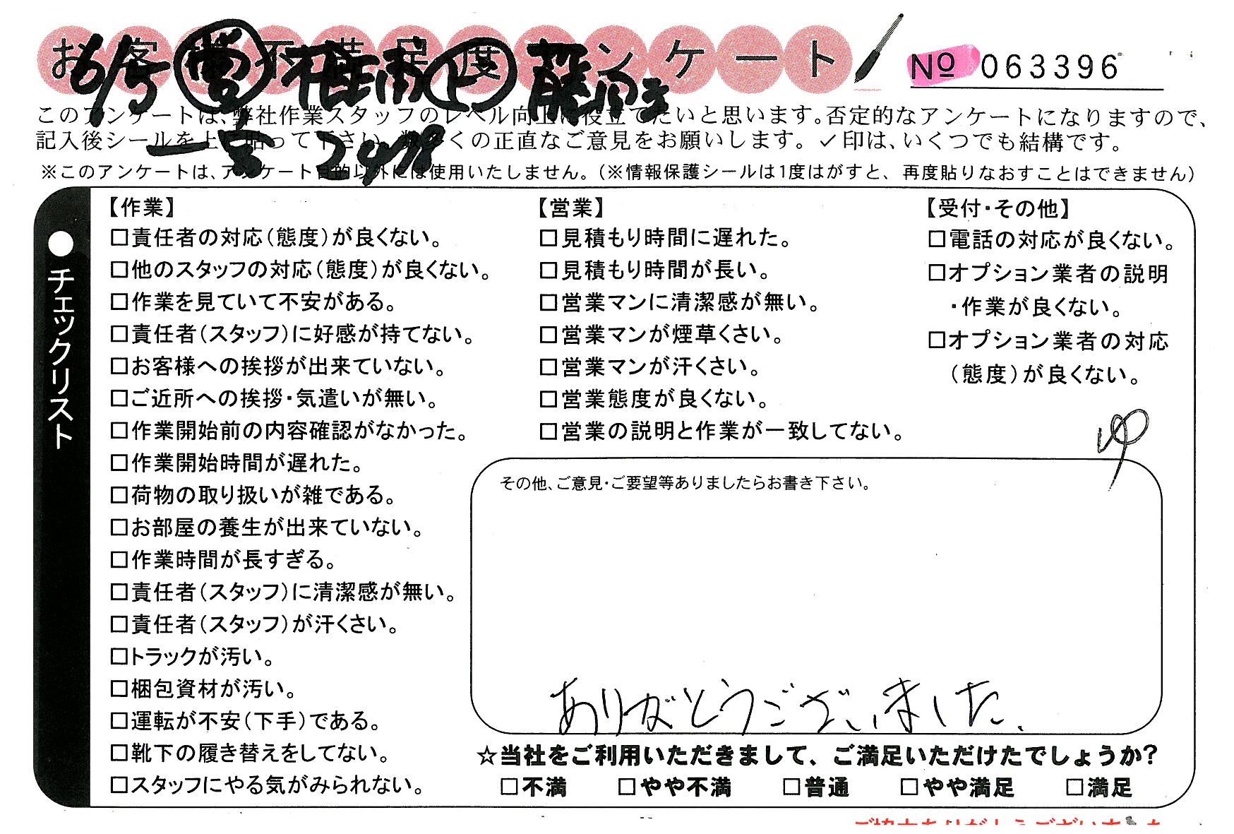 引越一番でお引越しをしていただいたお客様のうち、コメントいただいたアンケートを全て掲載しています。