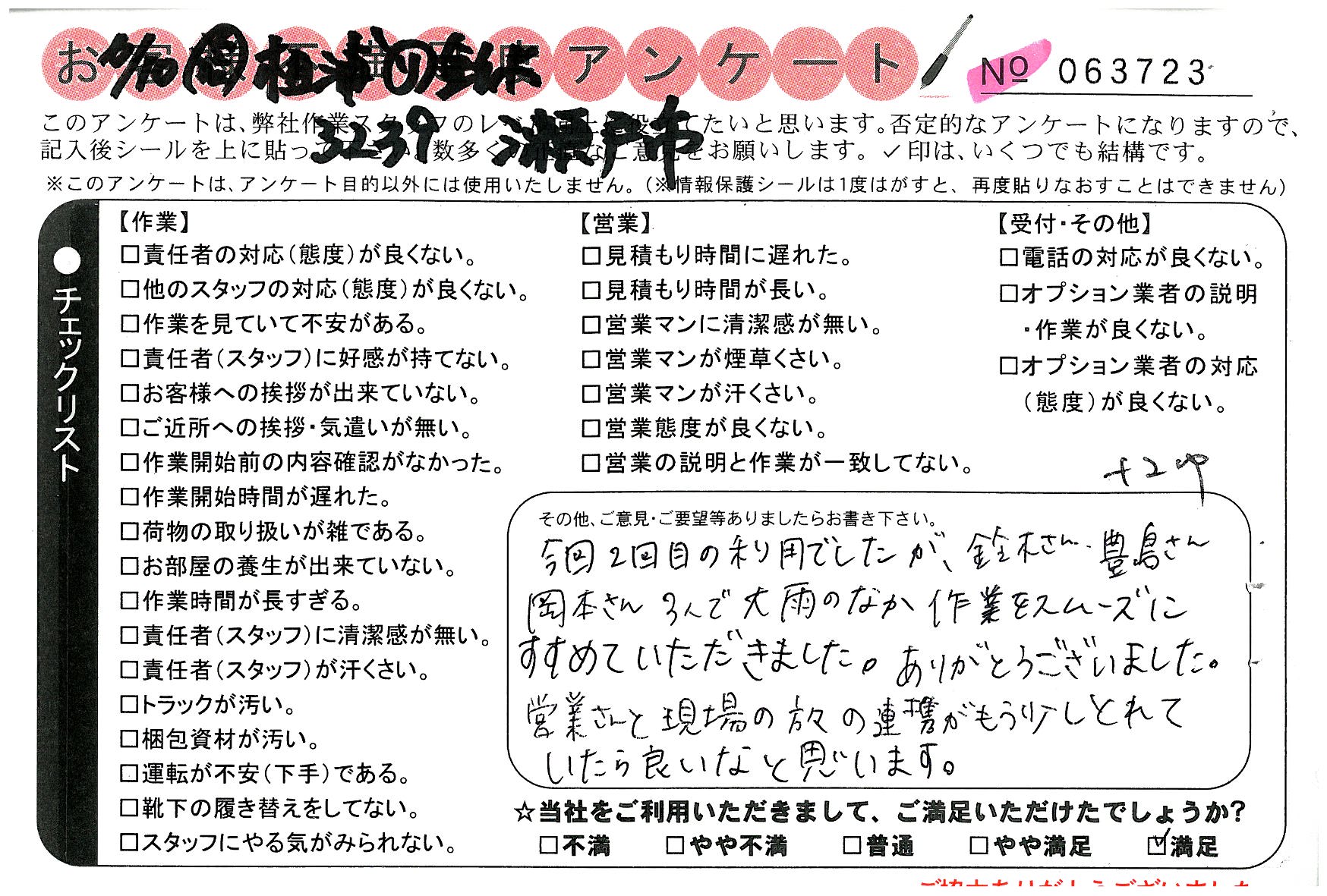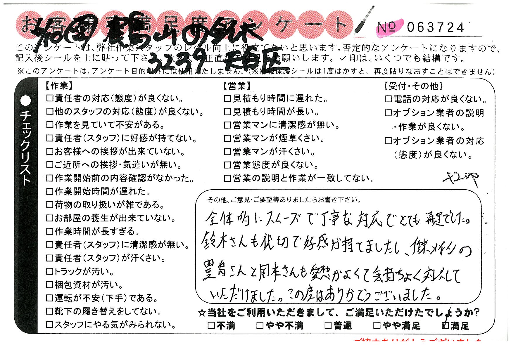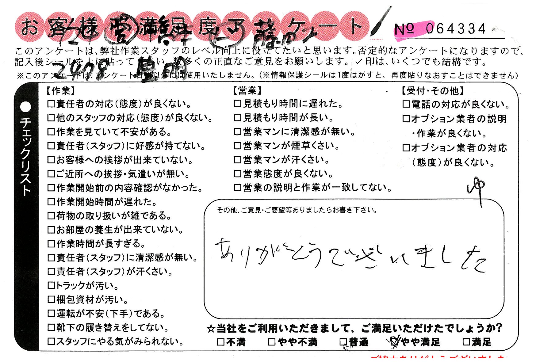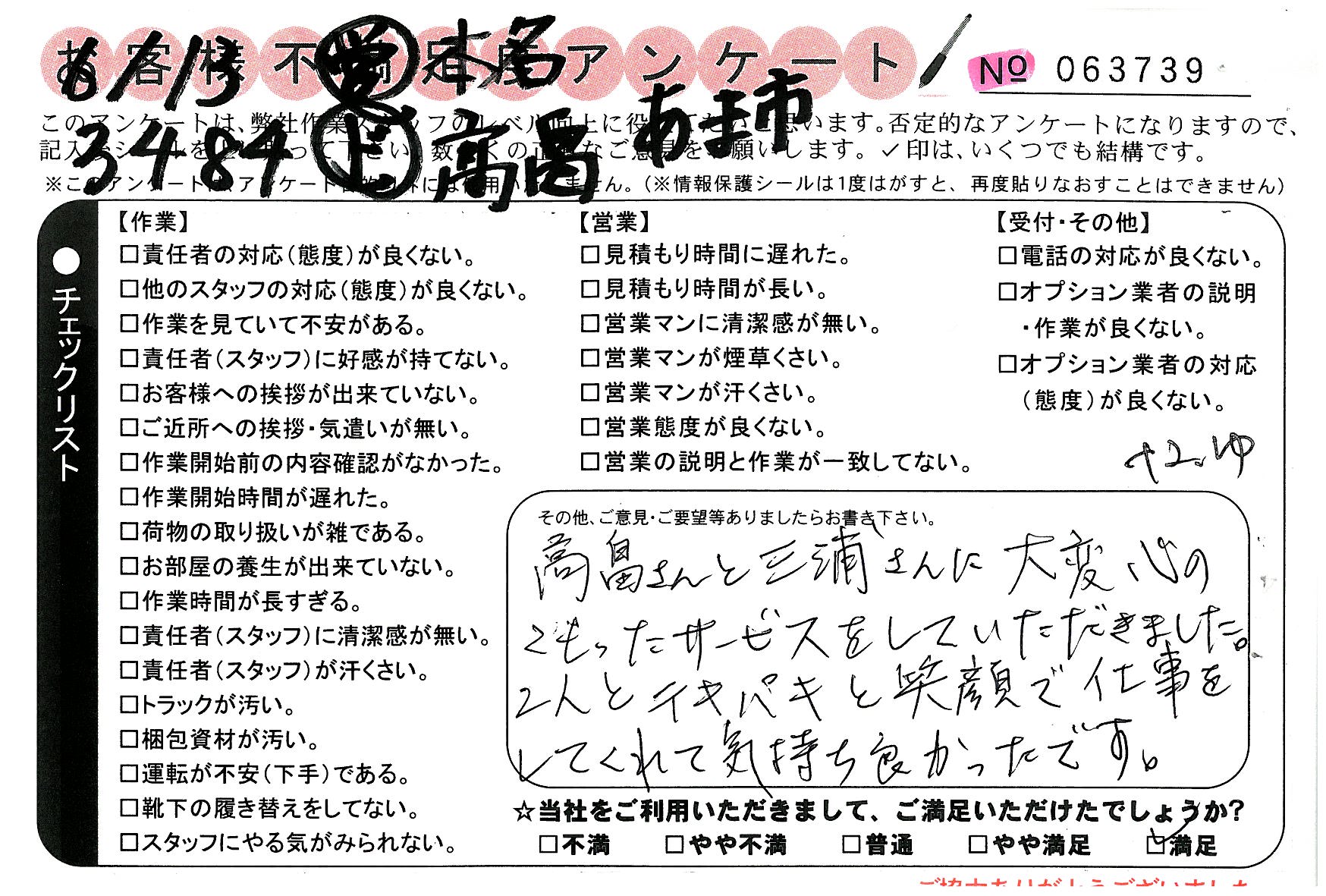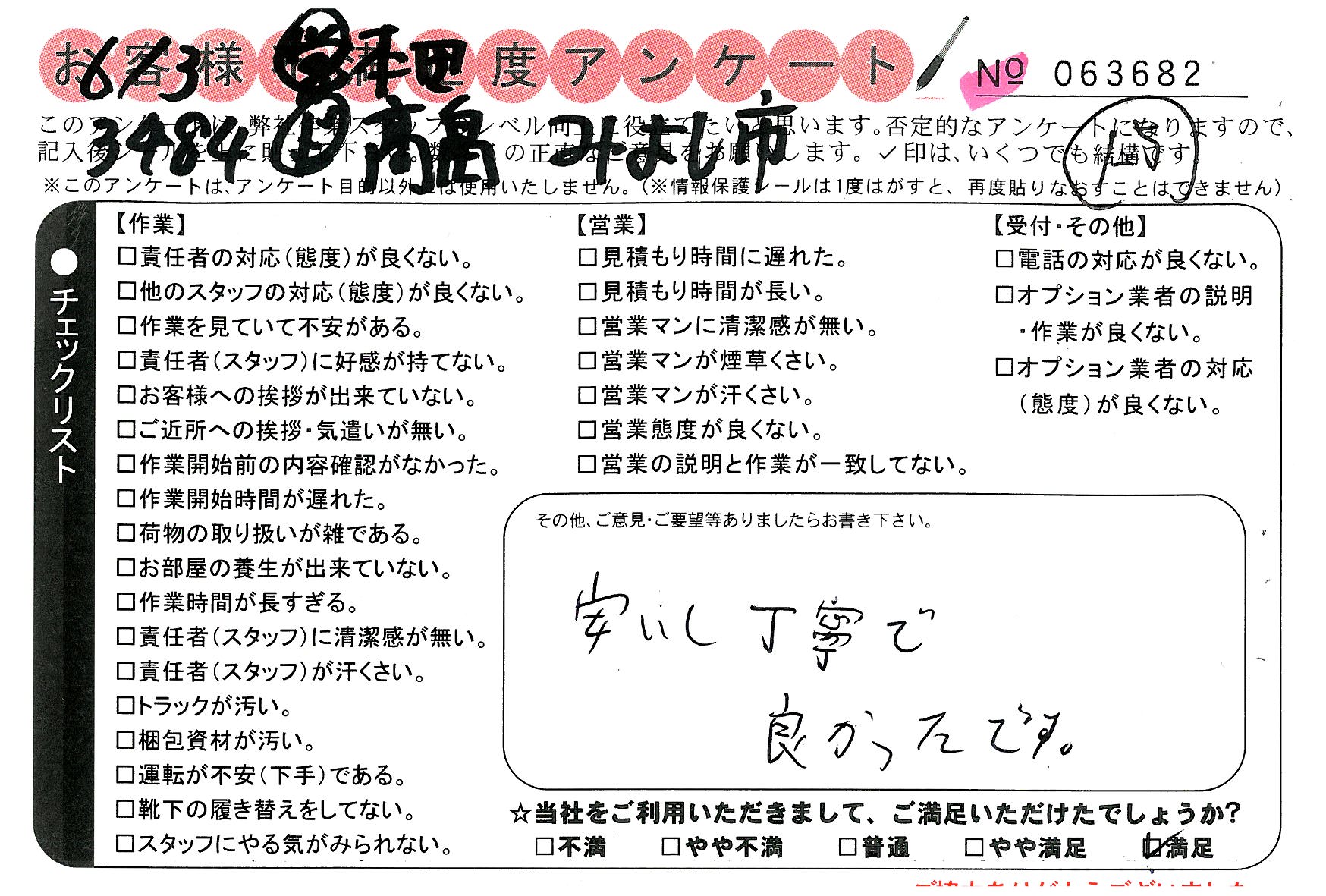 引越一番でお引越しをしていただいたお客様のうち、コメントいただいたアンケートを全て掲載しています。