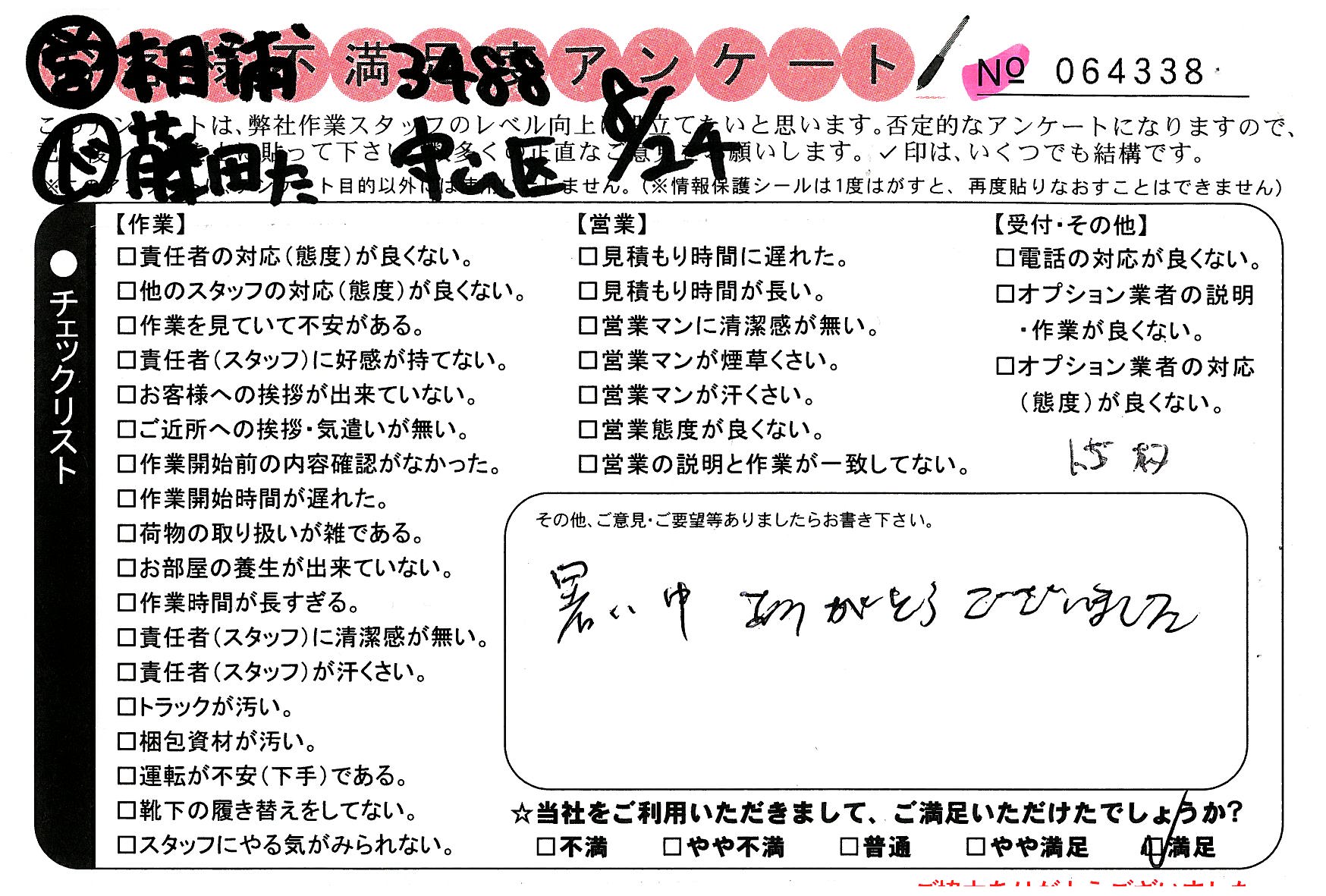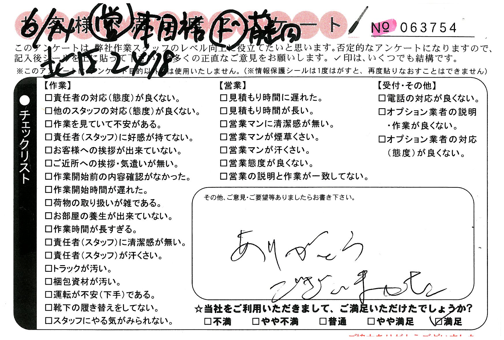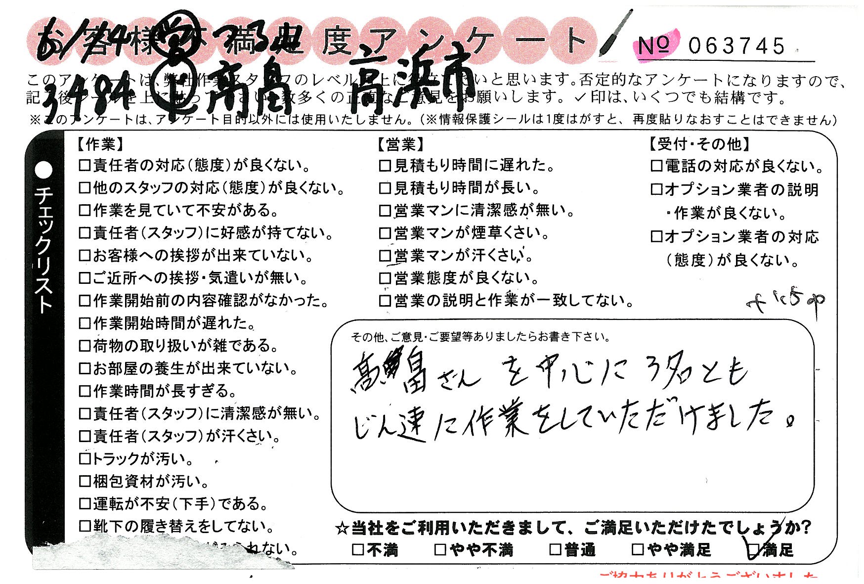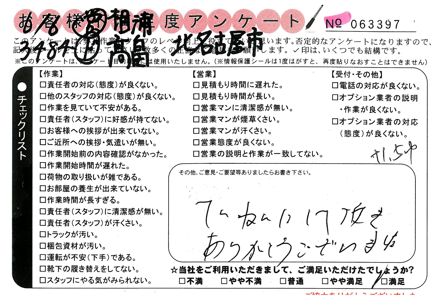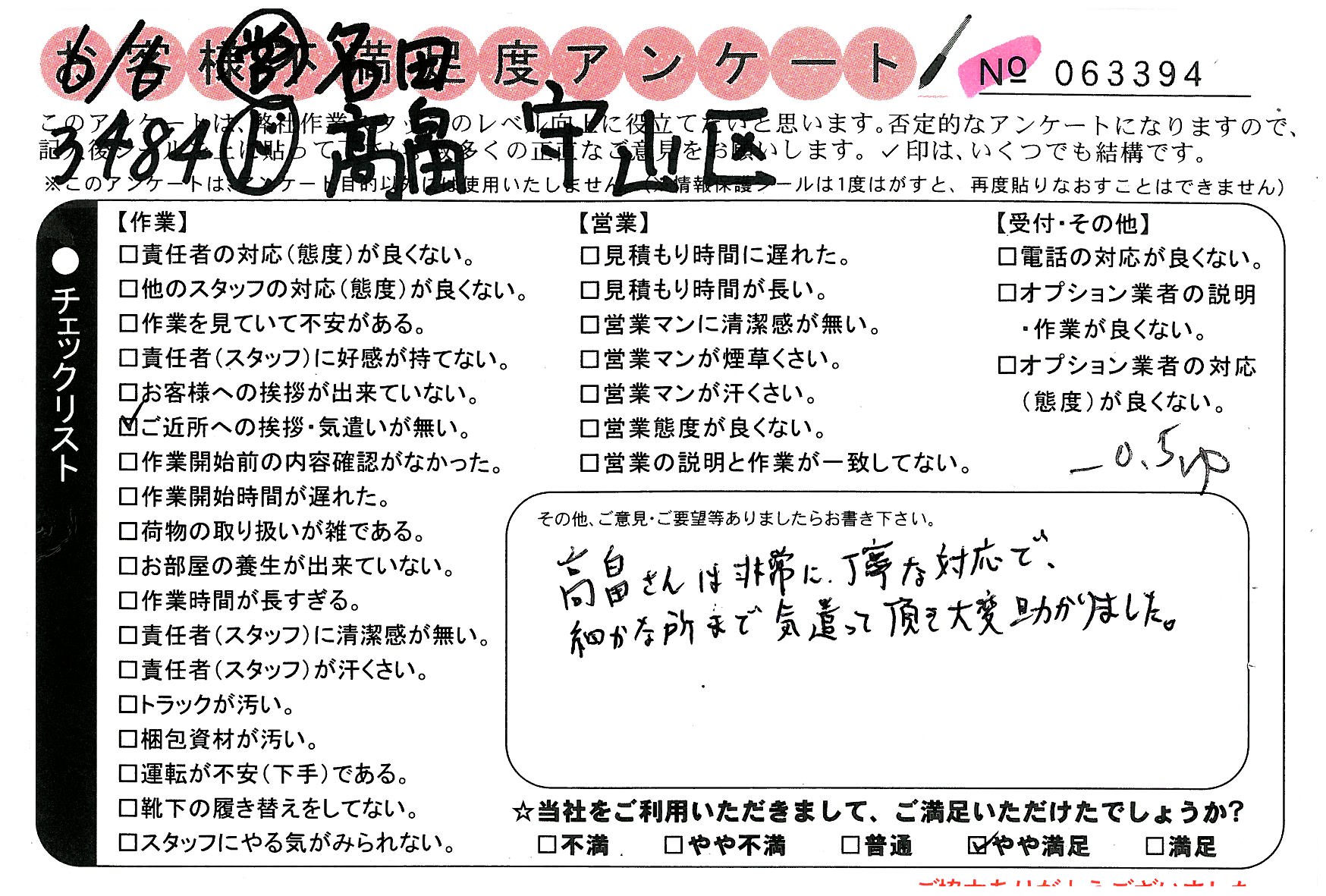 引越一番でお引越しをしていただいたお客様のうち、コメントいただいたアンケートを全て掲載しています。