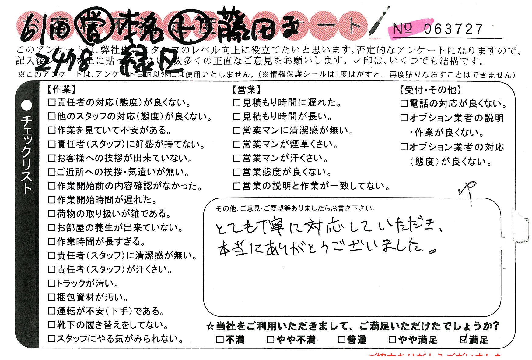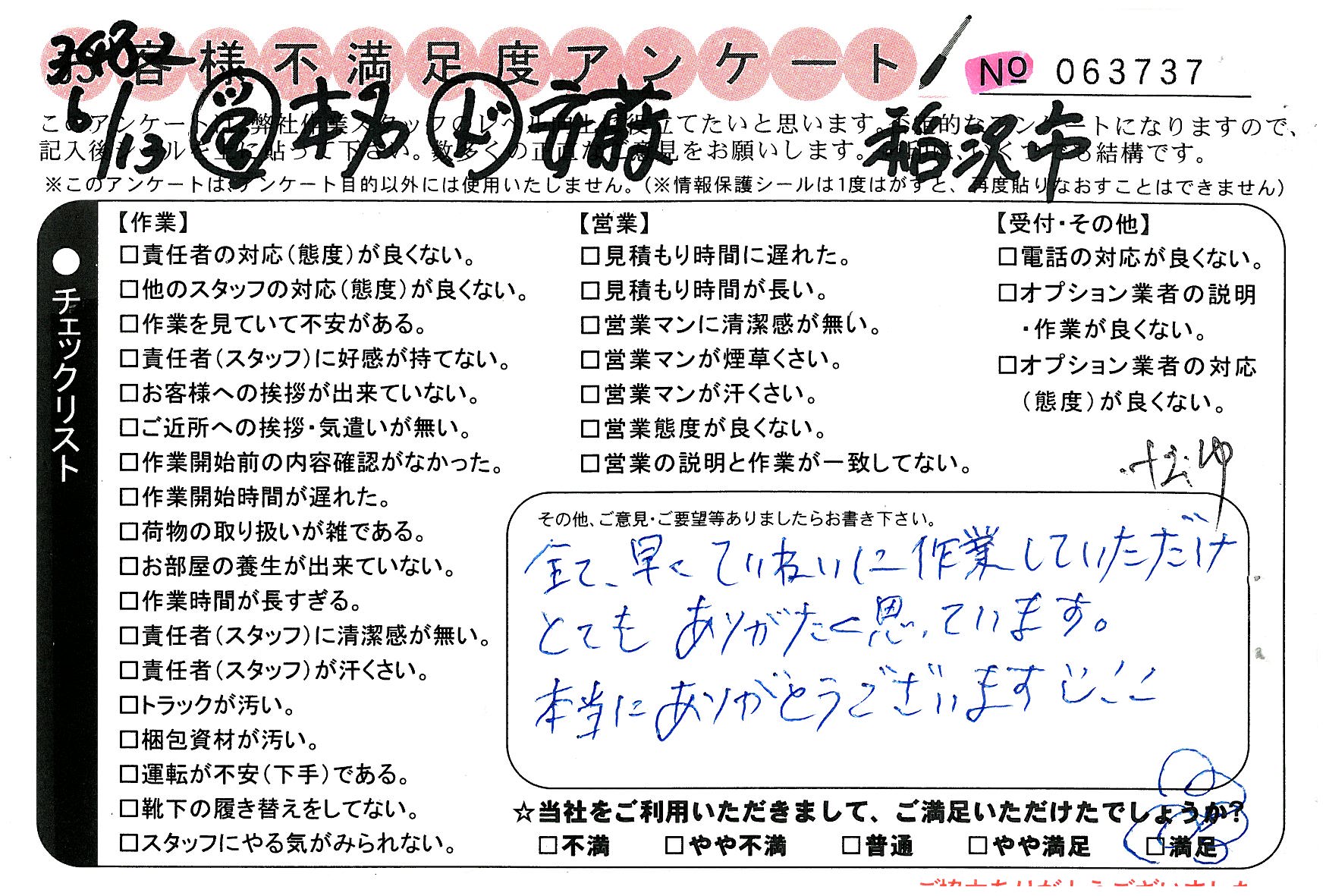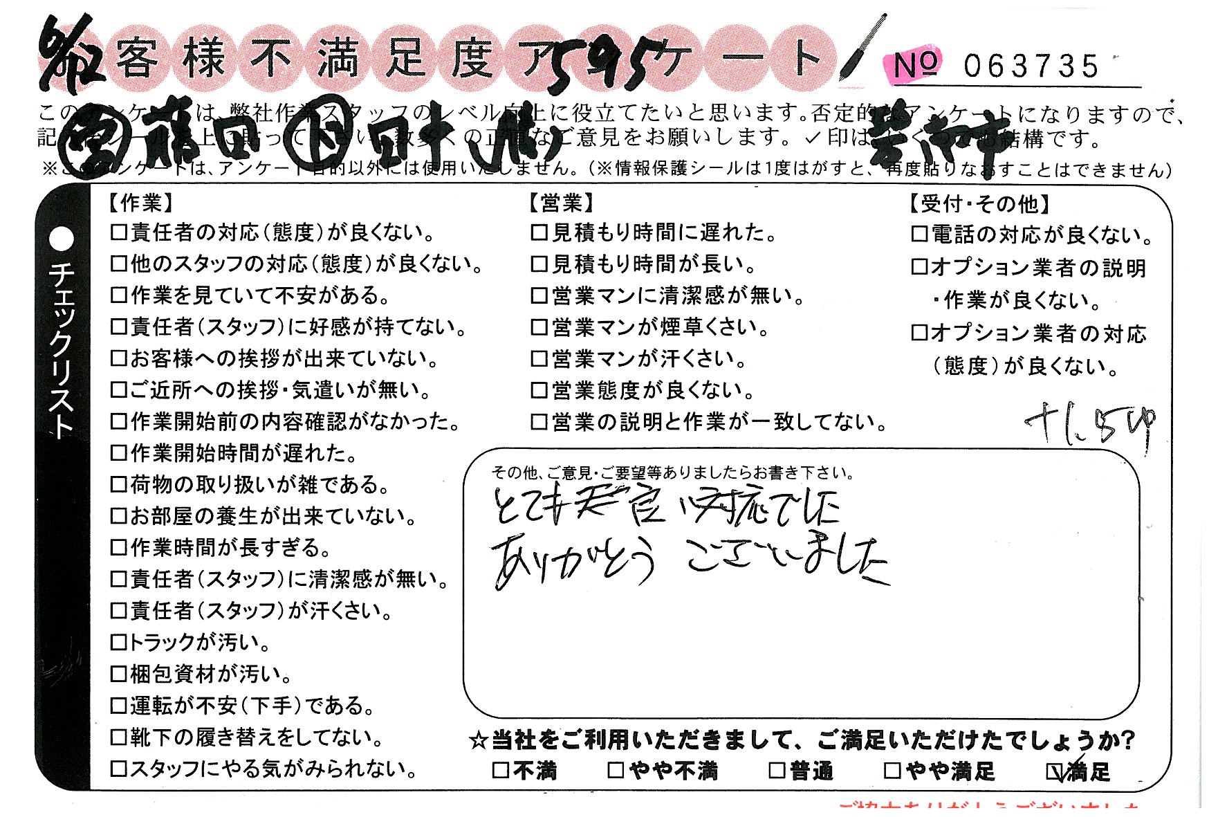 * 大変満足です。ありがとうございました。
