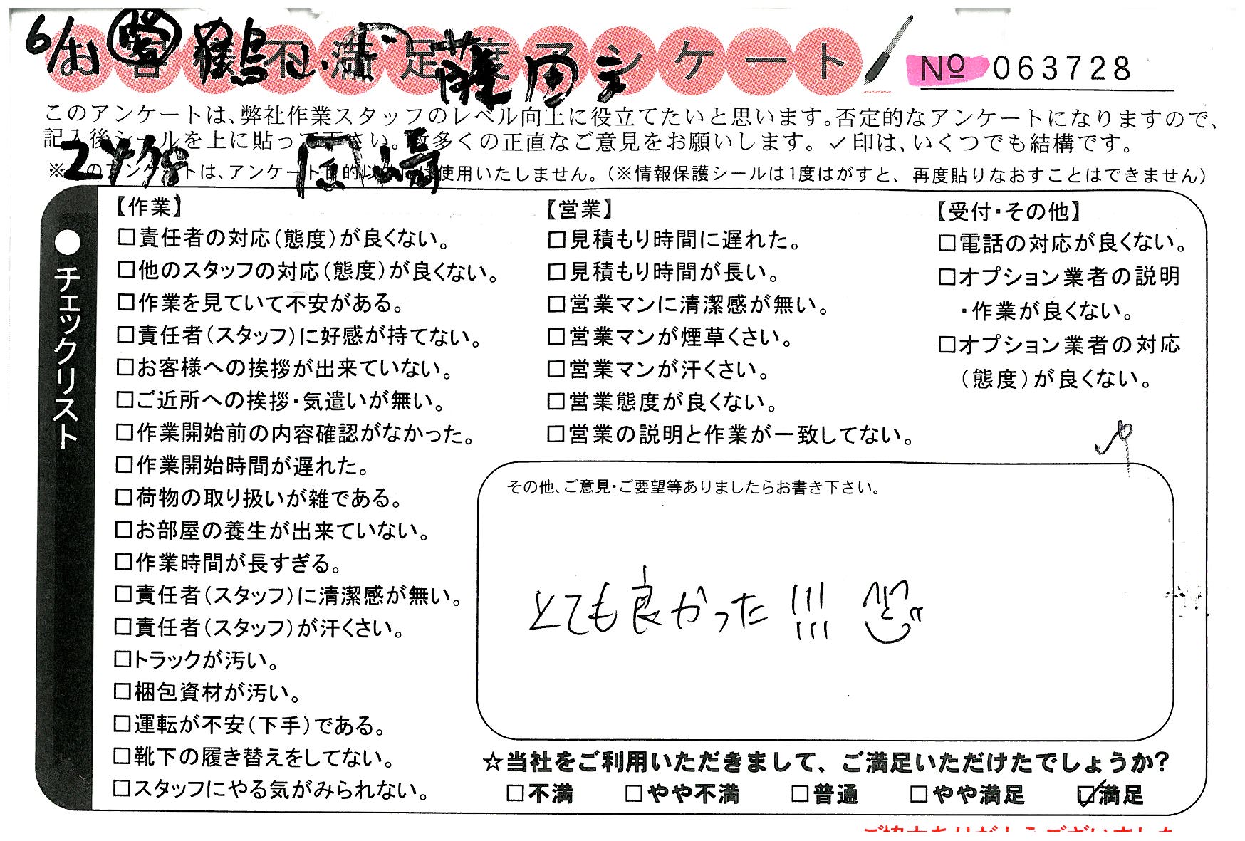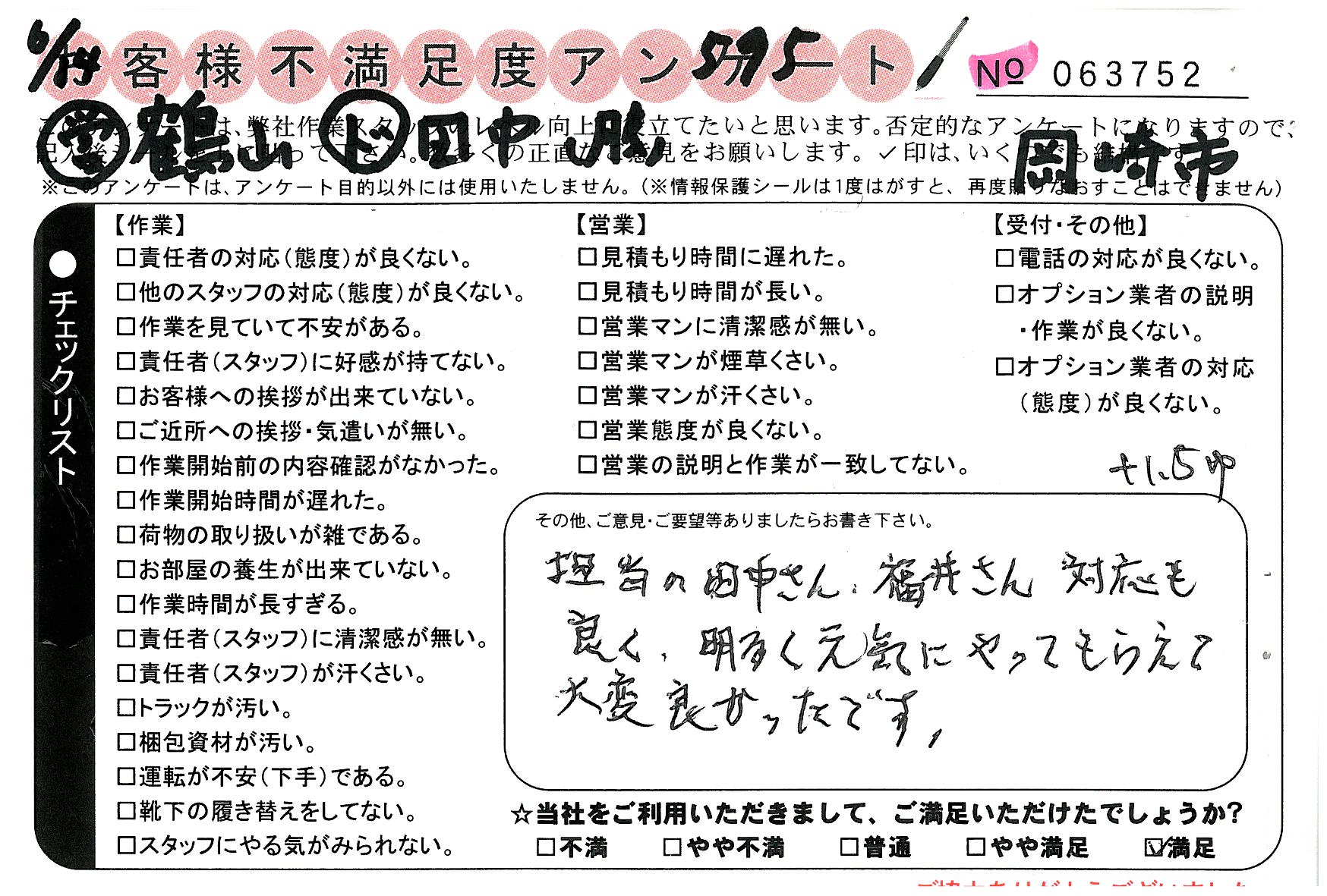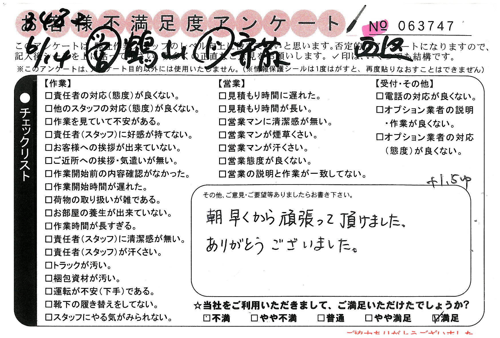 不満足度アンケートを行っている引越一番では、不評なアンケートも、好評なアンケートも全て掲載しています。