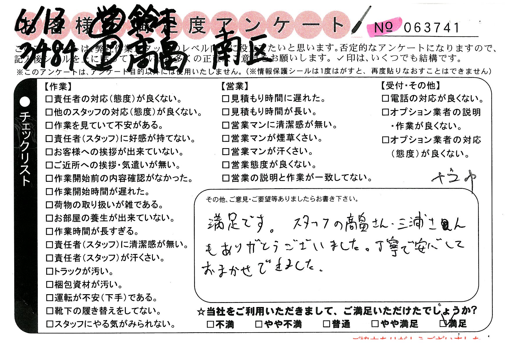 * 満足です。スタッフの髙畠さん、三浦さんも