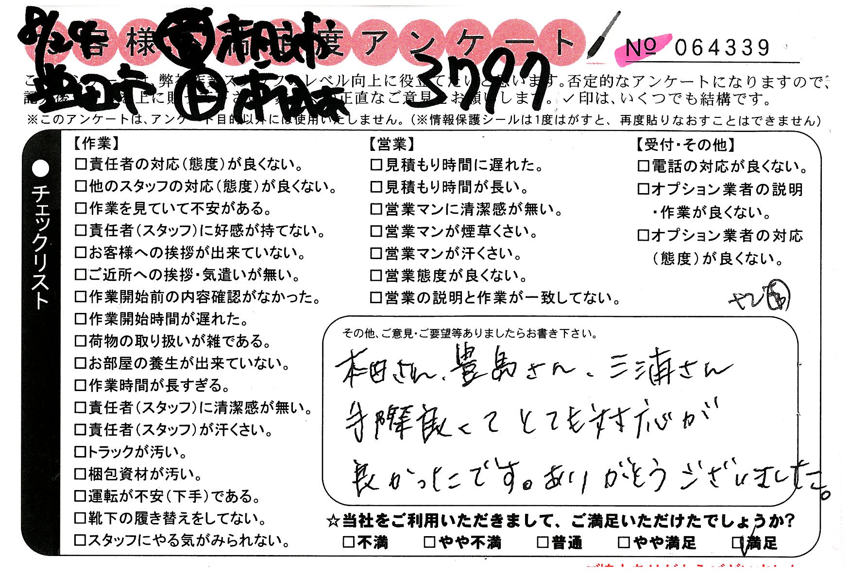 豊島さんは丁寧かつスピーディーに運んで下さいました。岡本さん