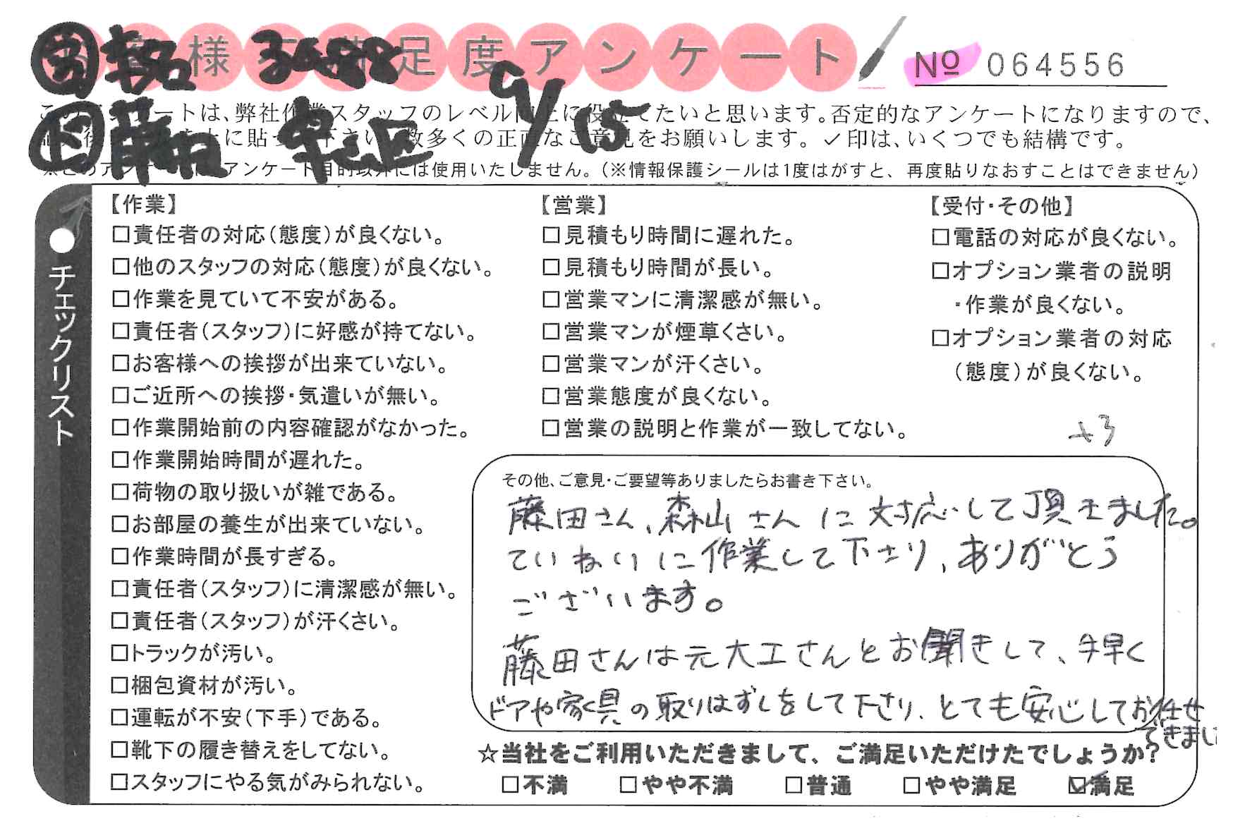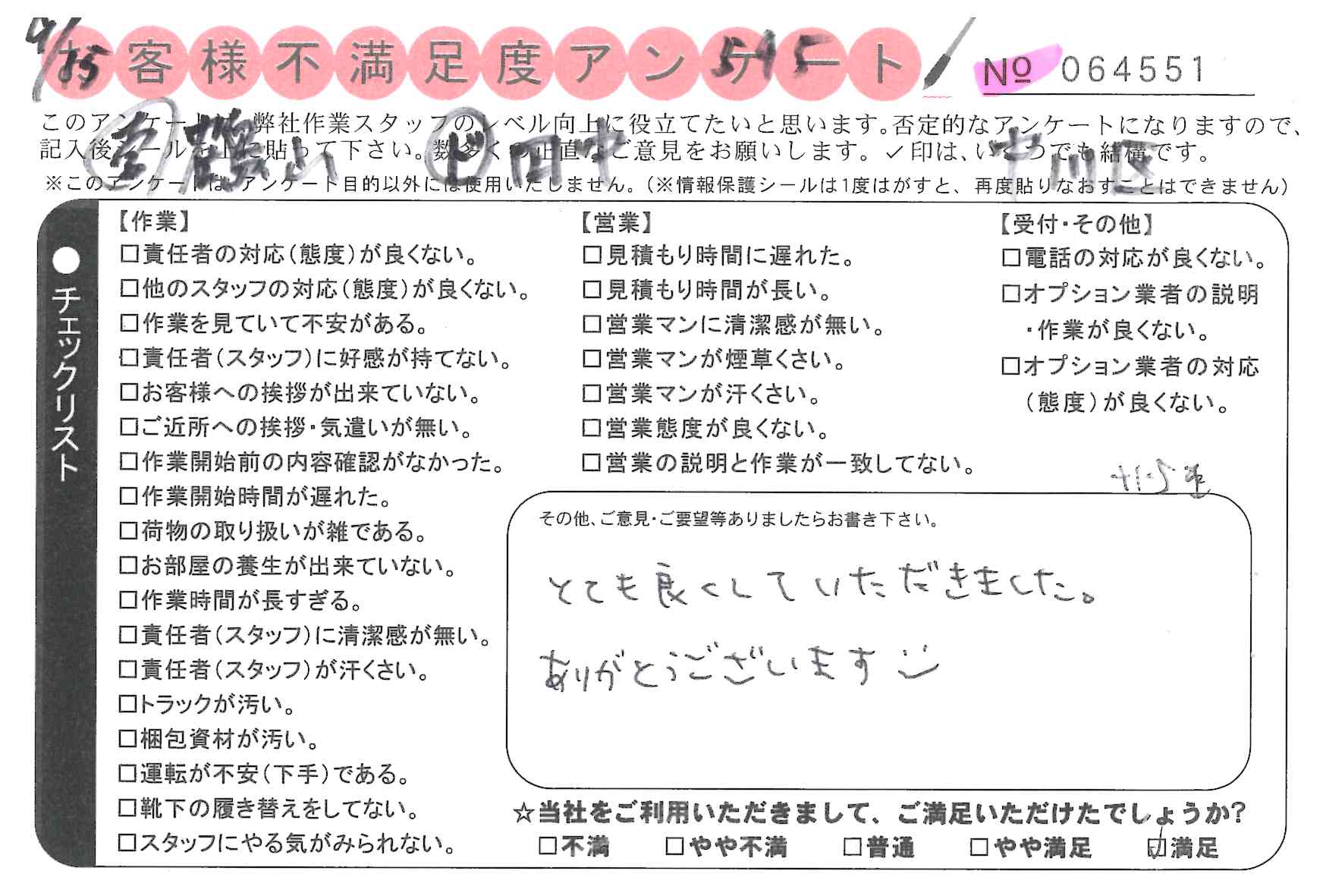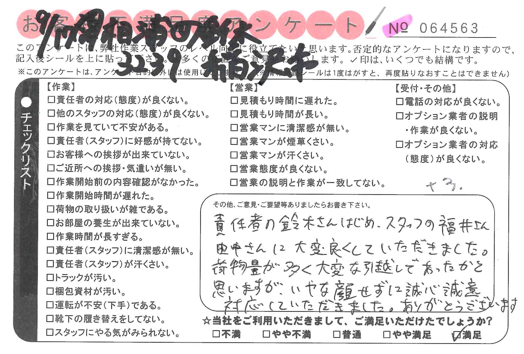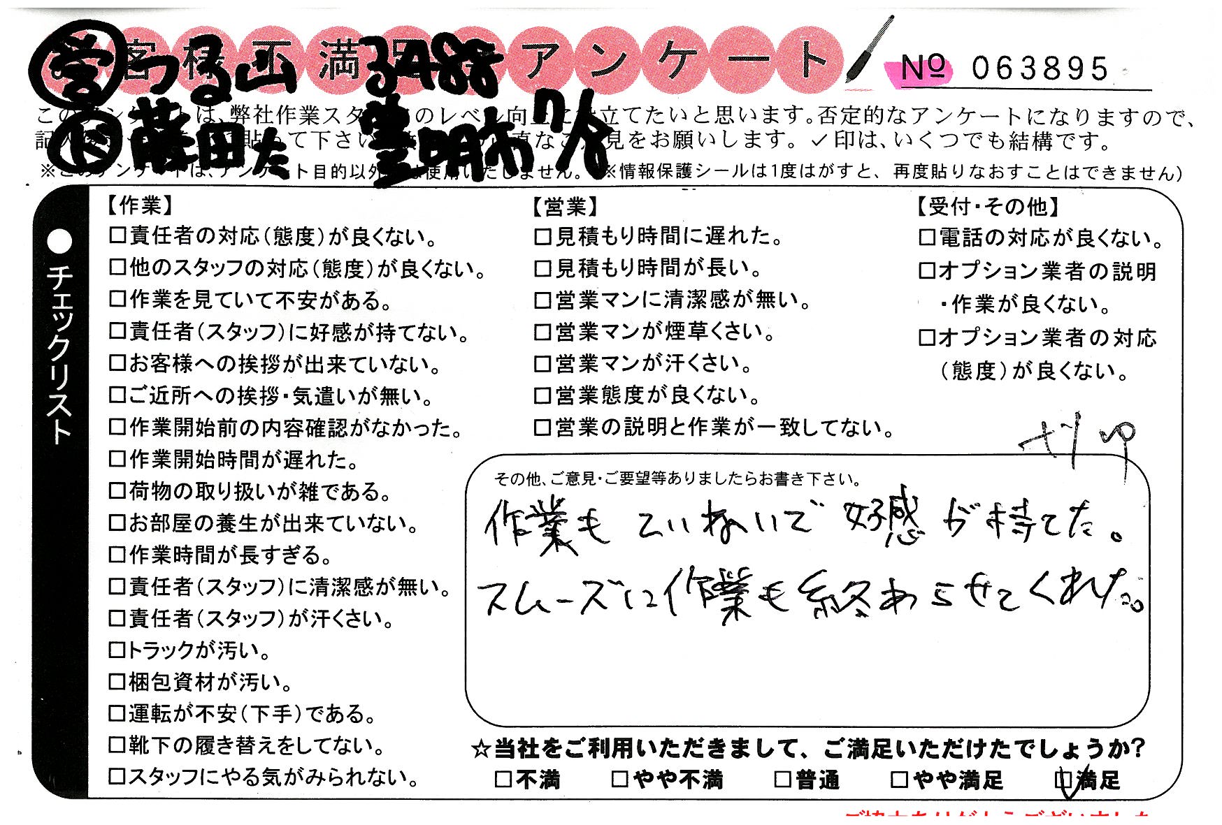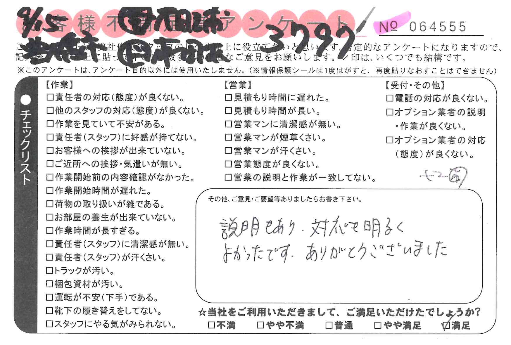 引越一番でお引越しをしていただいたお客様のうち、コメントいただいたアンケートを全て掲載しています。