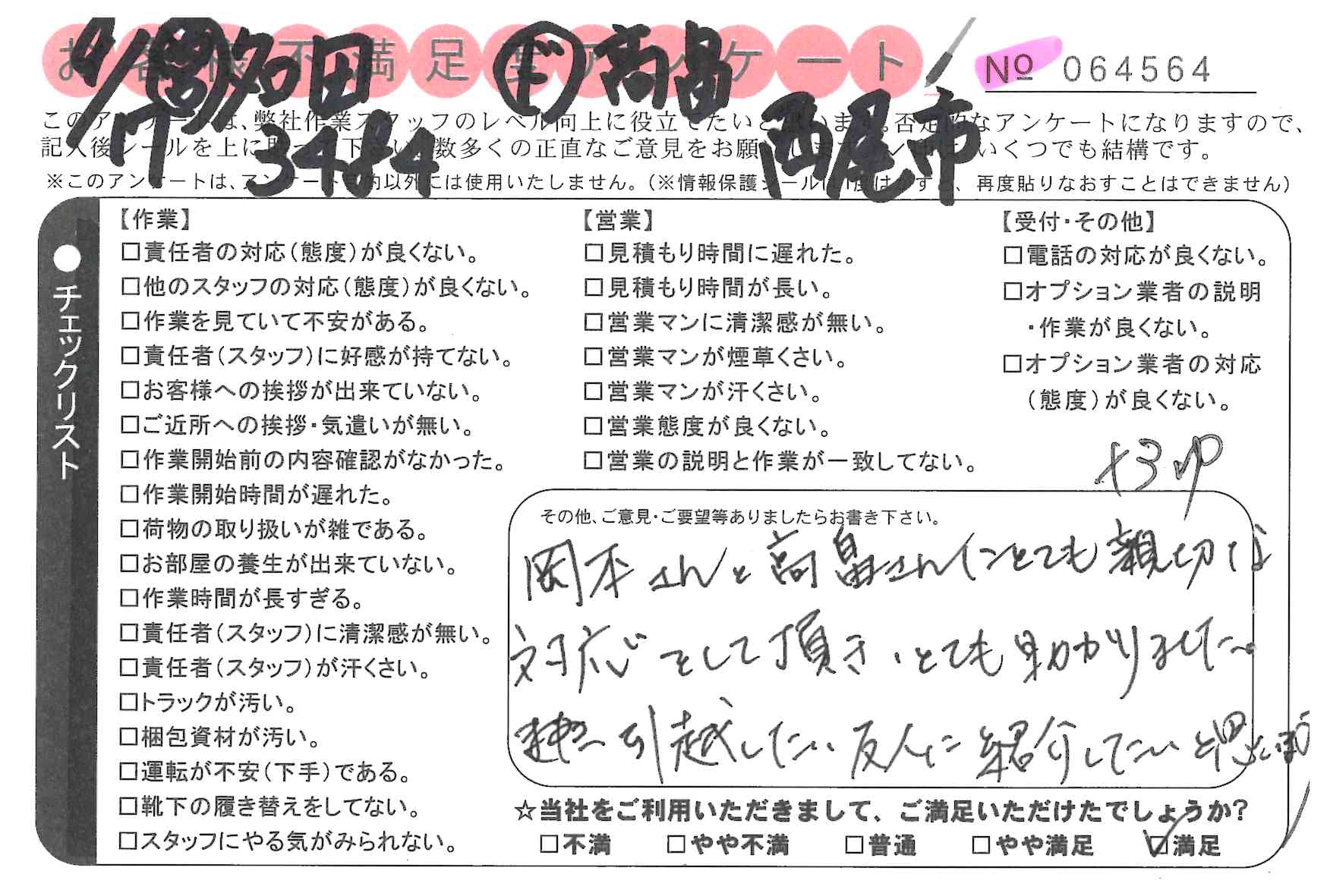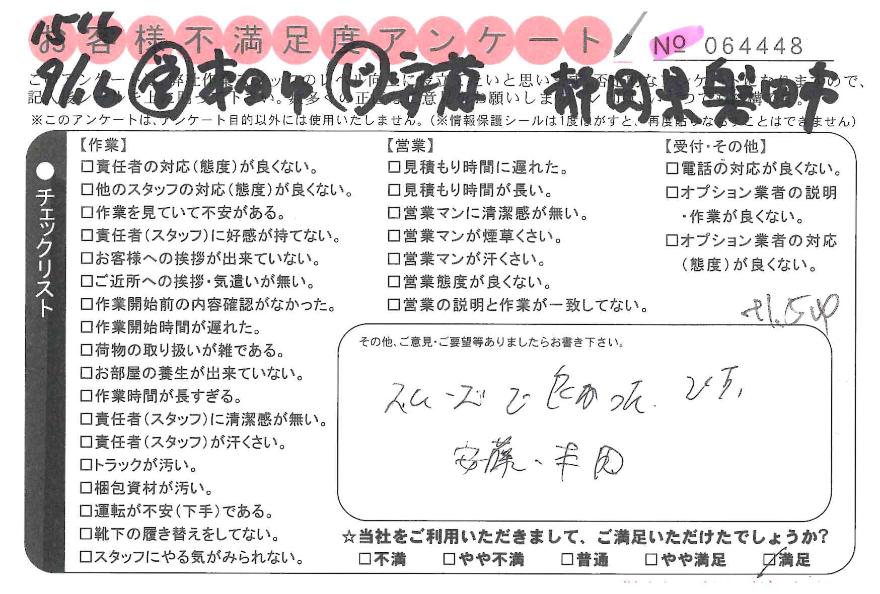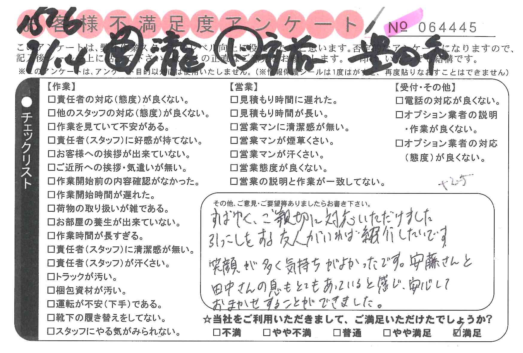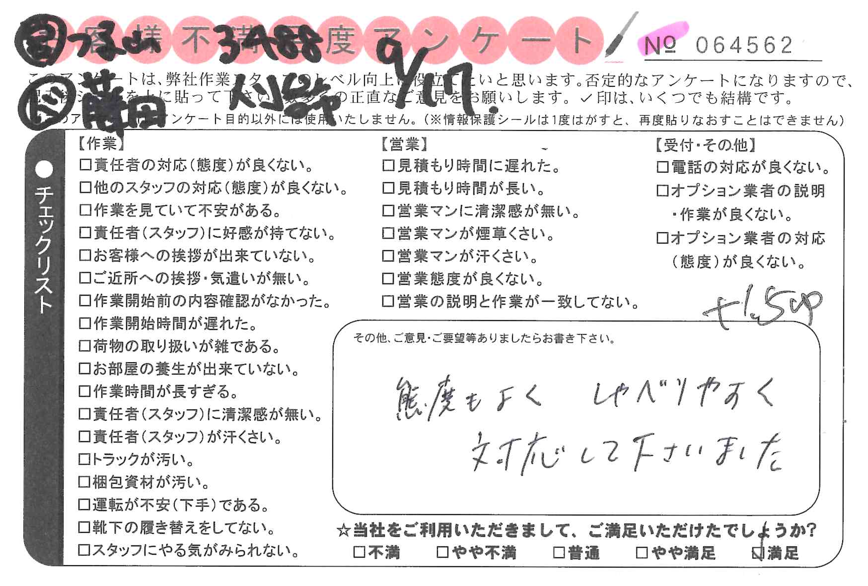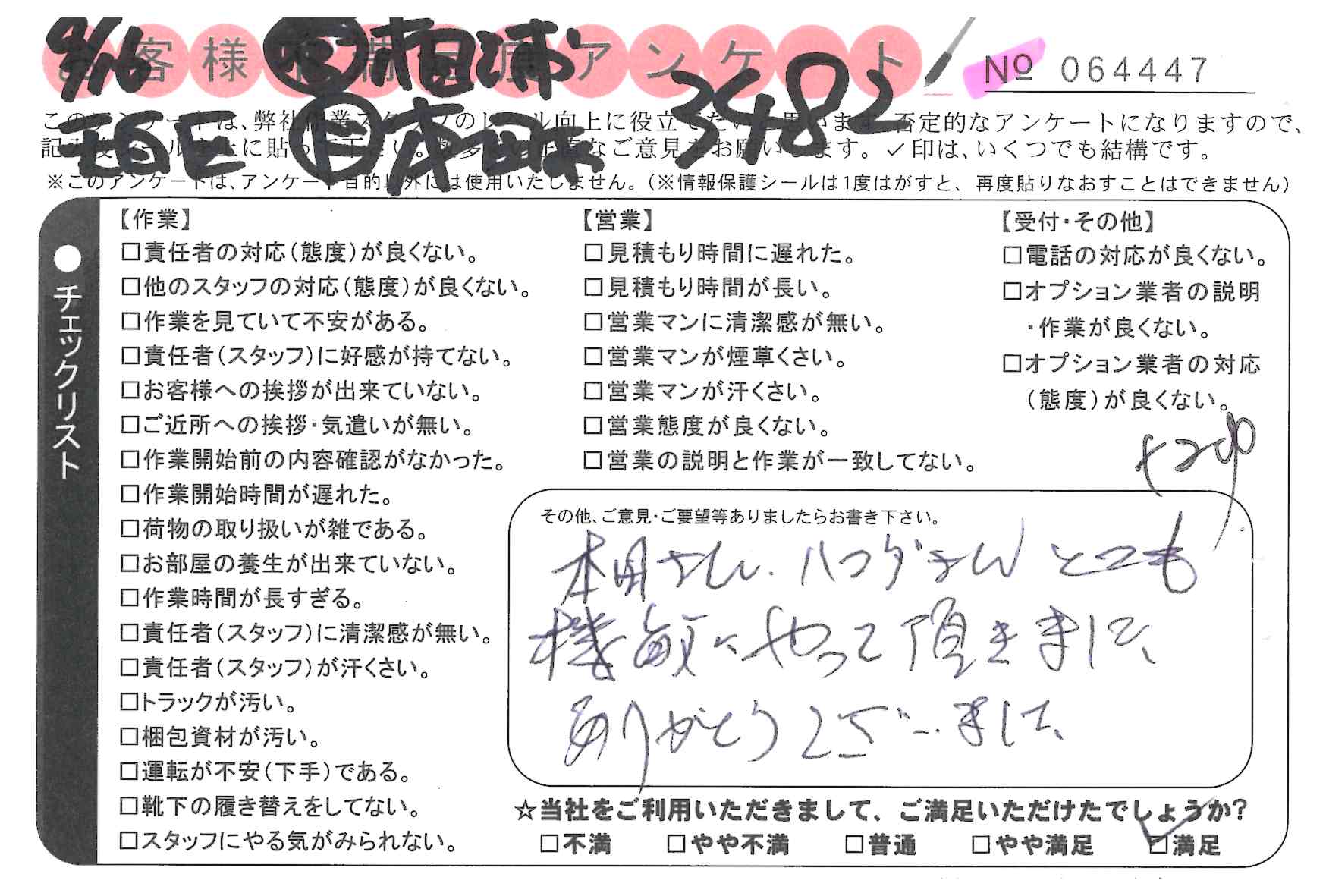 引越一番でお引越しをしていただいたお客様のうち、コメントいただいたアンケートを全て掲載しています。