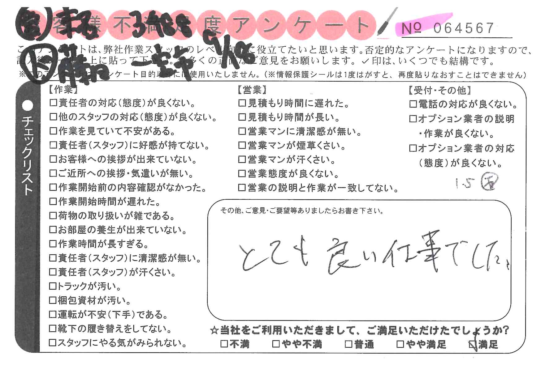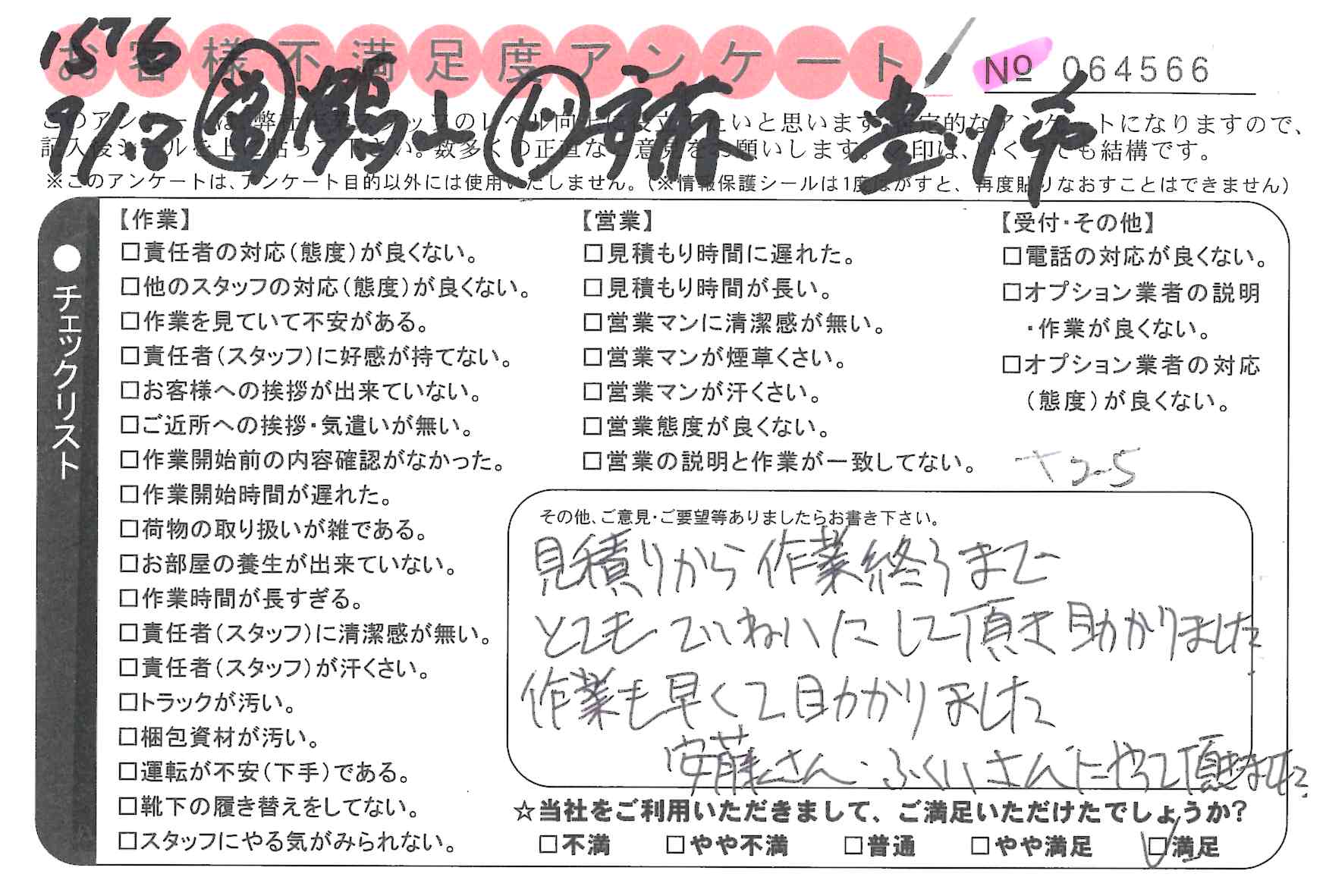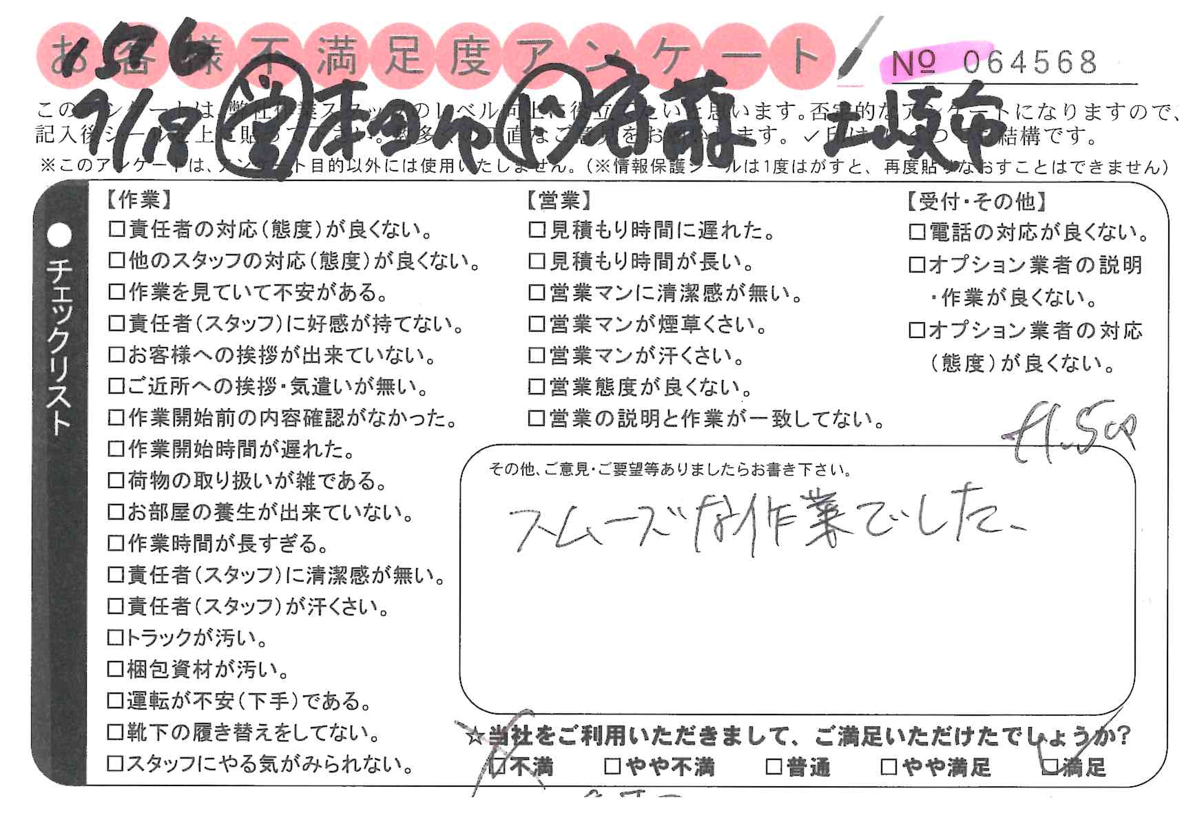 不満足度アンケートを行っている引越一番では、不評なアンケートも、好評なアンケートも全て掲載しています。
