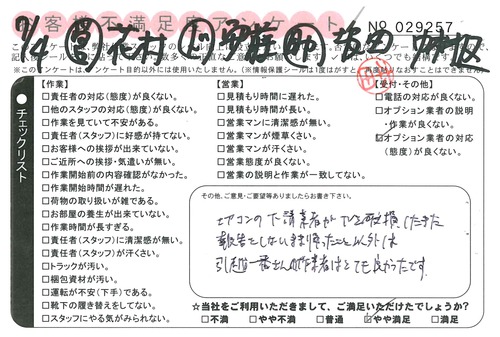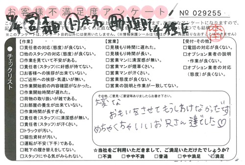 引越一番でお引越しをしていただいたお客様のうち、コメントいただいたアンケートを全て掲載しています。