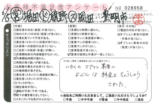 引越一番でお引越しをしていただいたお客様のうち、コメントいただいたアンケートを全て掲載しています。