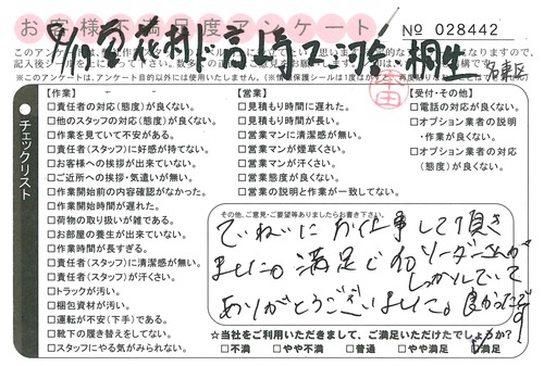 引越一番でお引越しをしていただいたお客様のうち、コメントいただいたアンケートを全て掲載しています。