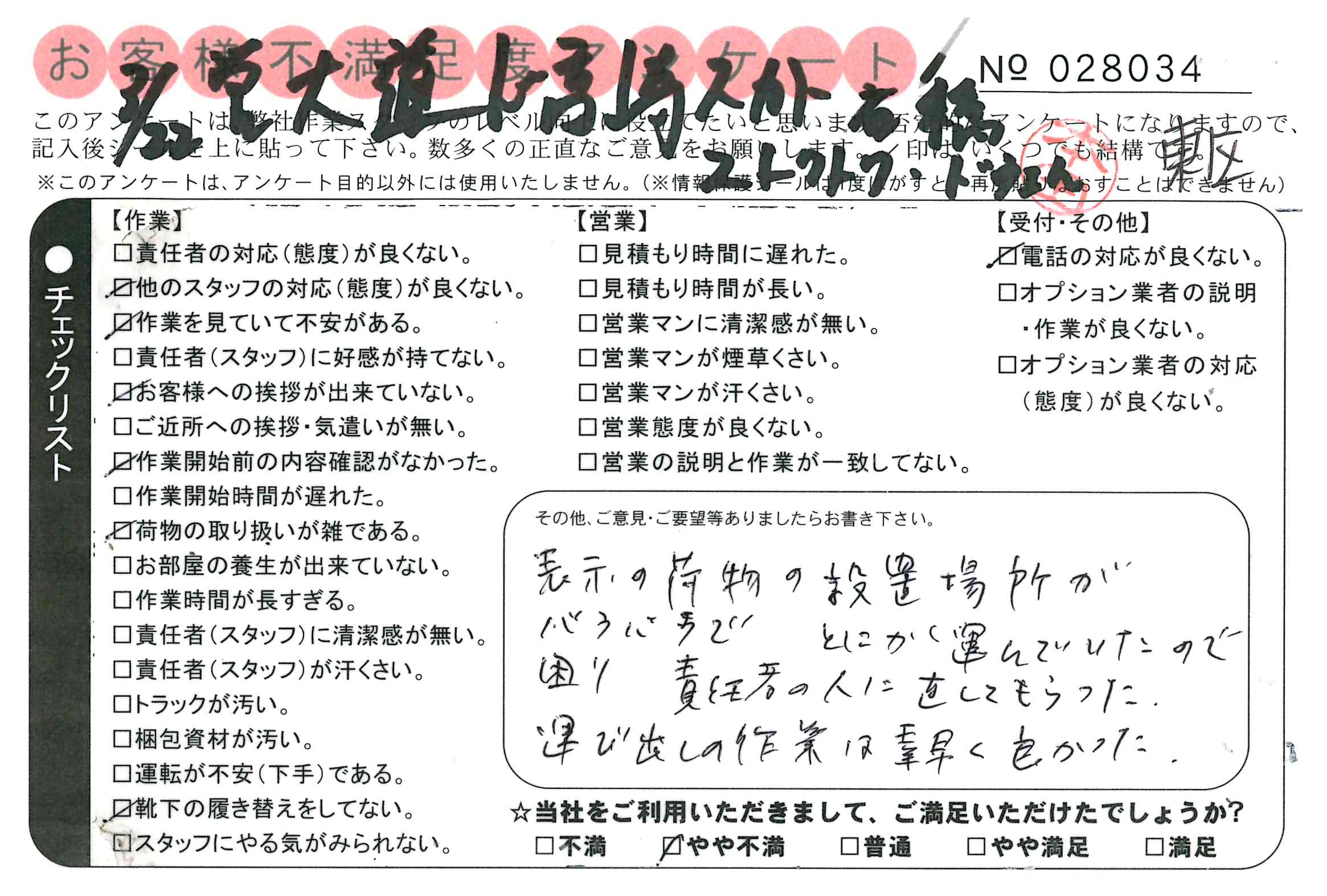 3/15 引越 営業:花村 ドライバー:本名 スタッフ:角田・佐々木* 非常に丁寧にやって頂き、ありがとうございました。