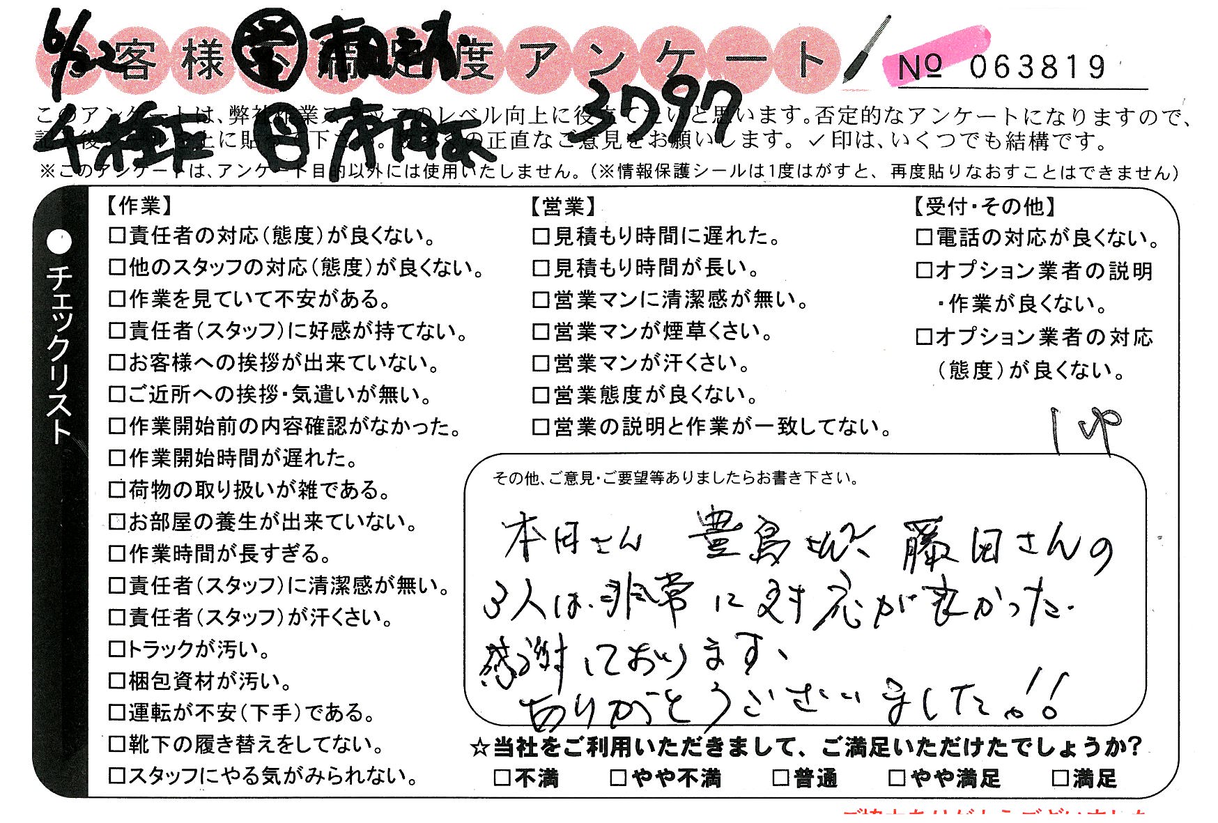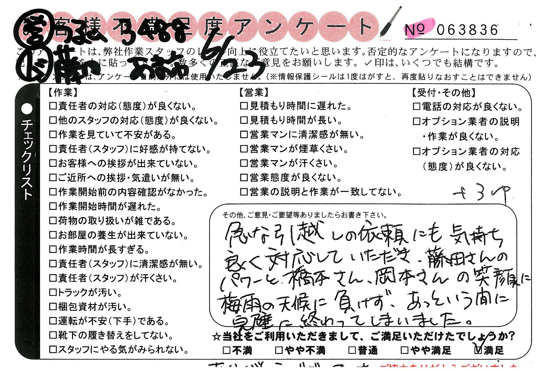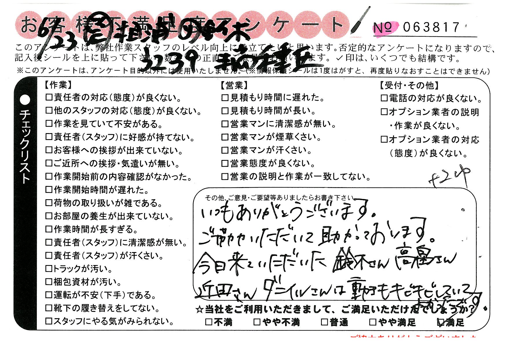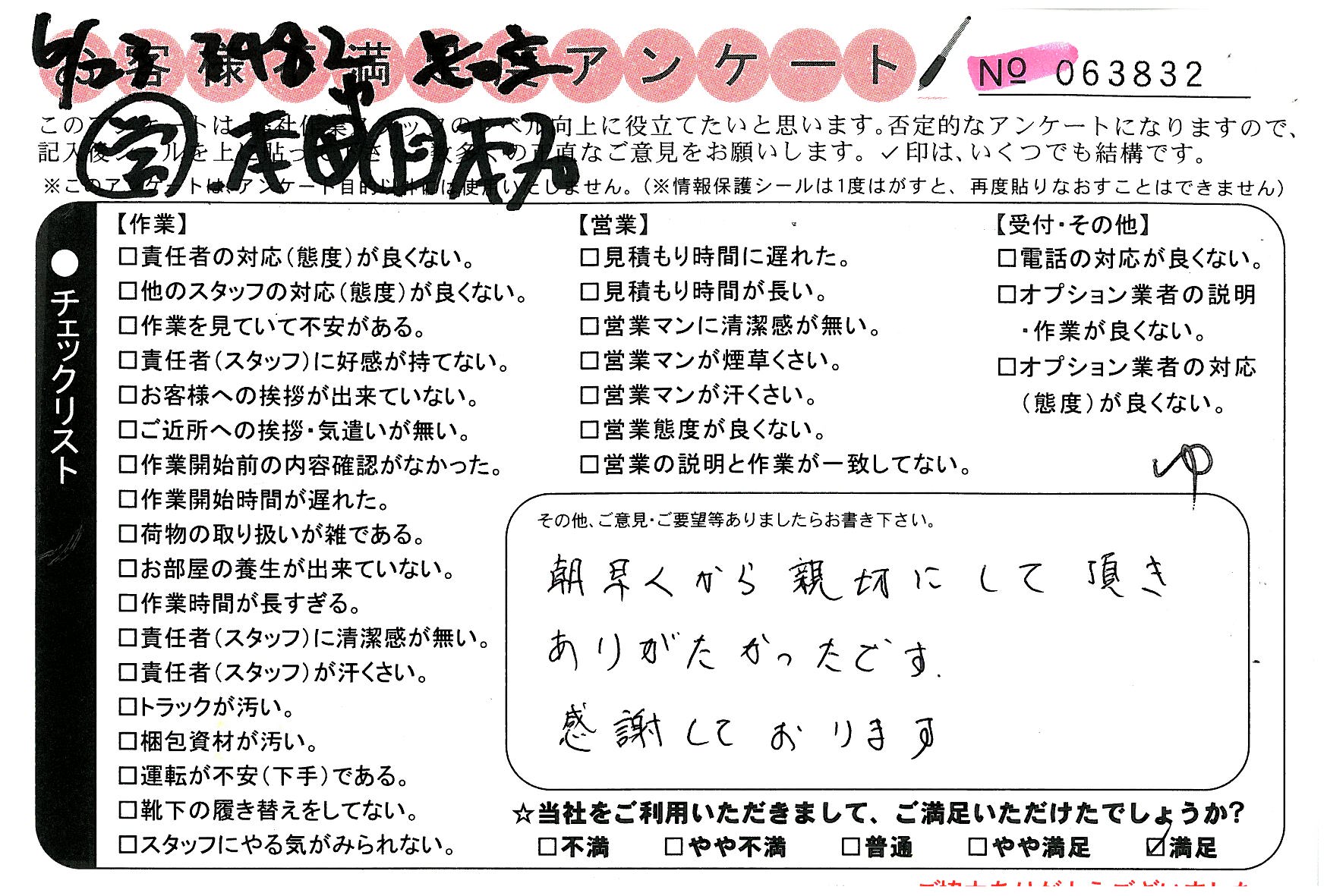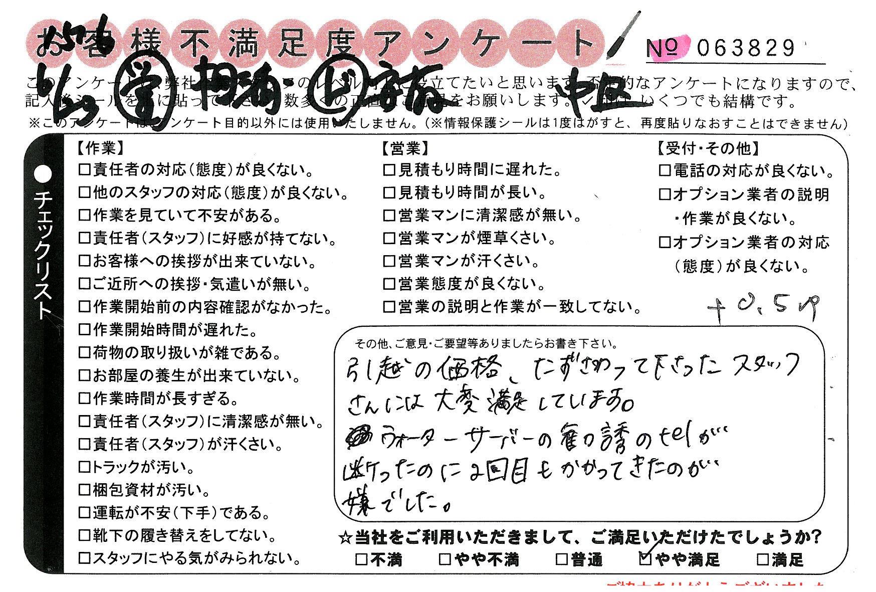引越一番でお引越しをしていただいたお客様のうち、コメントいただいたアンケートを全て掲載しています。