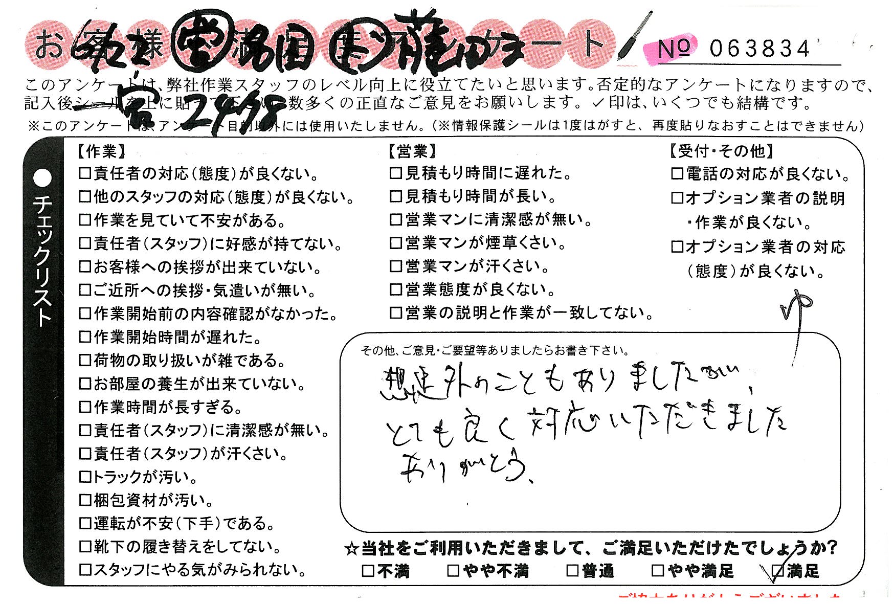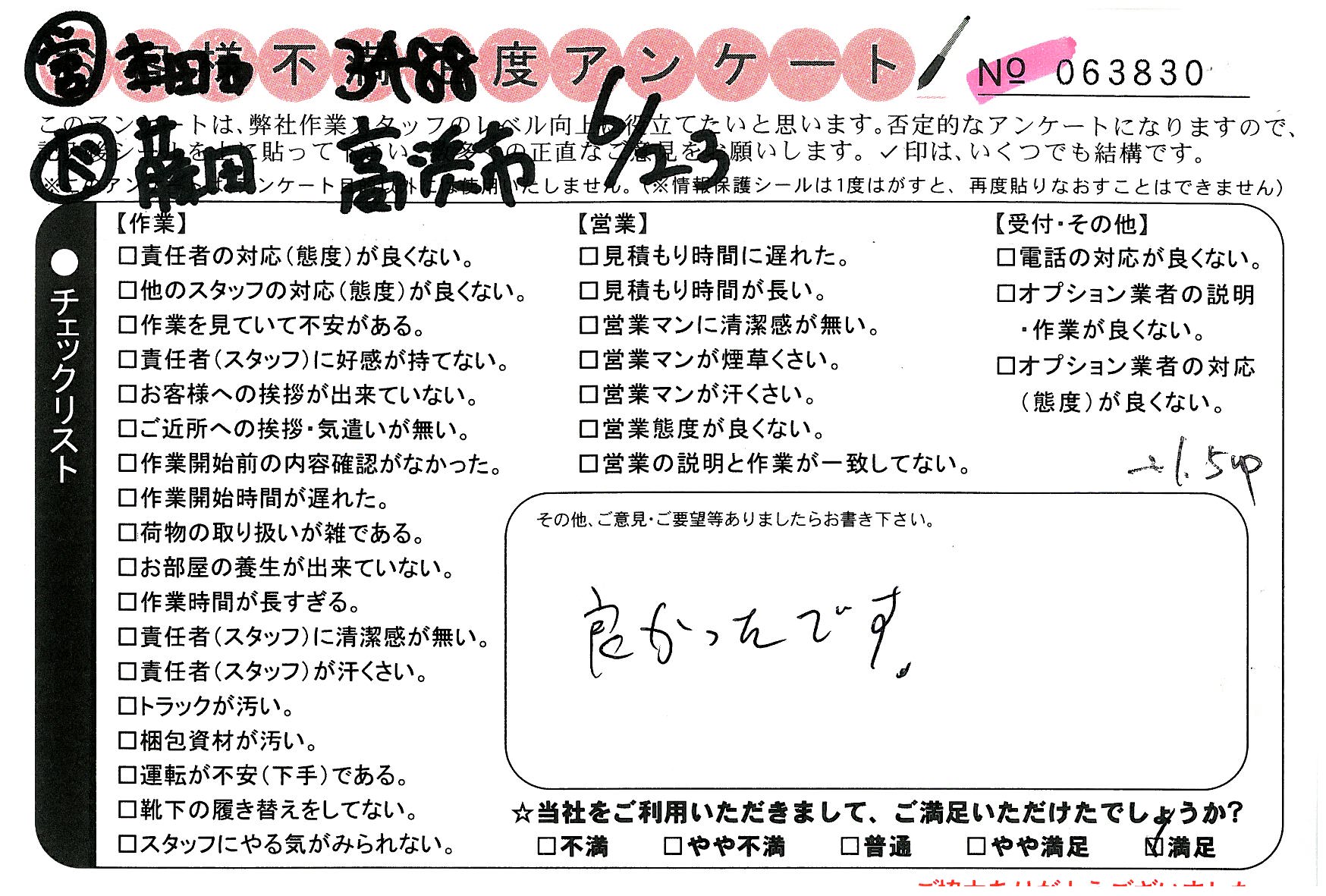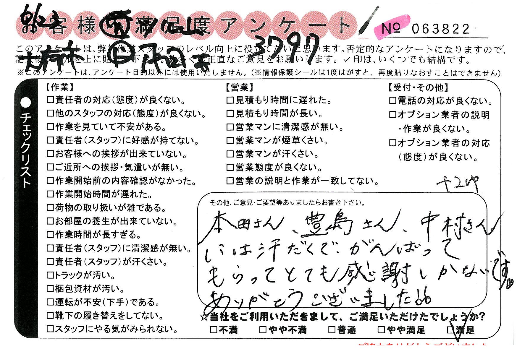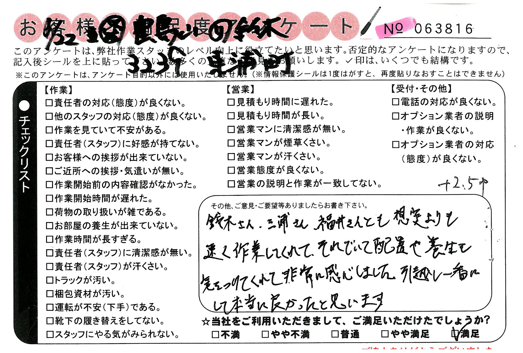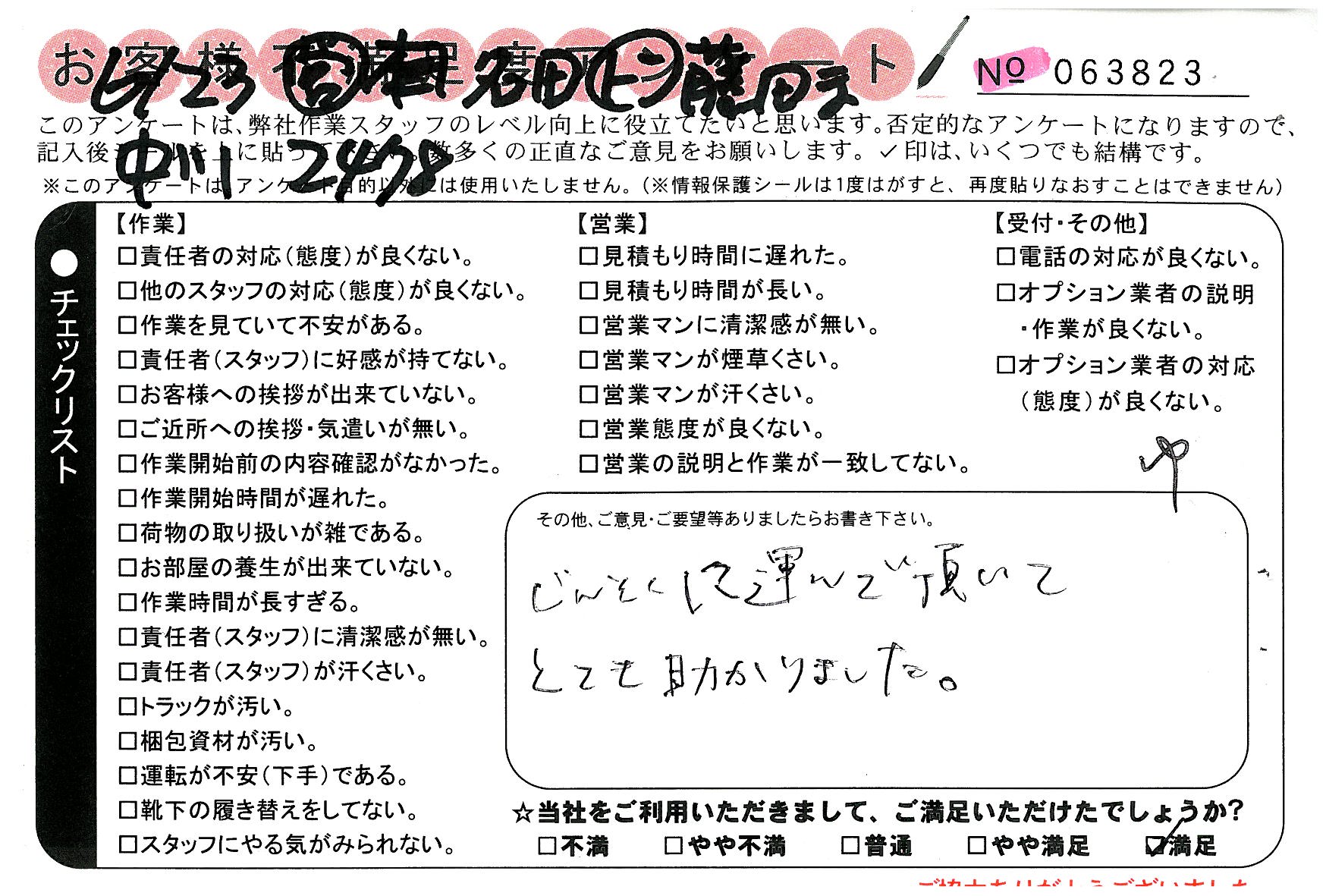引越一番でお引越しをしていただいたお客様のうち、コメントいただいたアンケートを全て掲載しています。