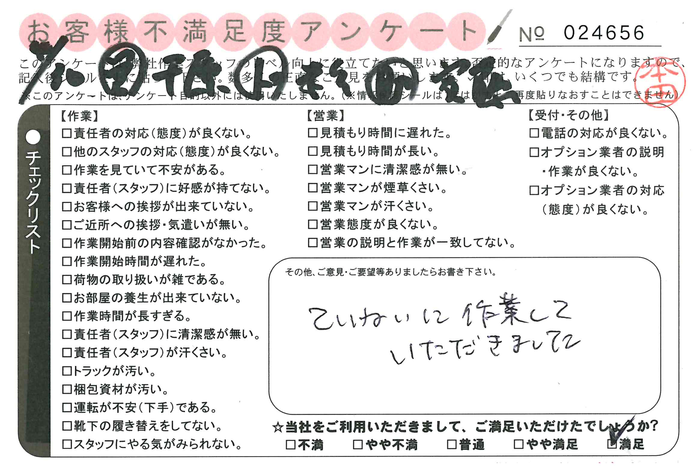 引越一番でお引越しをしていただいたお客様のうち、コメントいただいたアンケートを全て掲載しています。