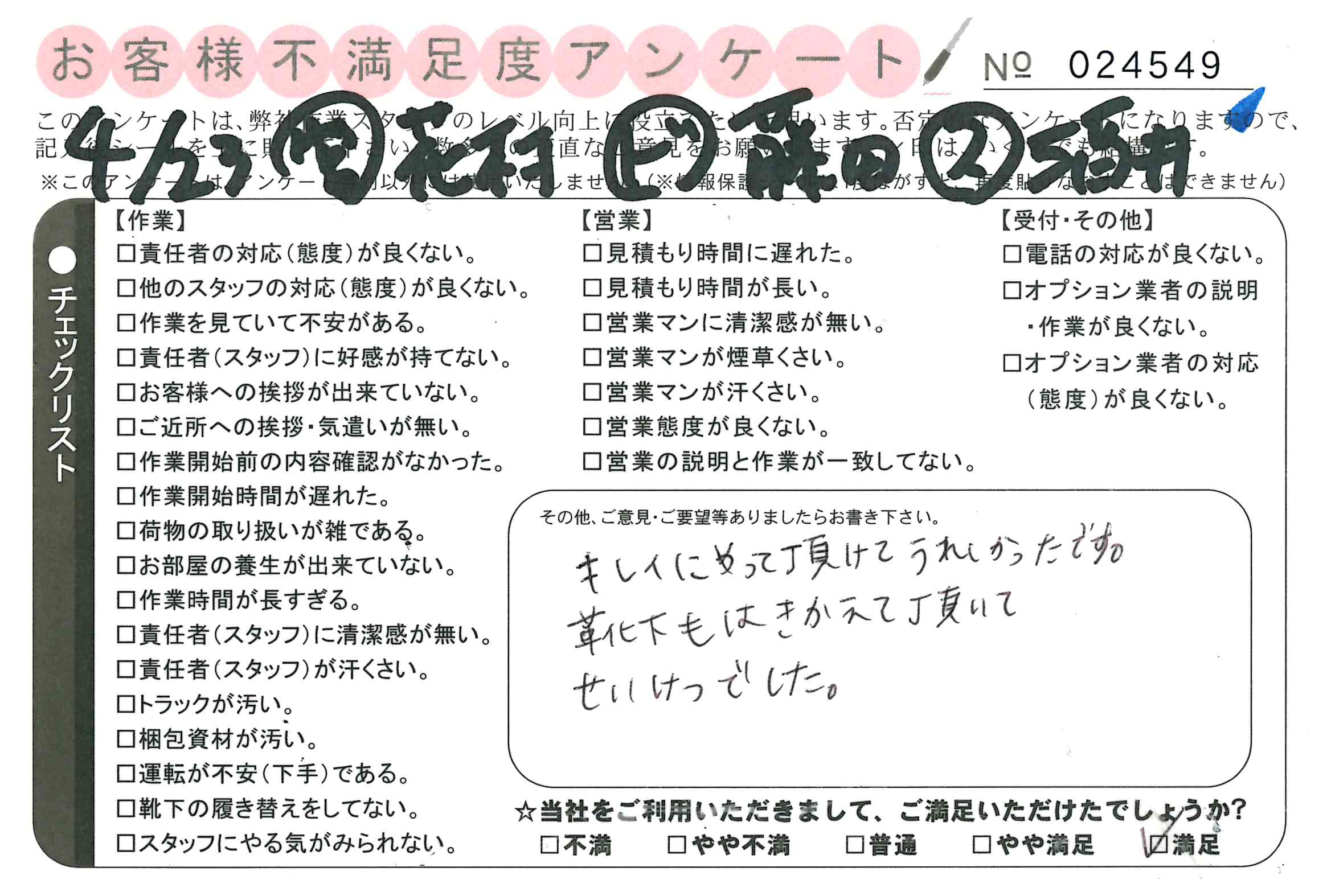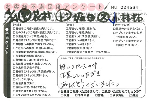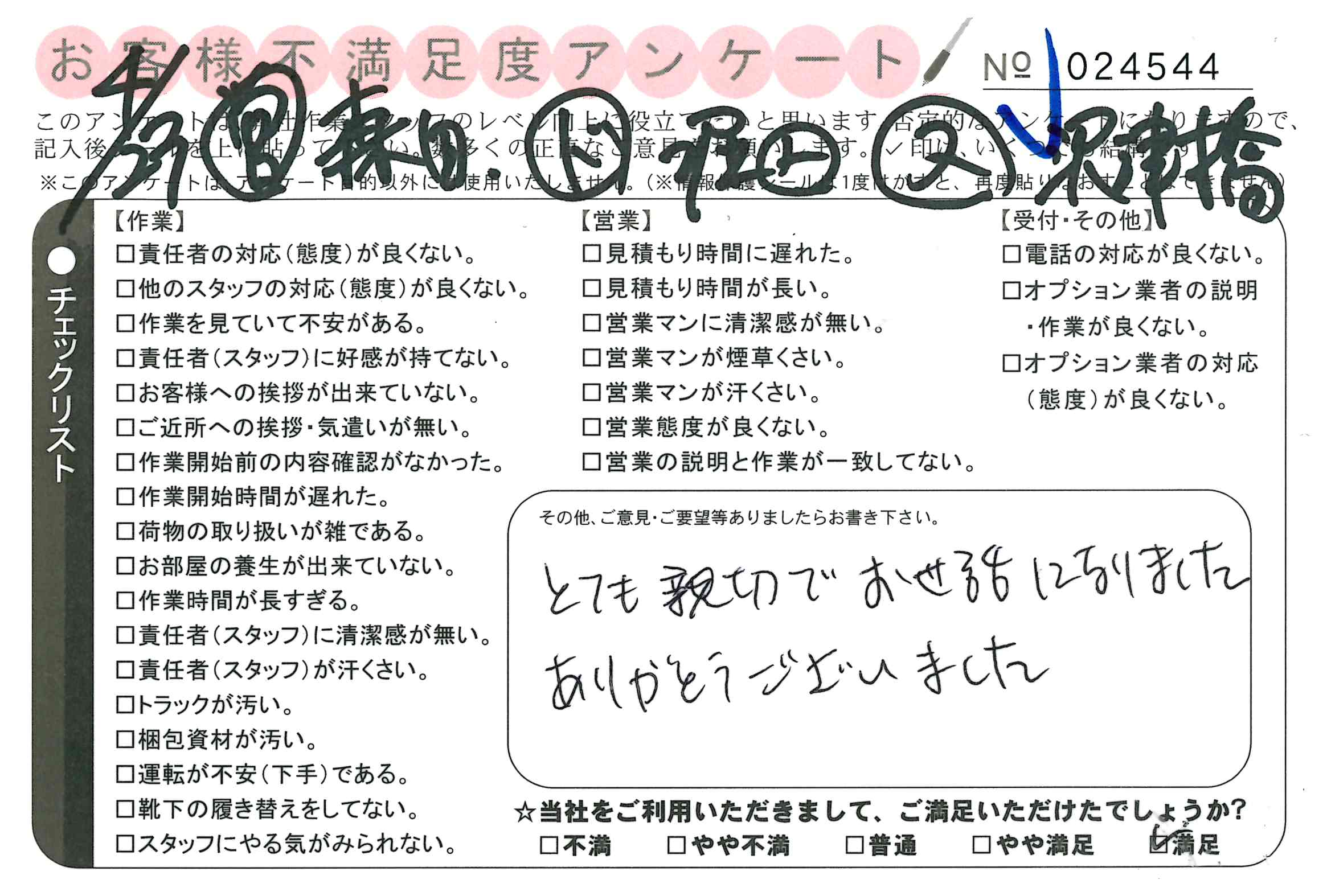 引越一番でお引越しをしていただいたお客様のうち、コメントいただいたアンケートを全て掲載しています。