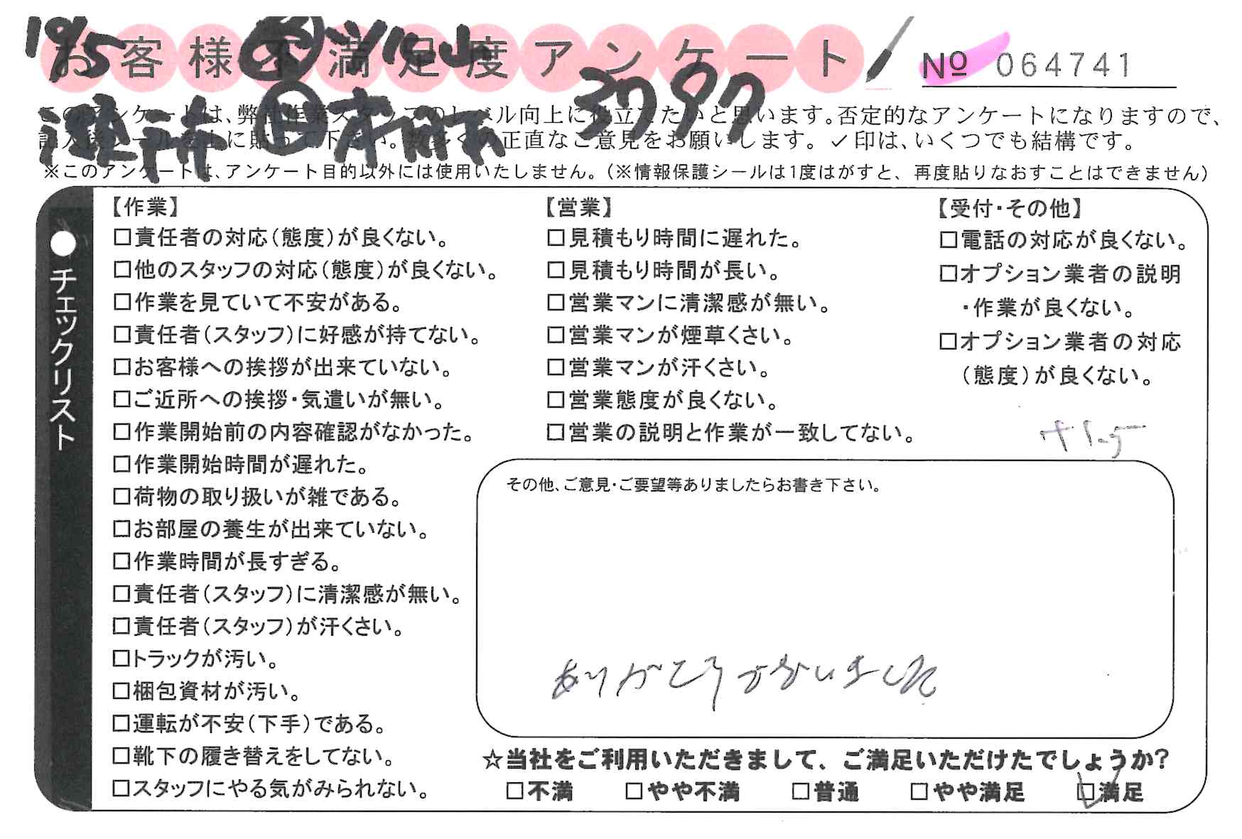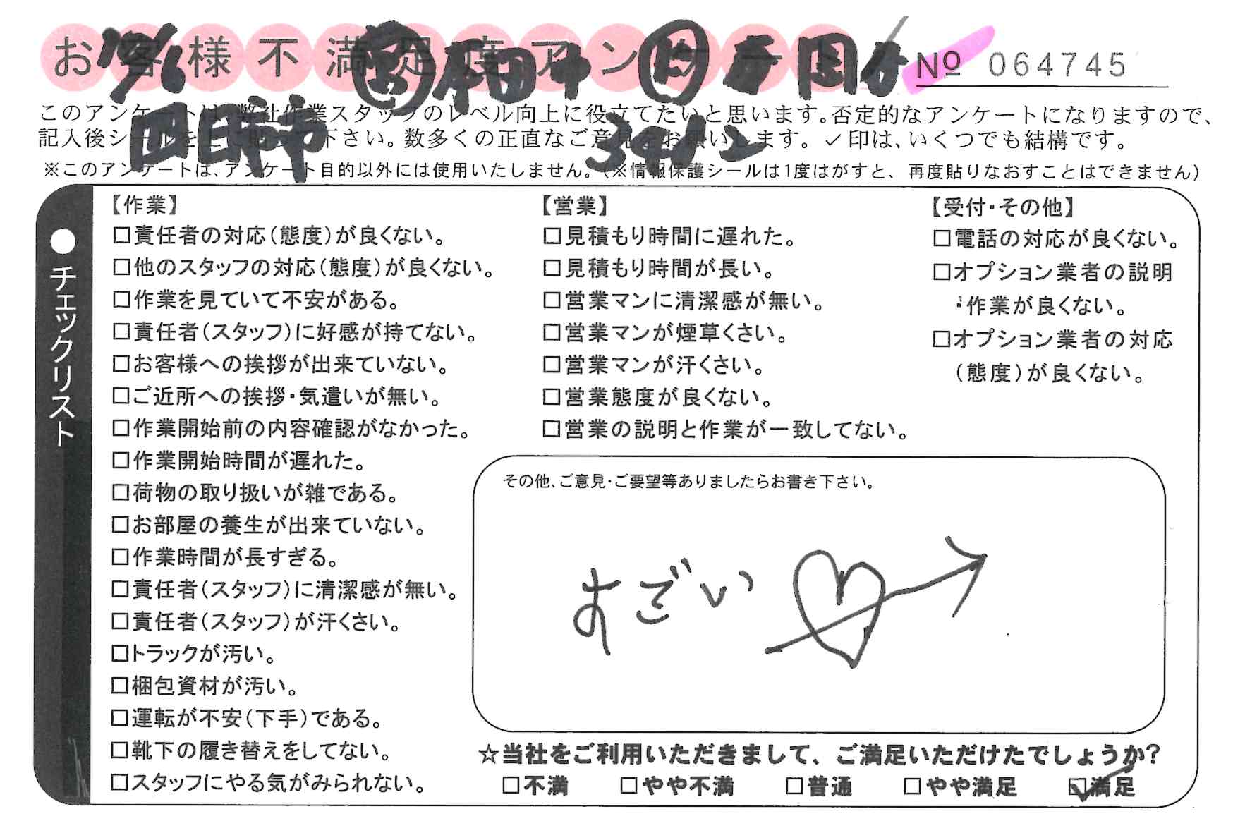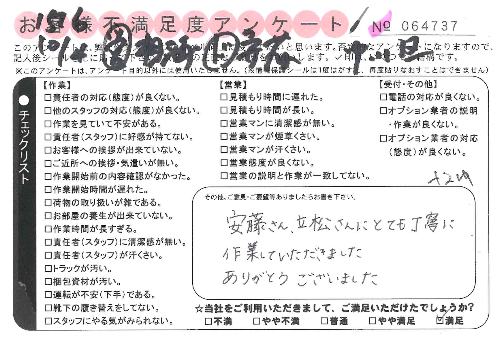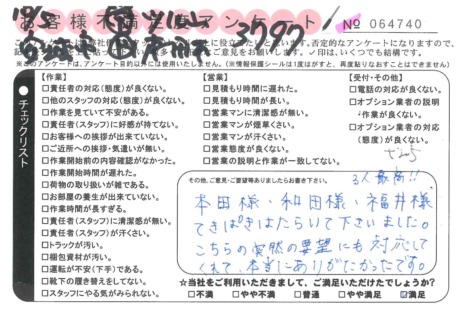 引越一番でお引越しをしていただいたお客様のうち、コメントいただいたアンケートを全て掲載しています。