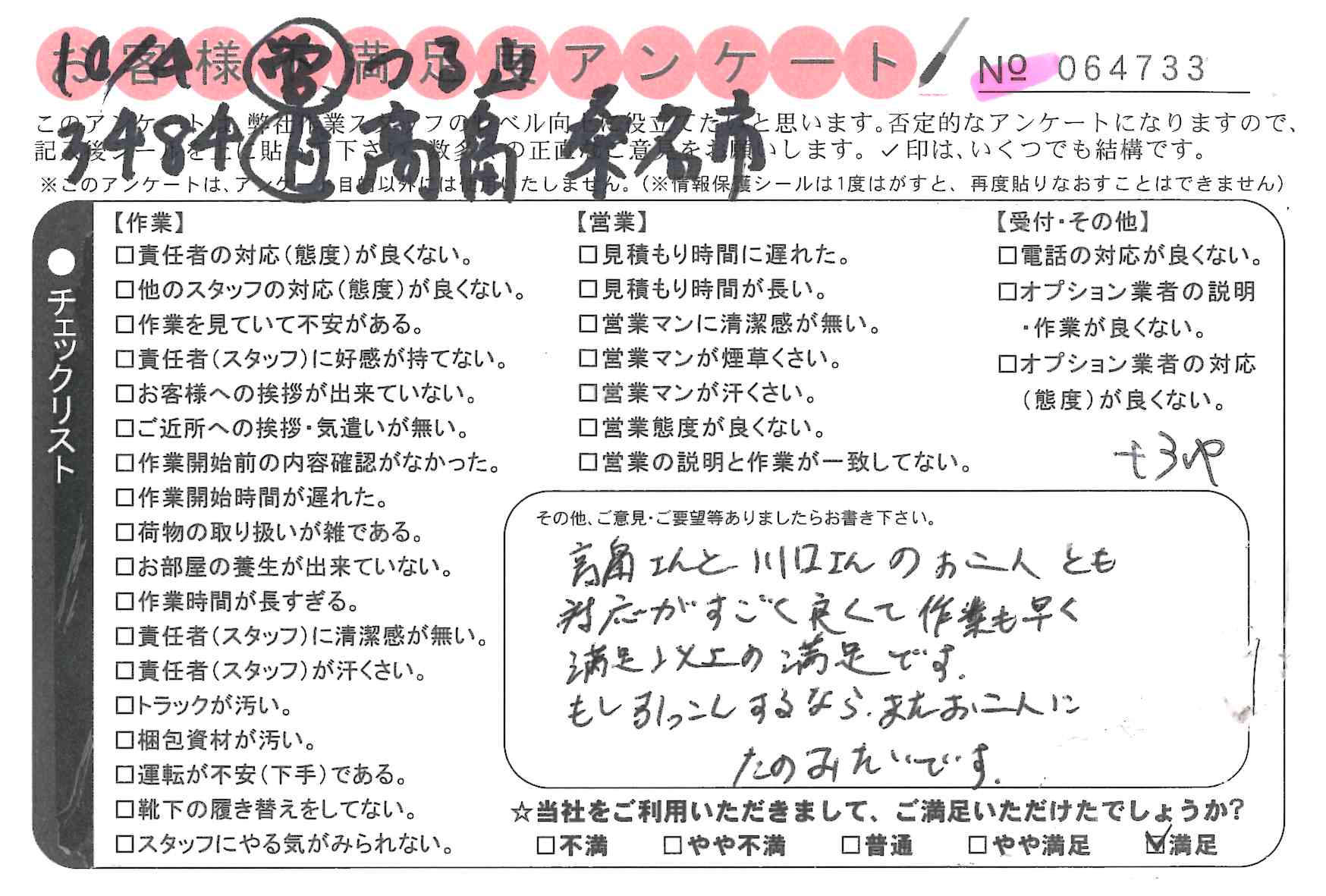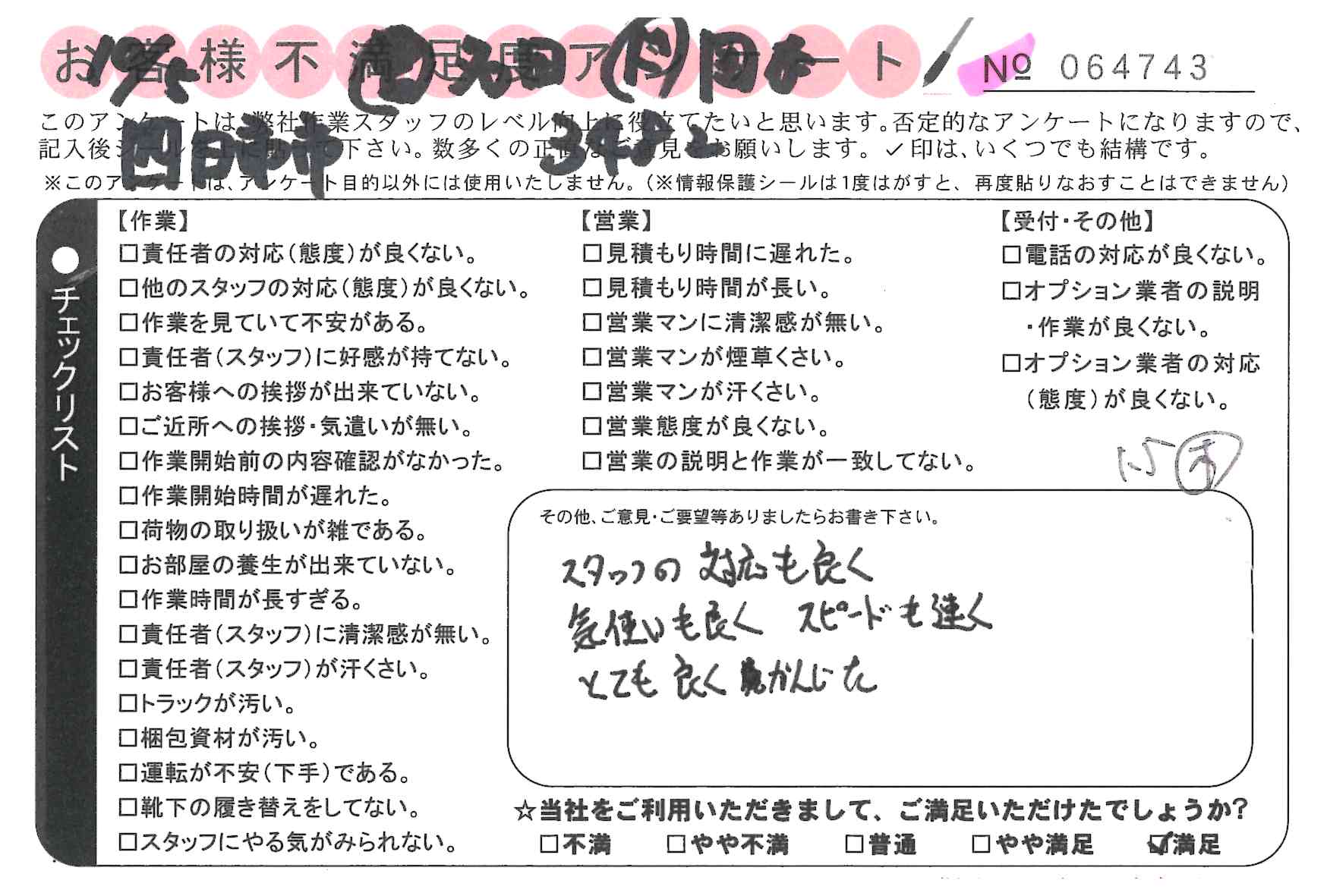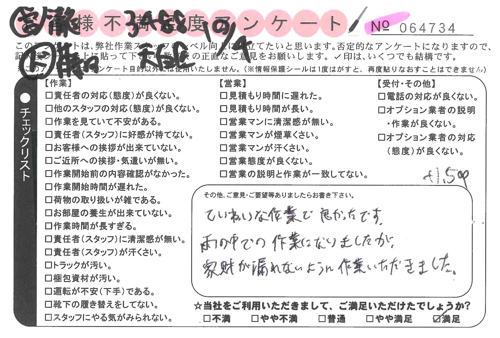 引越一番でお引越しをしていただいたお客様のうち、コメントいただいたアンケートを全て掲載しています。