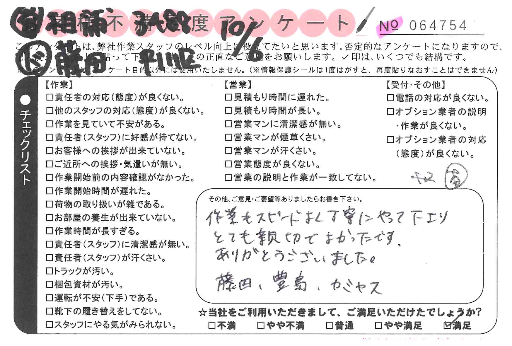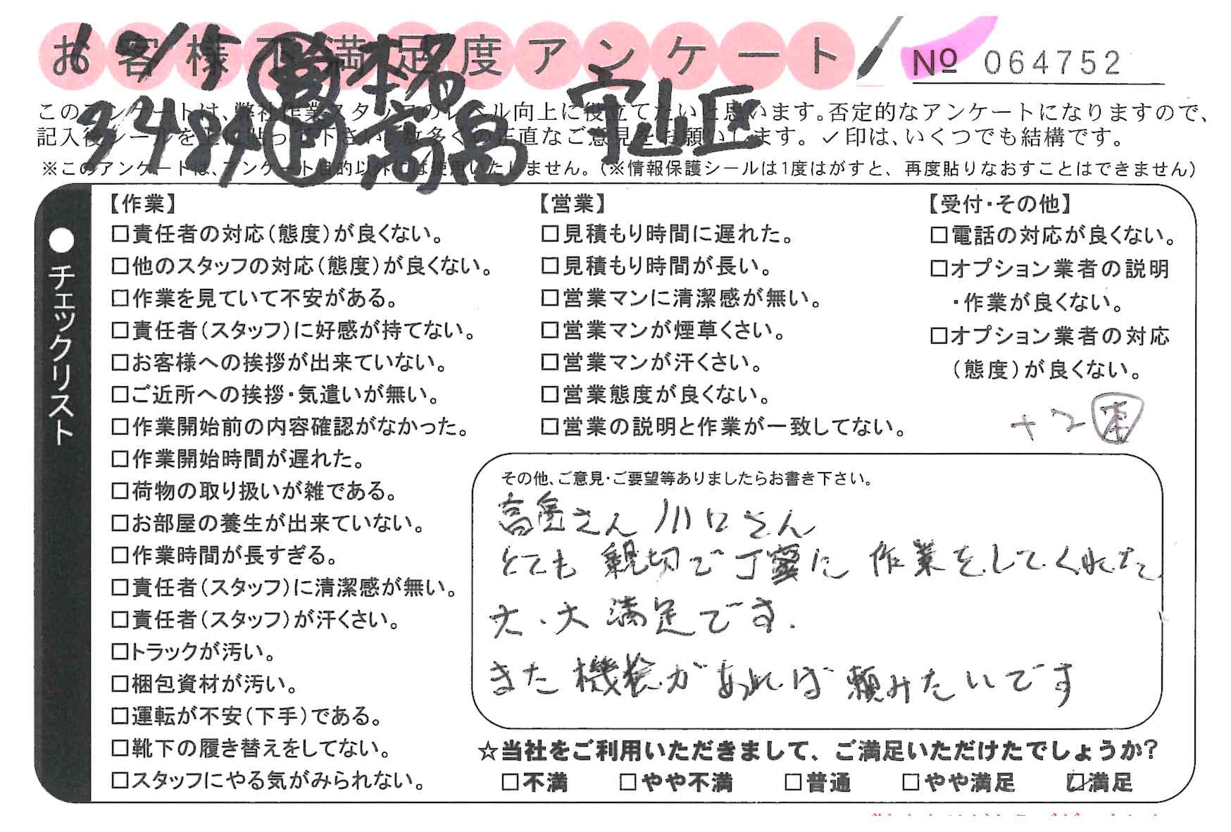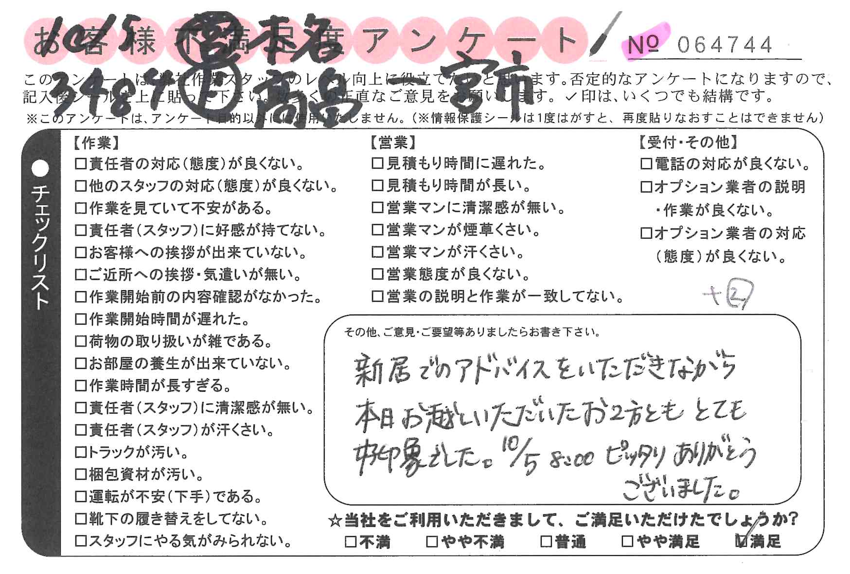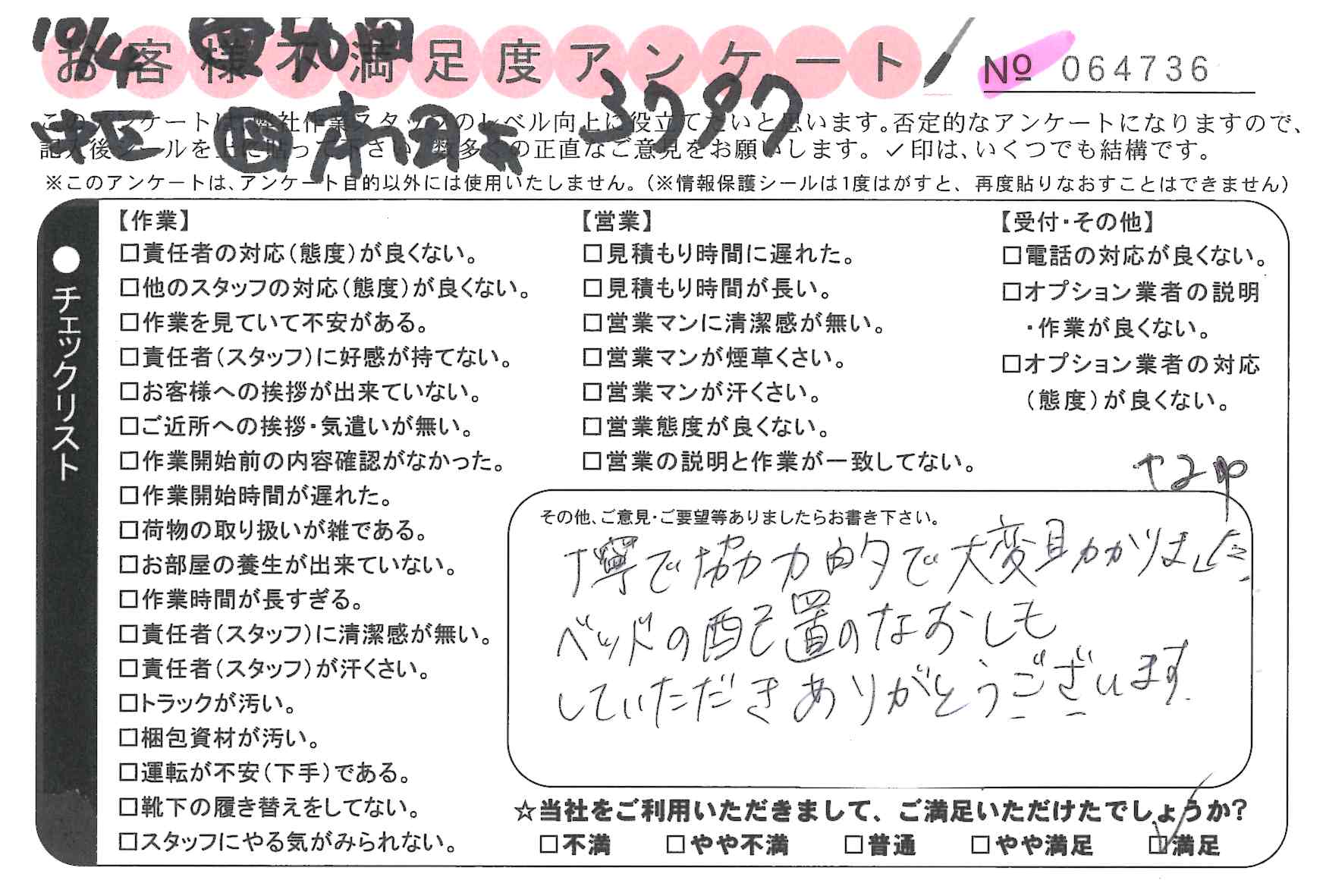 引越一番でお引越しをしていただいたお客様のうち、コメントいただいたアンケートを全て掲載しています。