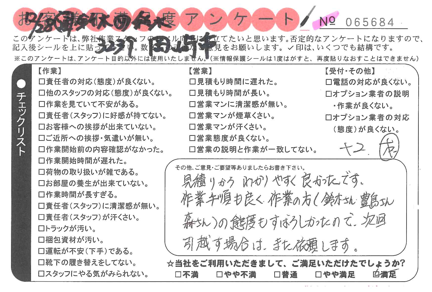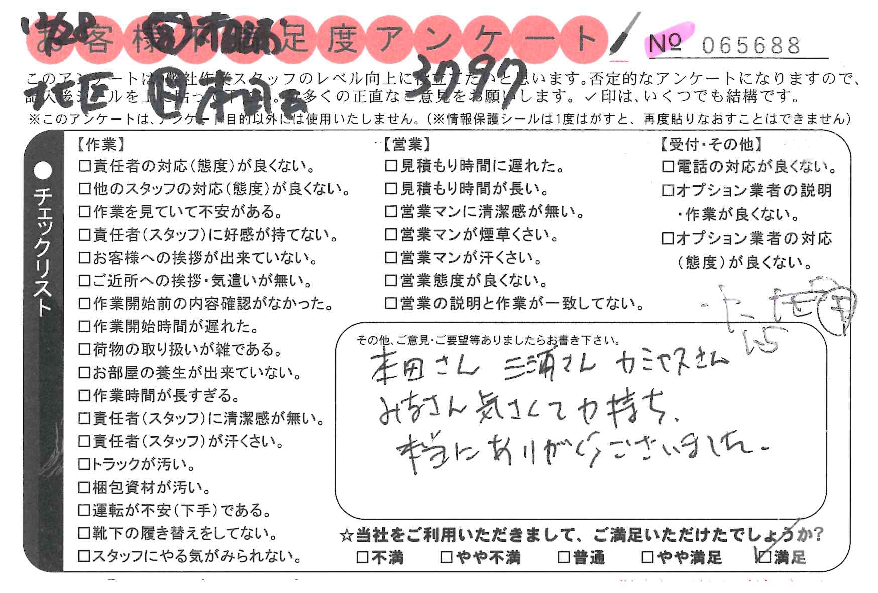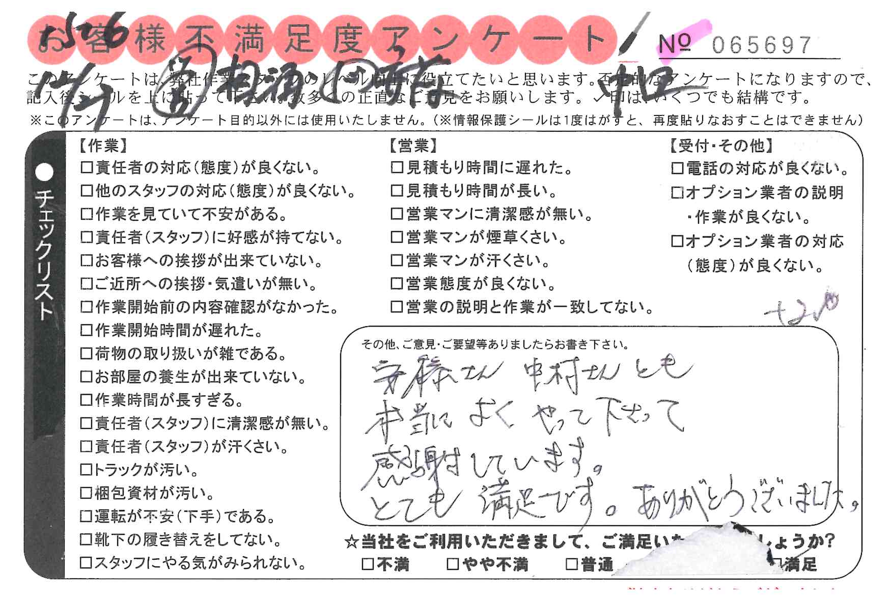 引越一番でお引越しをしていただいたお客様のうち、コメントいただいたアンケートを全て掲載しています。