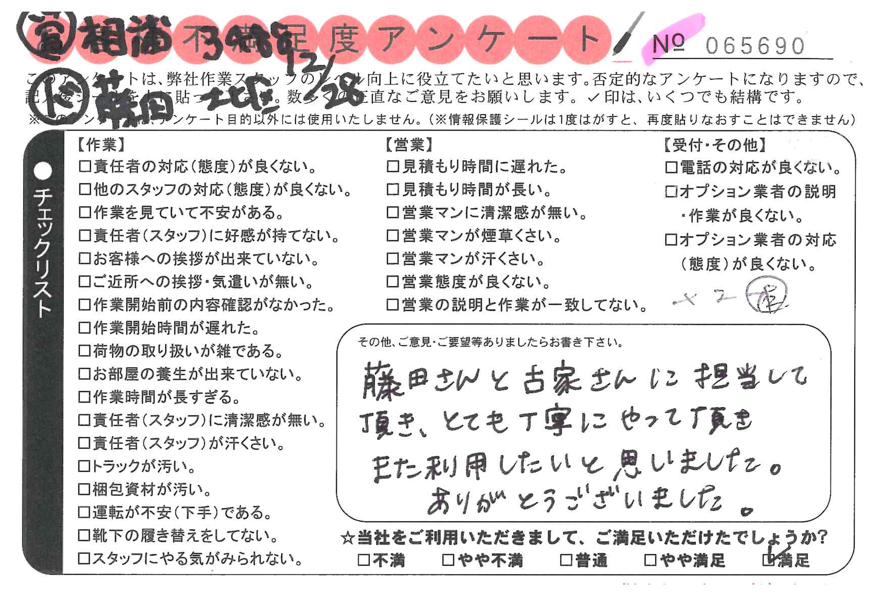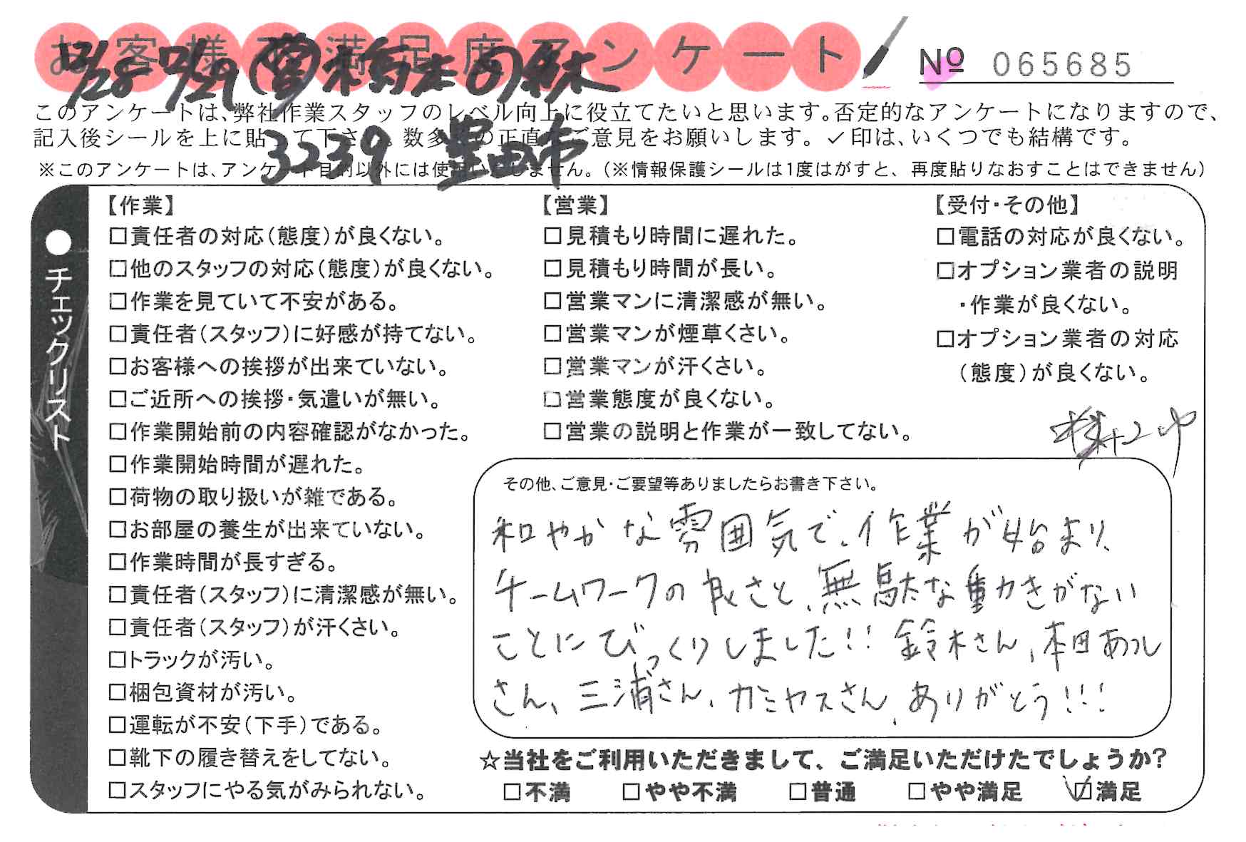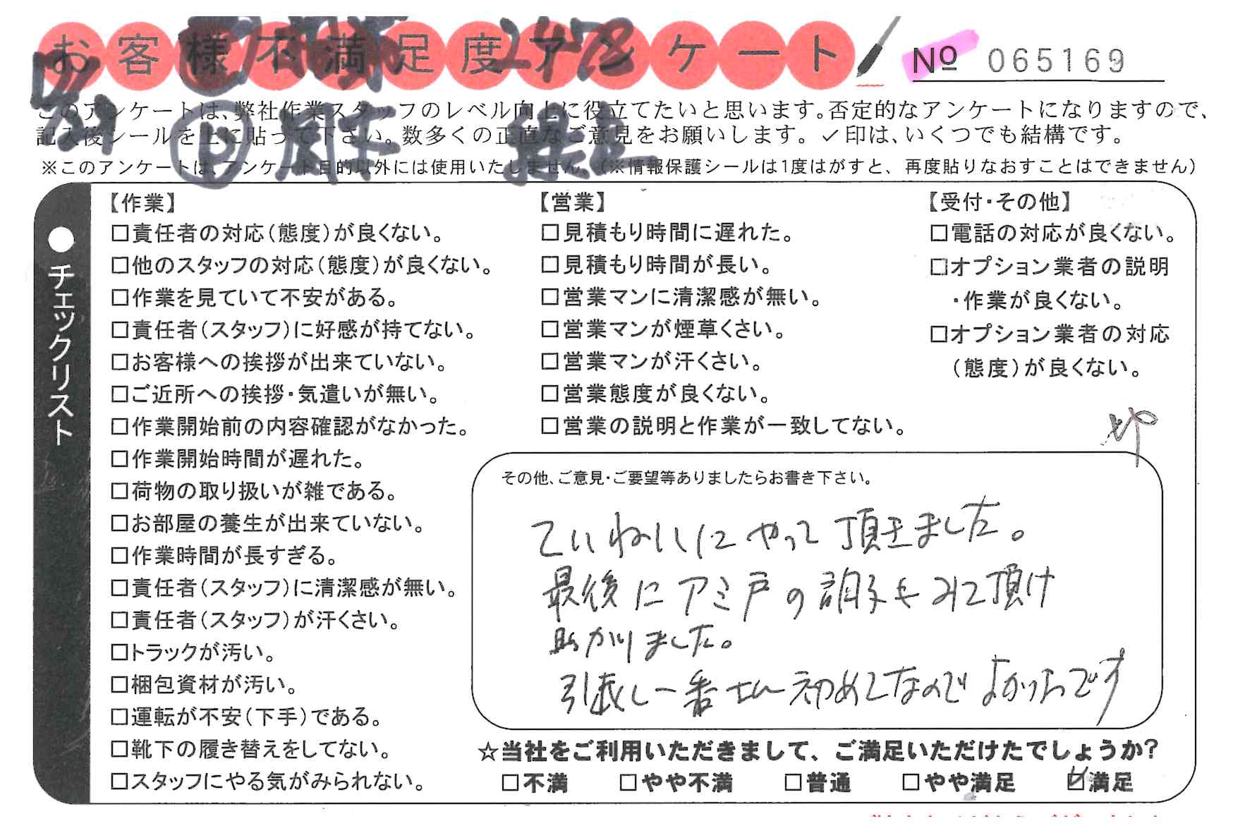 引越一番でお引越しをしていただいたお客様のうち、コメントいただいたアンケートを全て掲載しています。