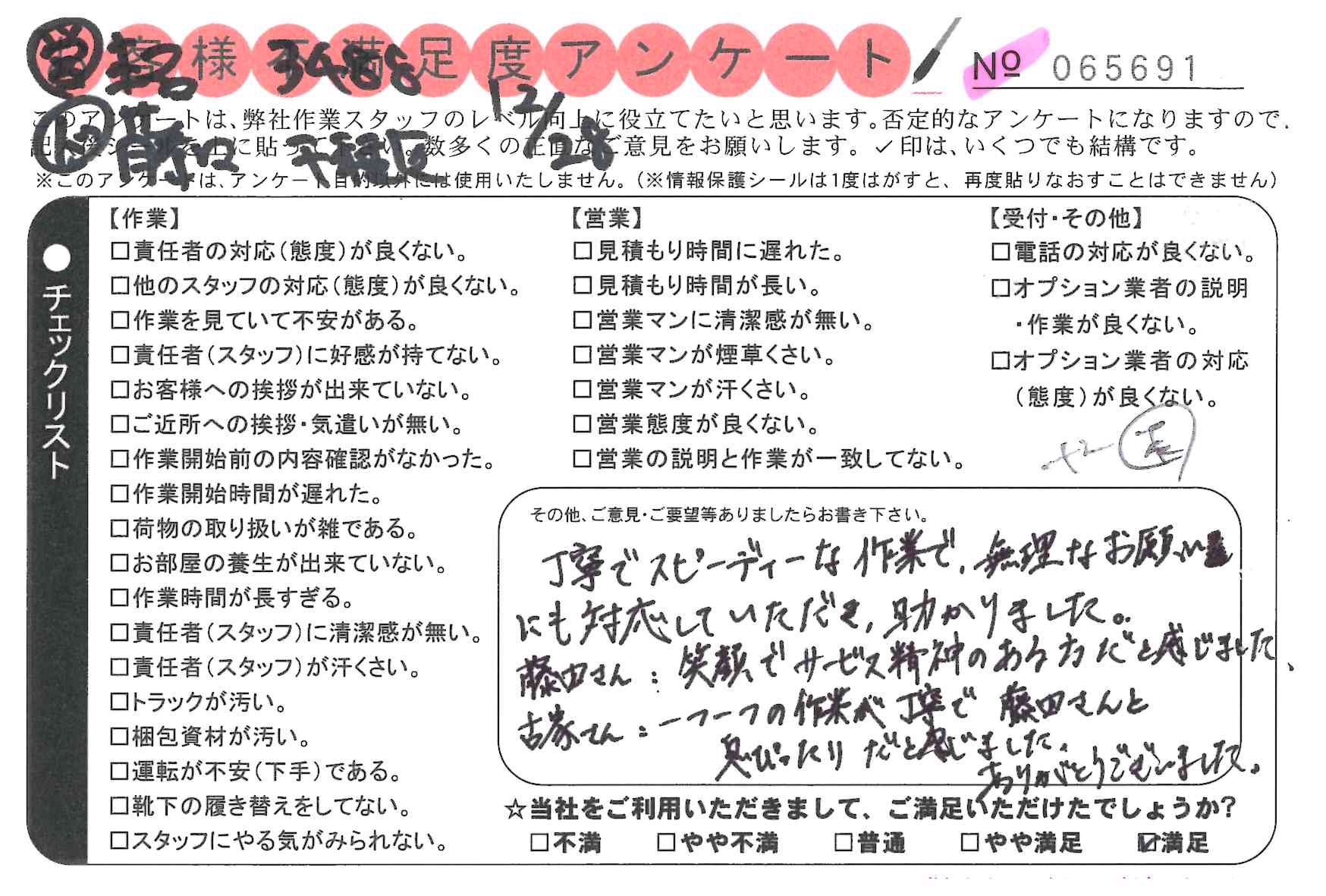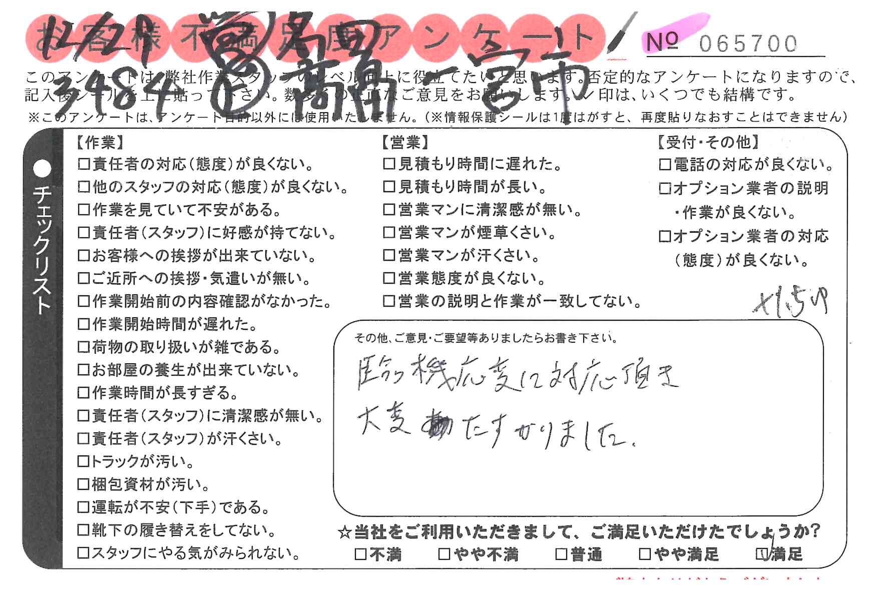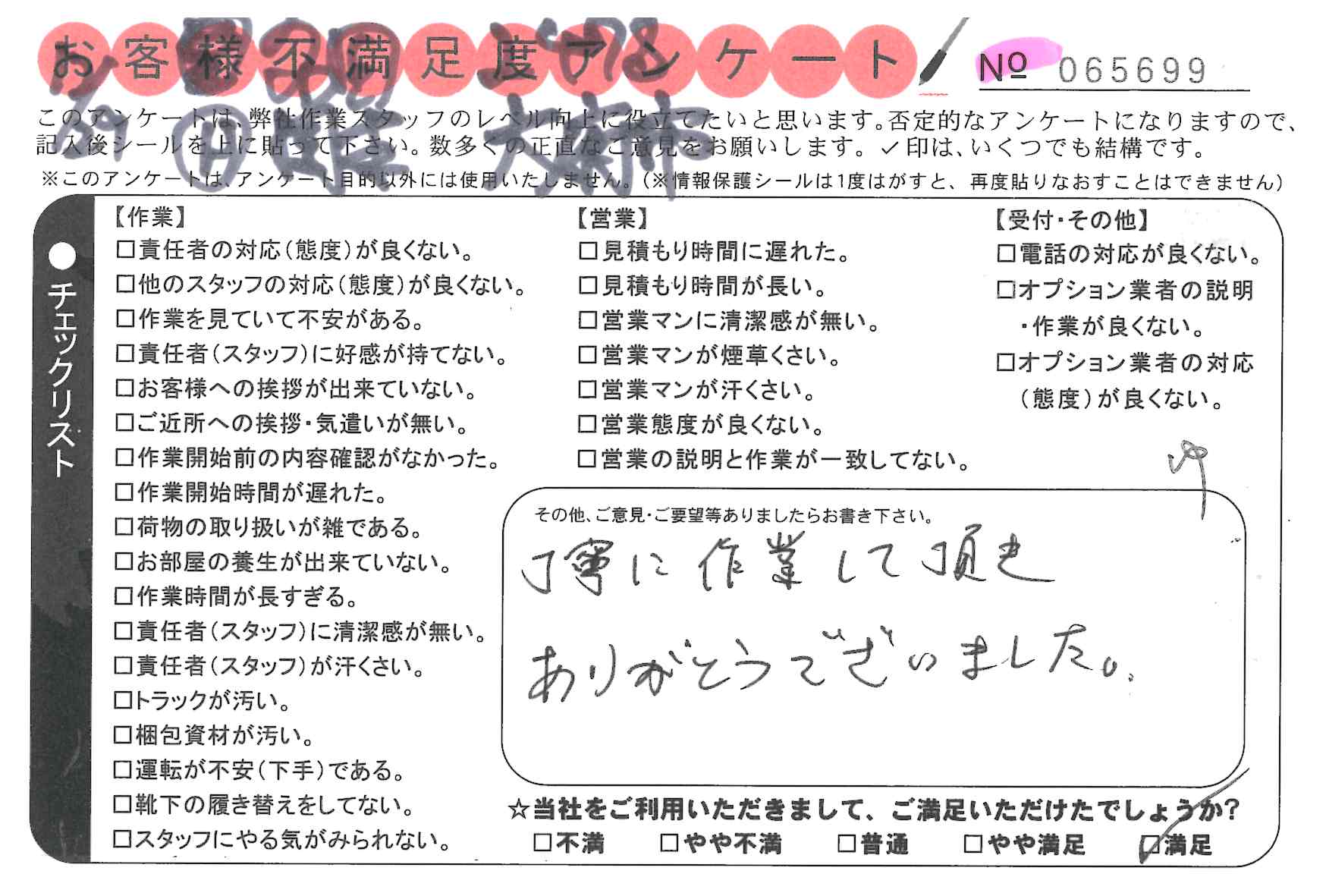 不満足度アンケートを行っている引越一番では、不評なアンケートも、好評なアンケートも全て掲載しています。