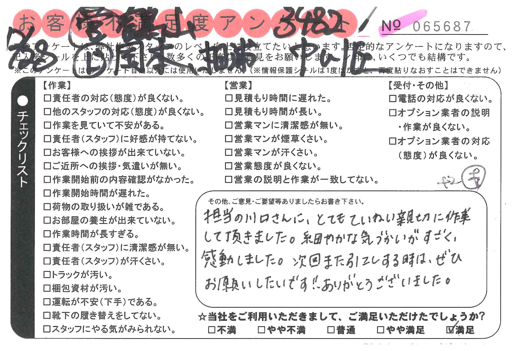 * 担当の川口さんに、とてもていねい親切に作業して頂きました。