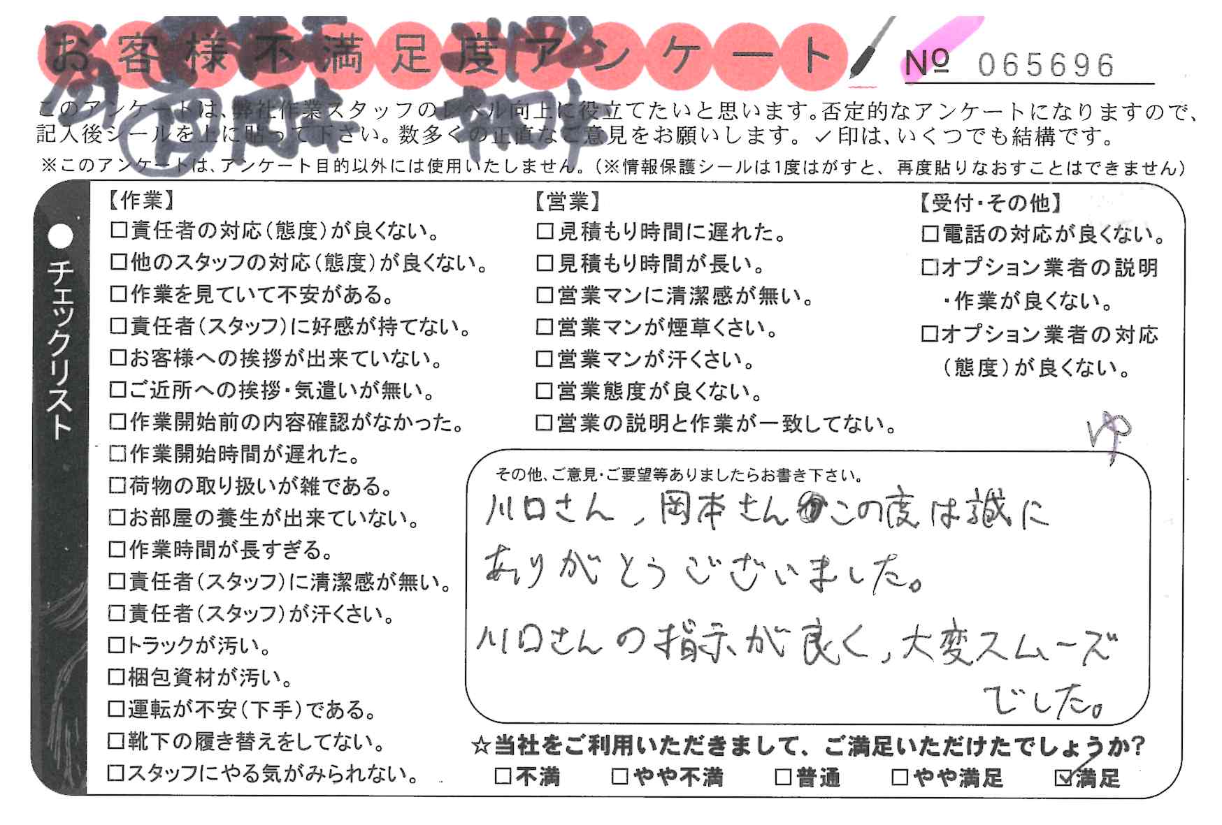 川口さんの指示が良く、大変スムーズでした。