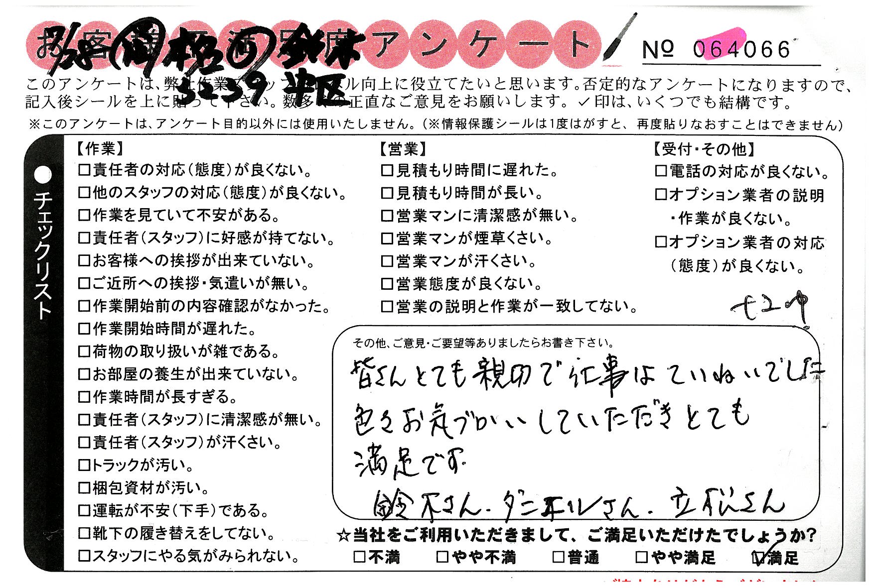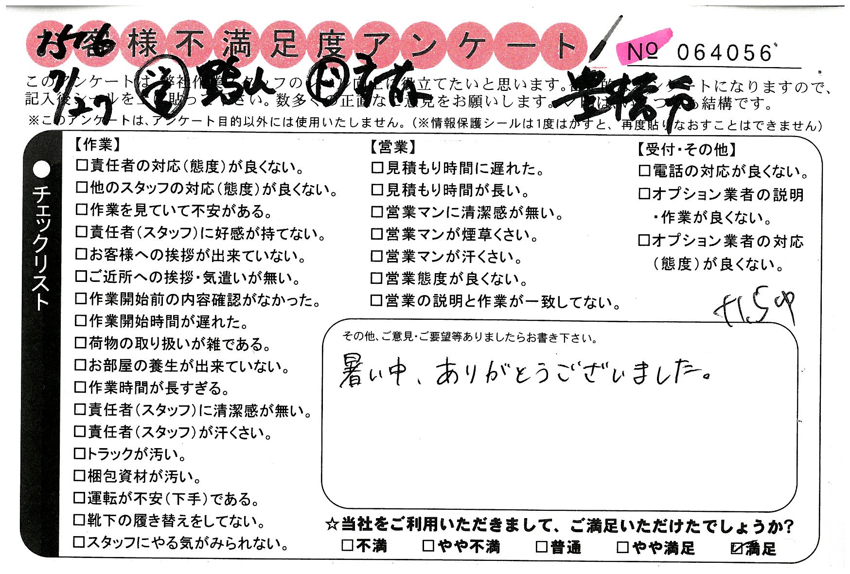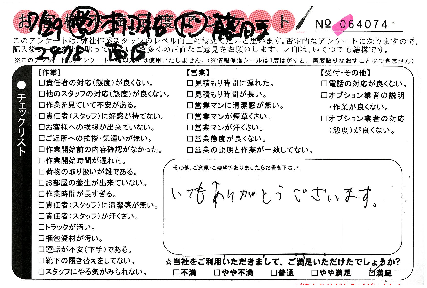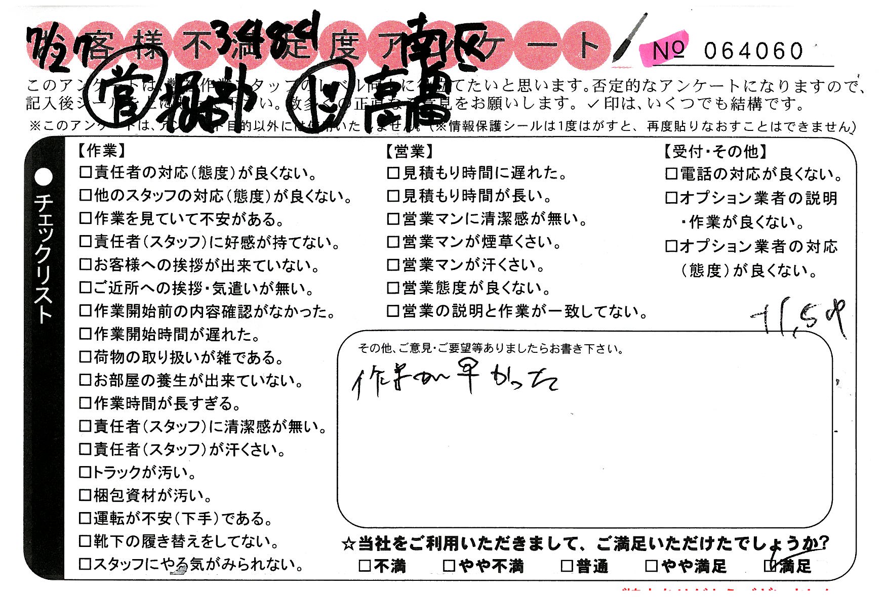 引越一番でお引越しをしていただいたお客様のうち、コメントいただいたアンケートを全て掲載しています。