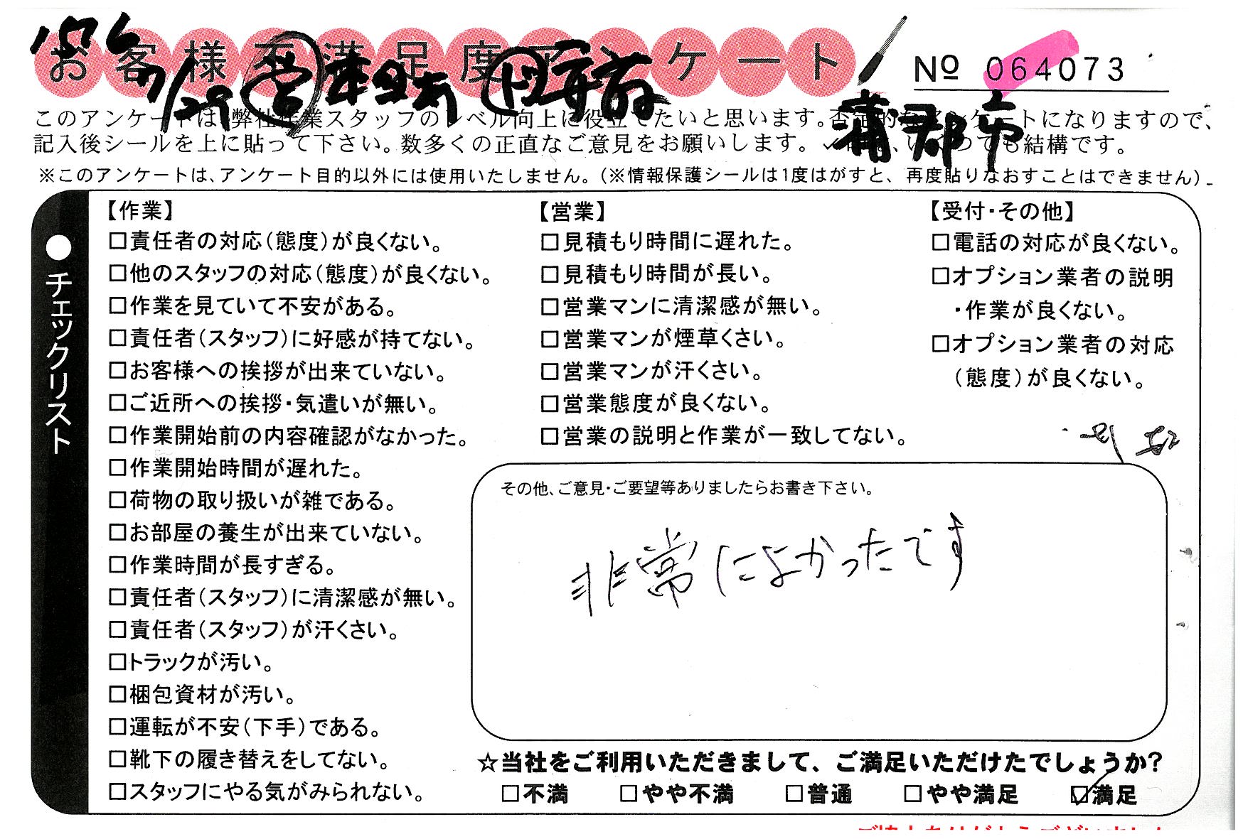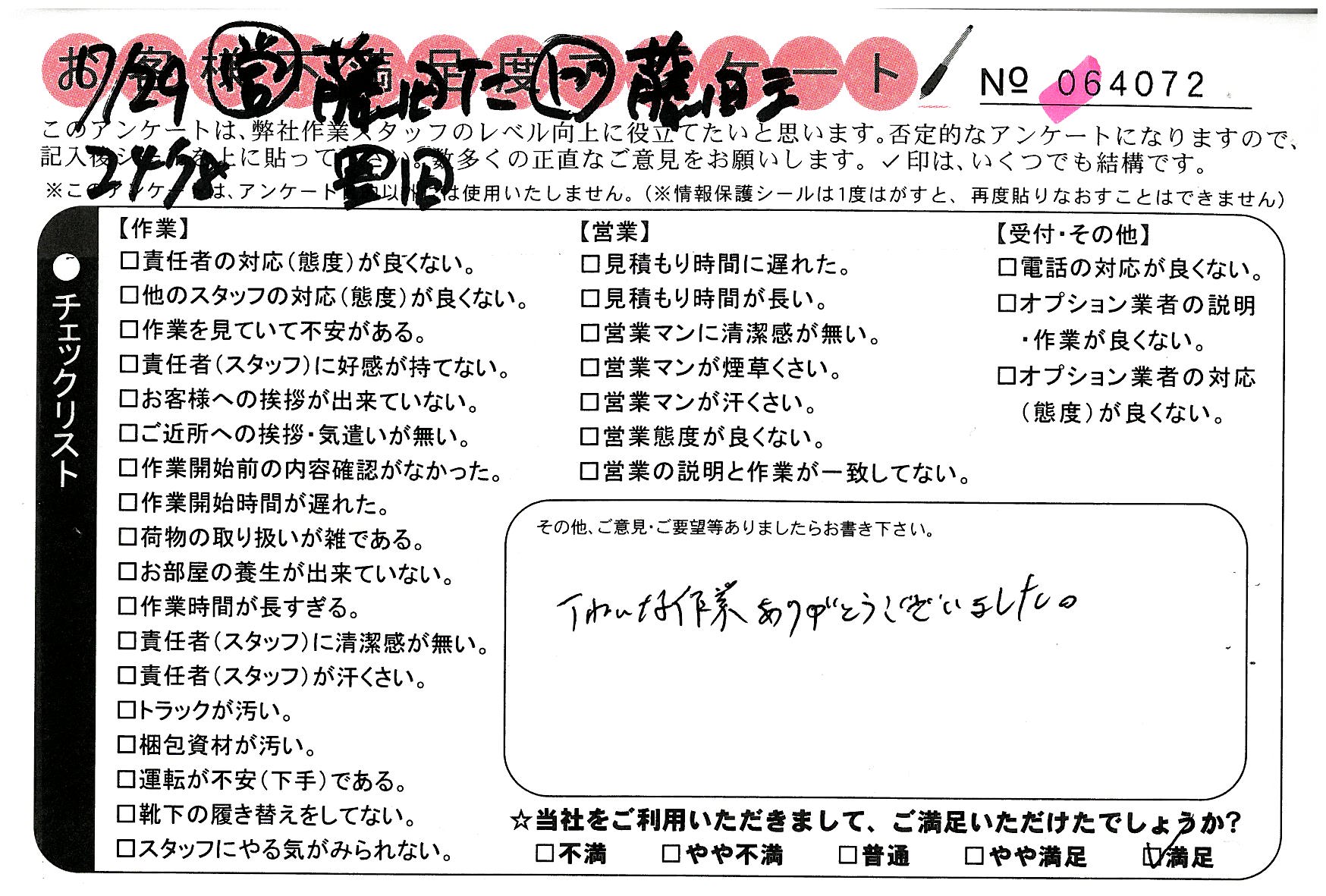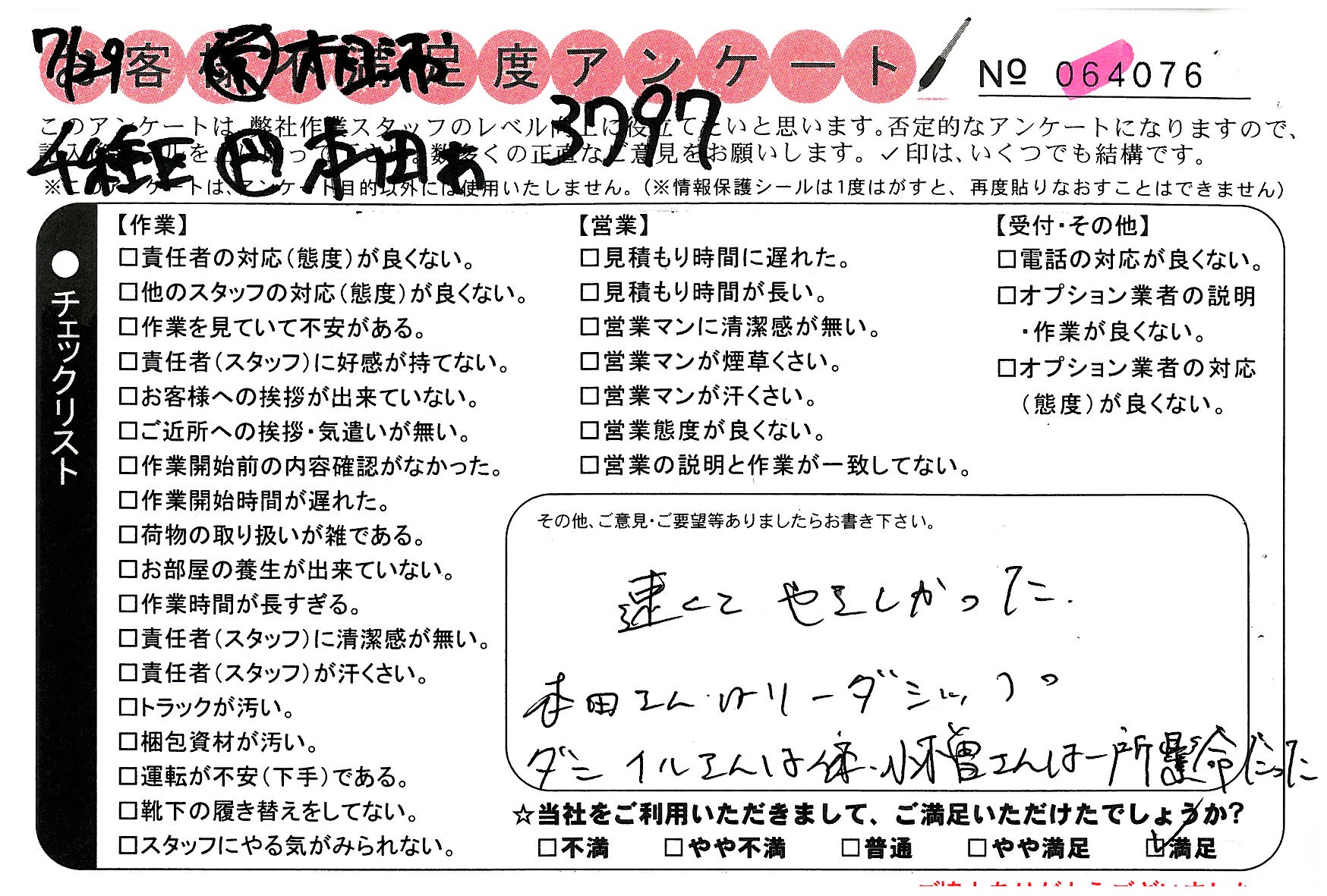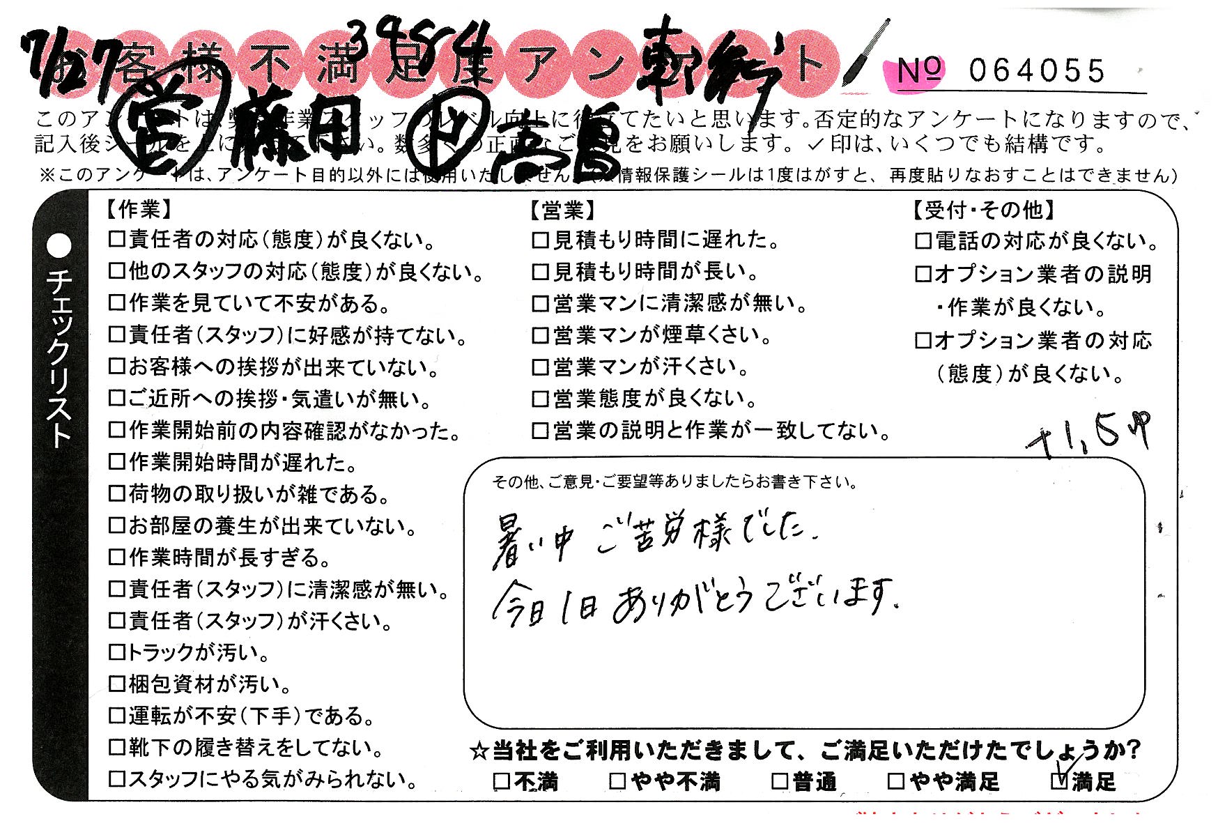 引越一番でお引越しをしていただいたお客様のうち、コメントいただいたアンケートを全て掲載しています。