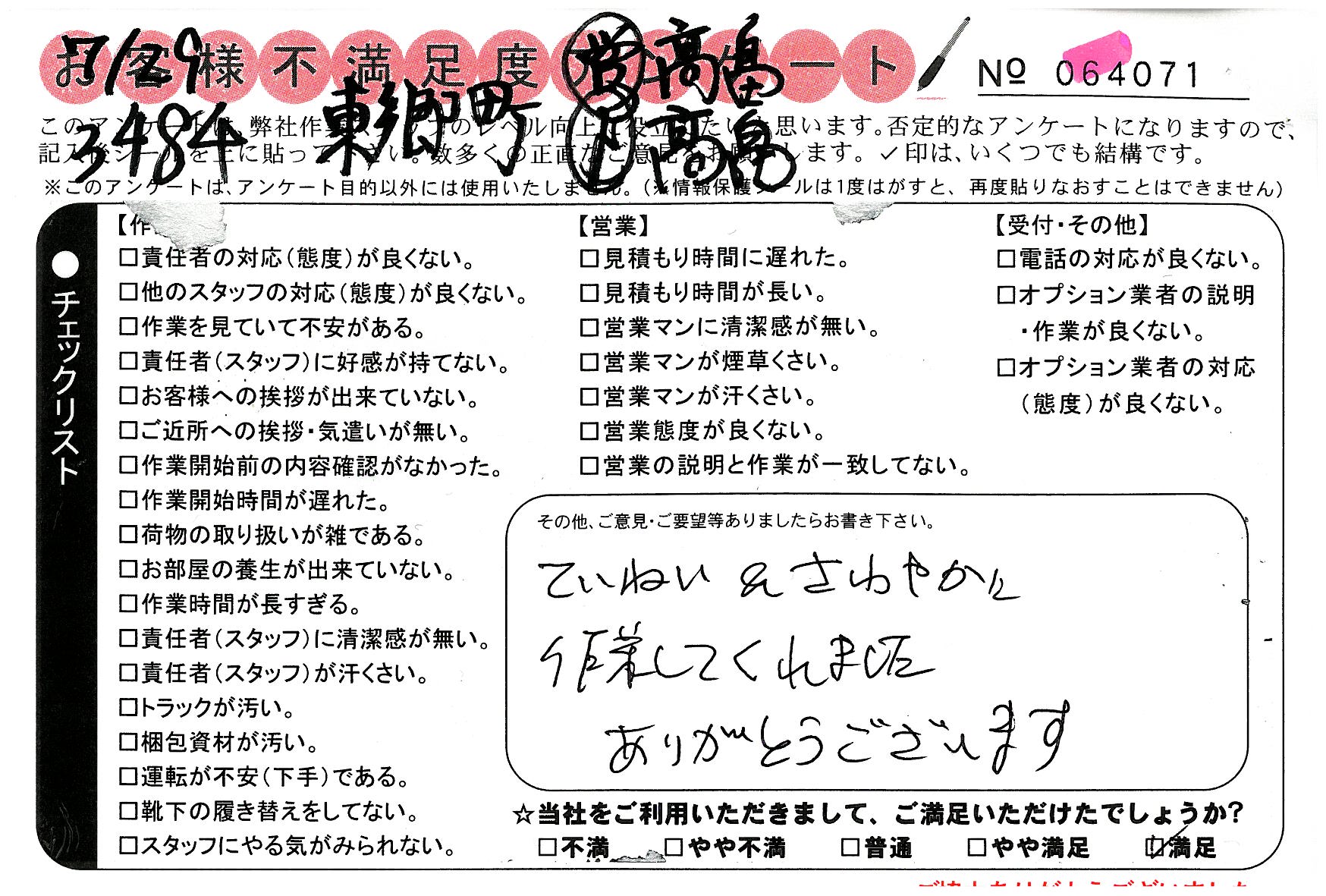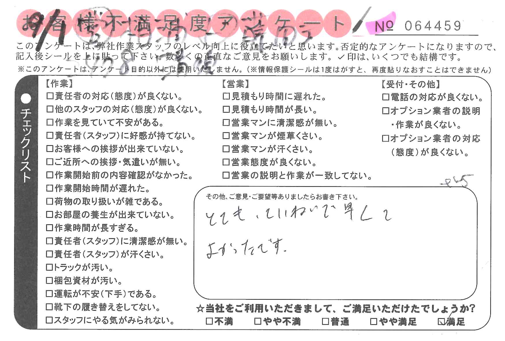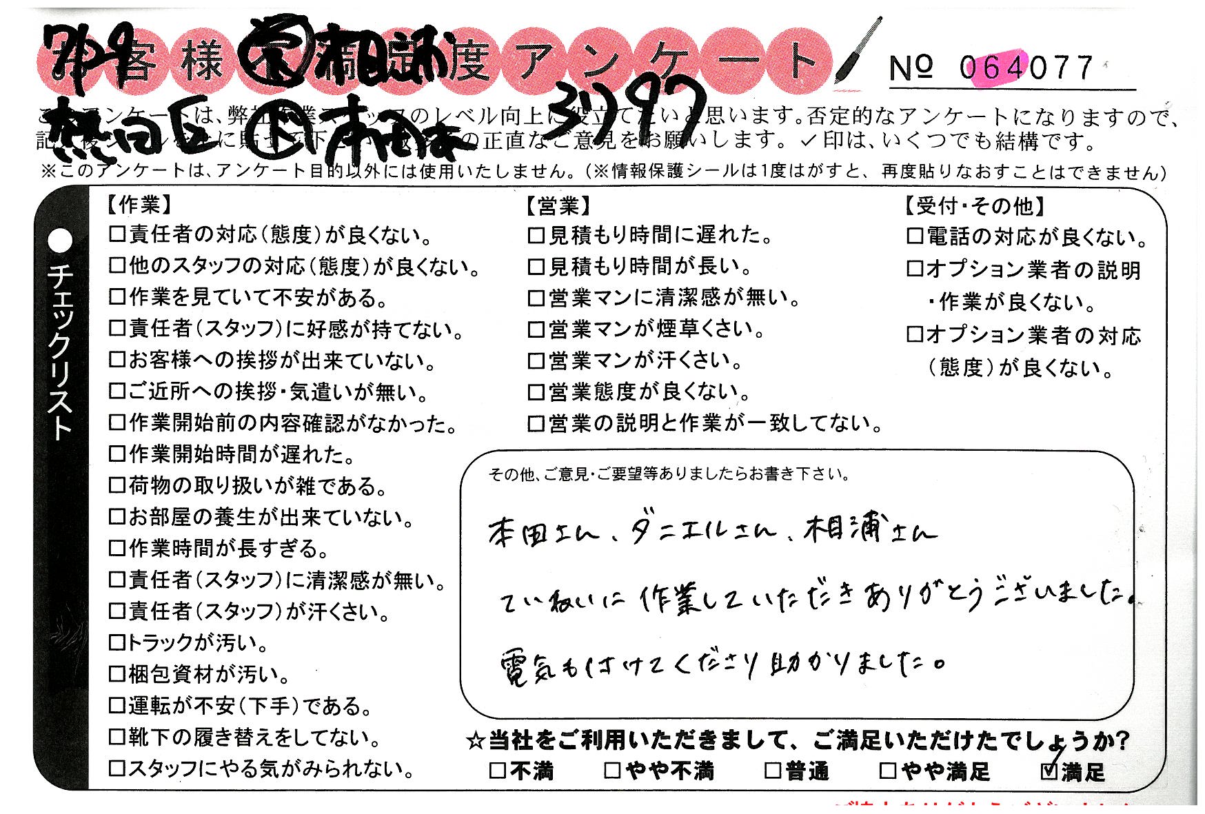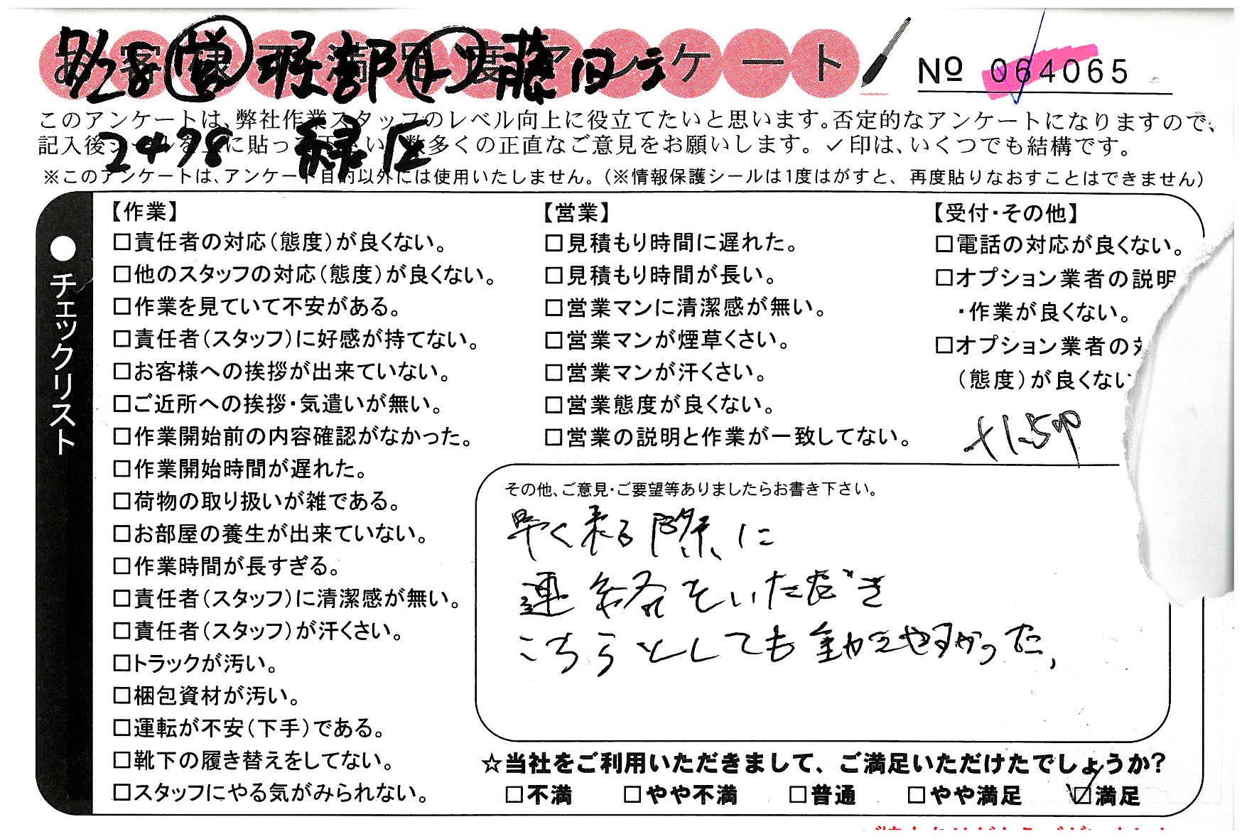 引越一番でお引越しをしていただいたお客様のうち、コメントいただいたアンケートを全て掲載しています。