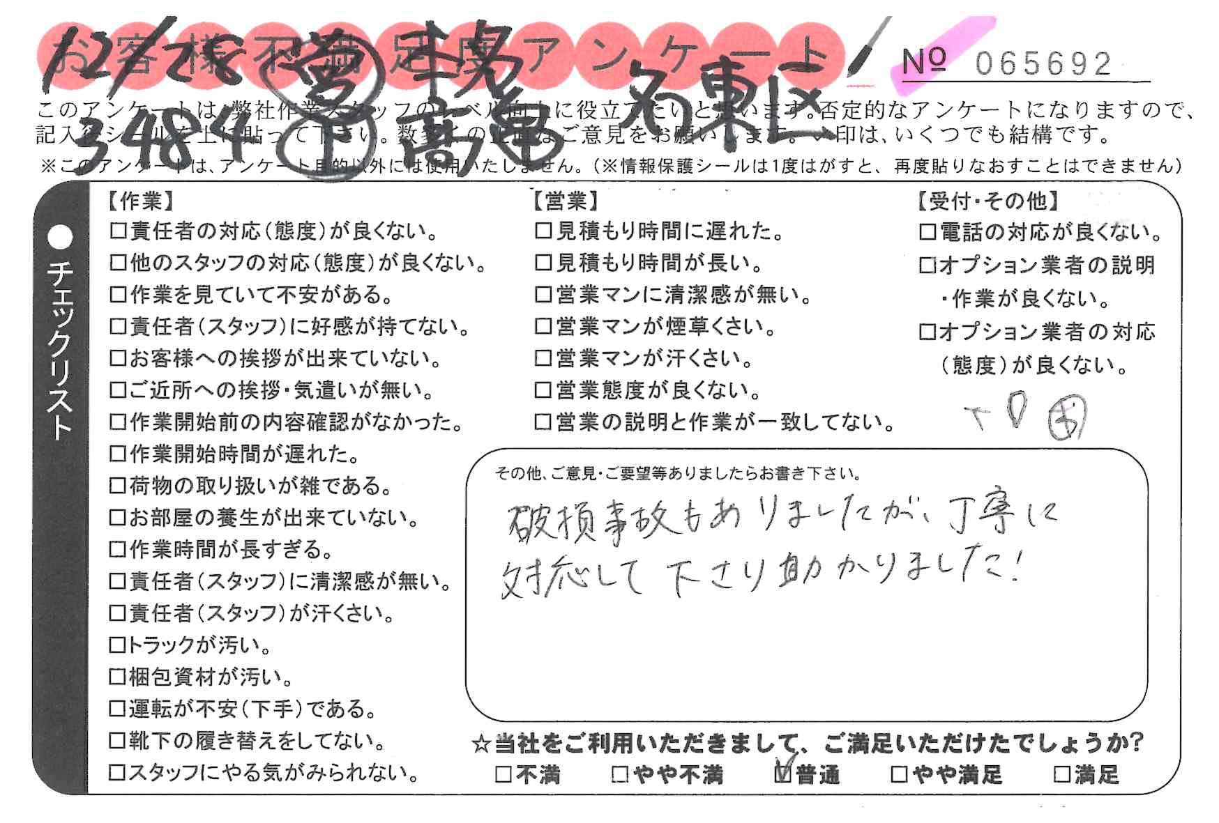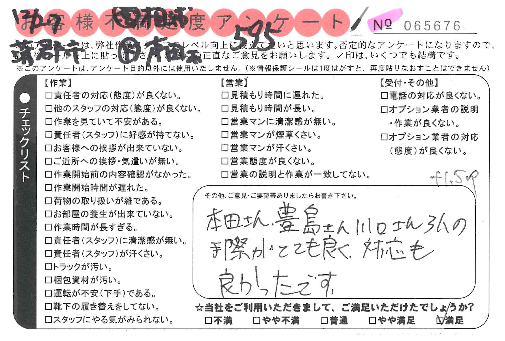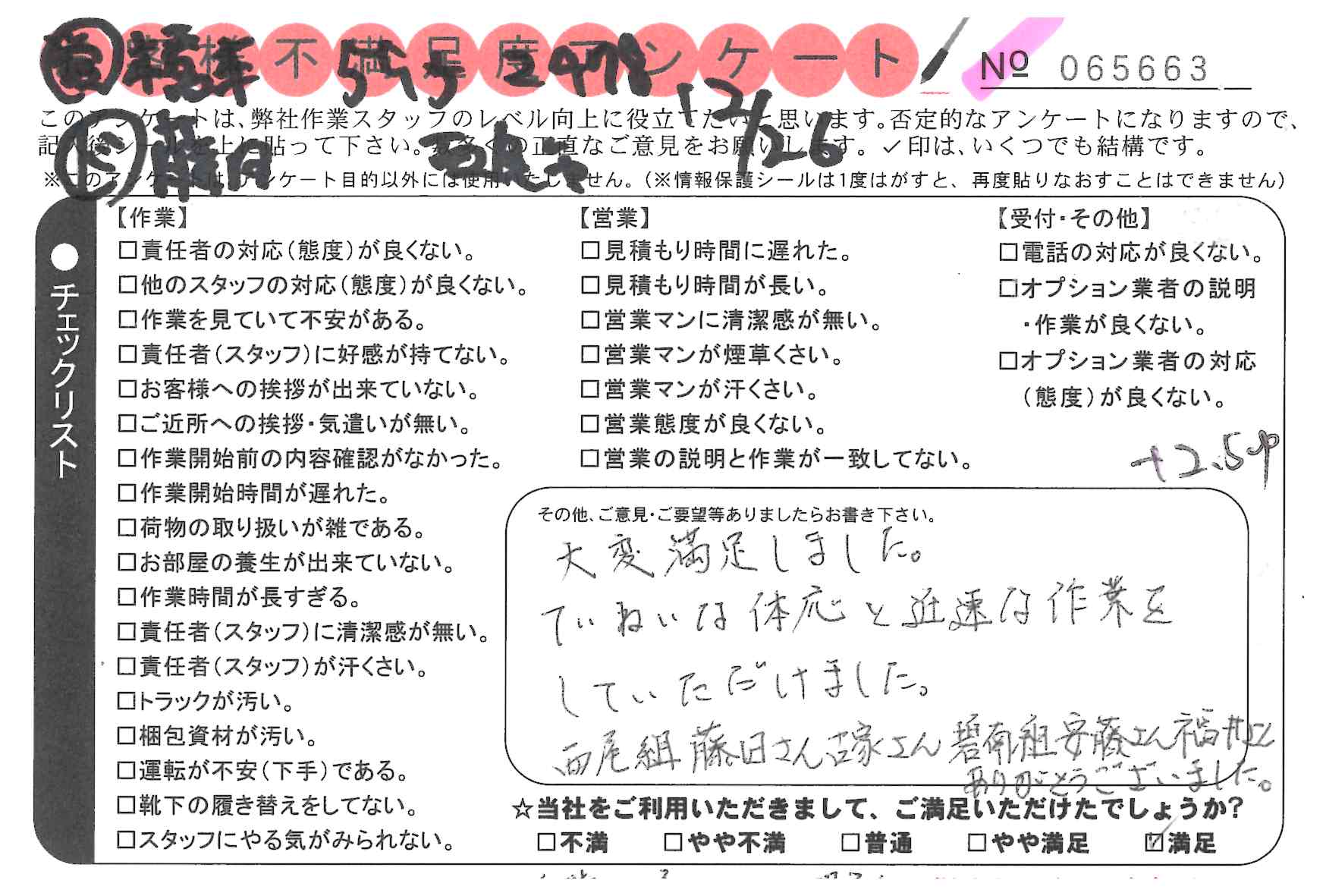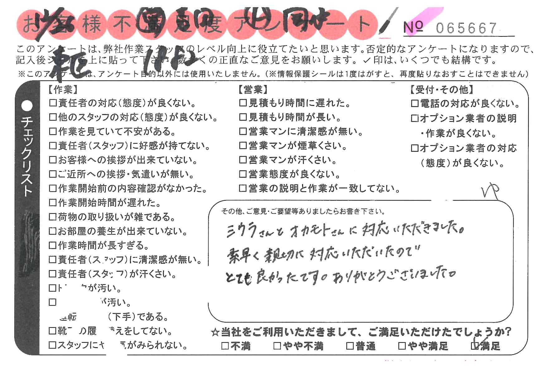 * 大変満足しました。ていねいな対応と迅速な作業を